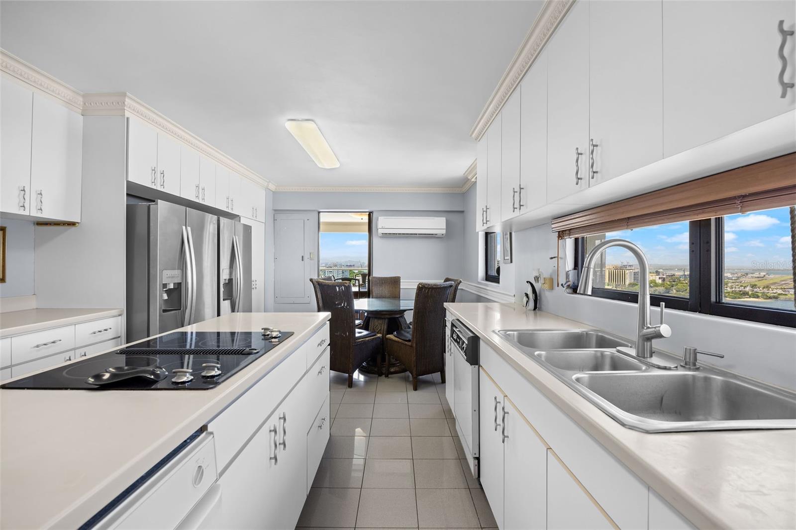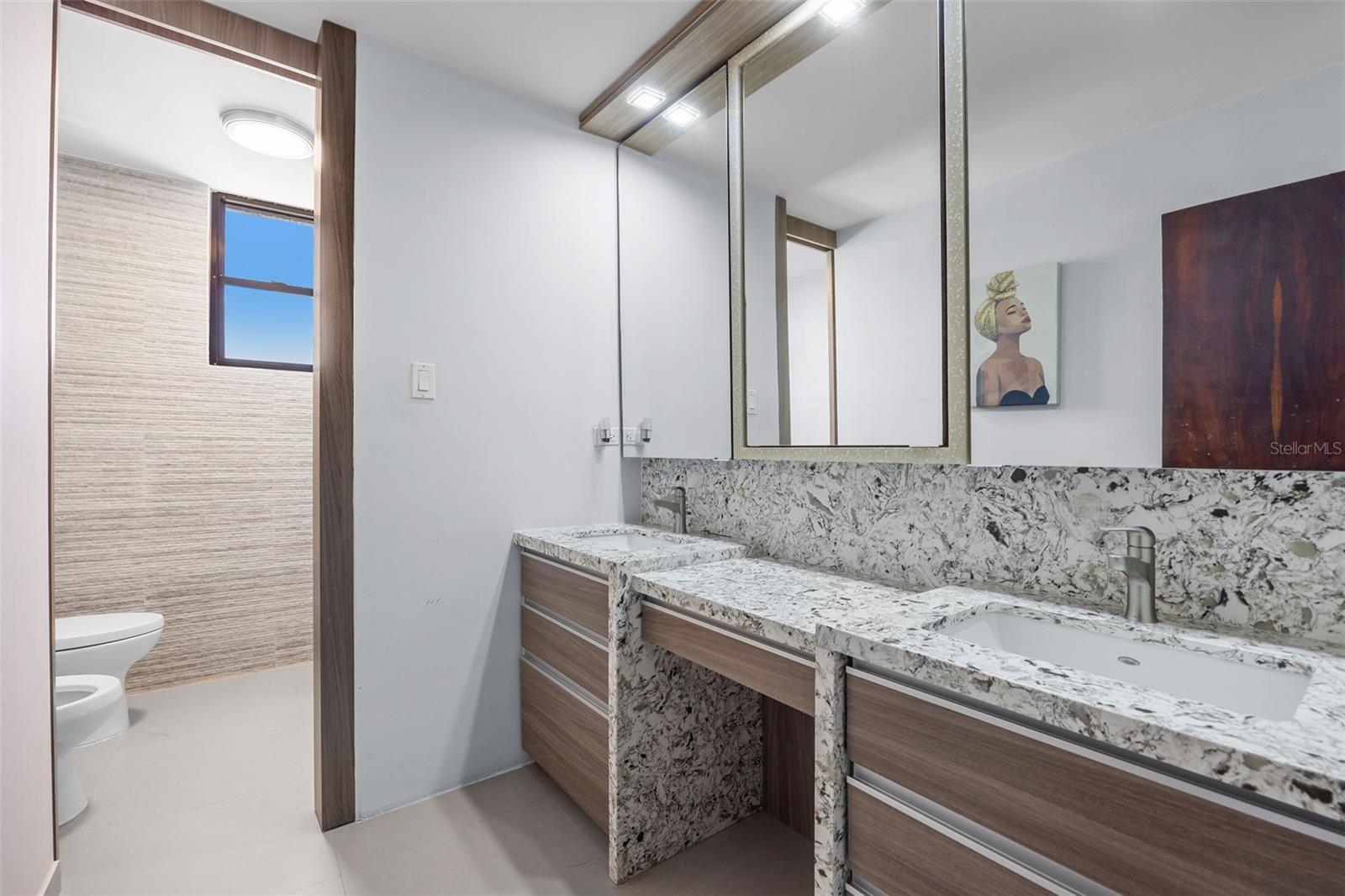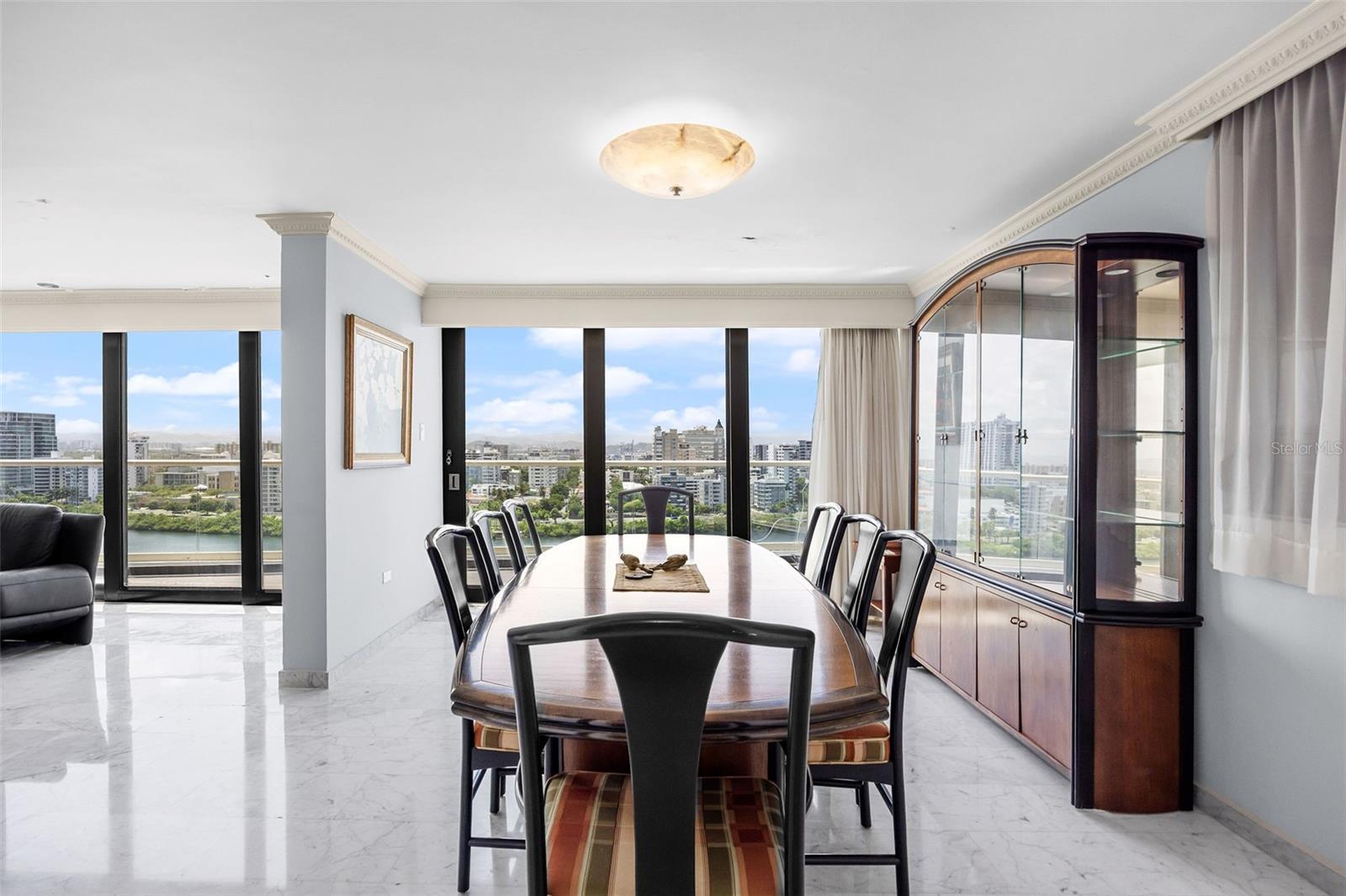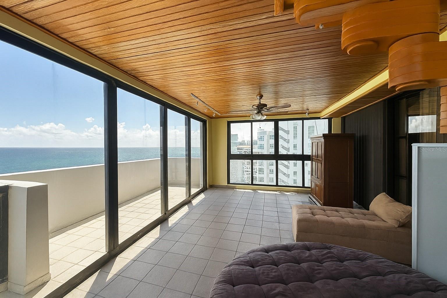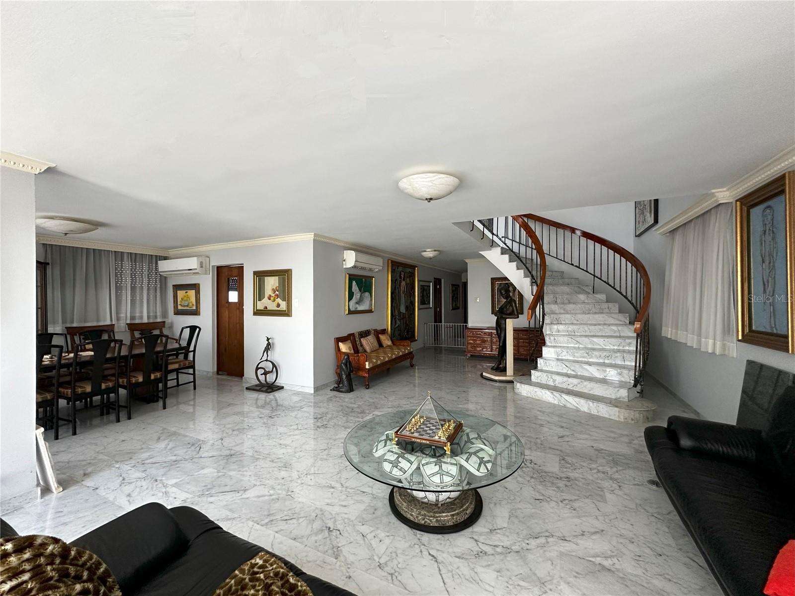 PENTHOUSE FLOOR 17 · 8 COVERED PARKING (4 BACK-TO-BACK) · 6,600 SQ FT · 360° OCEAN VIEWS · 6 BED · 4 FULL + 2 HALF BATHS · Located in Ashford Lagoon Plaza on Condado’s Ashford Avenue, this penthouse occupies the entire 17th floor (PH-17) across two levels plus a mezzanine (third level), 6,600 sq ft (5,729 sq ft GLA). It features 6 bedrooms, 4 full bathrooms, and 2 half baths. From three open terraces you’ll enjoy spectacular vistas: to the south, the city and Condado Lagoon; to the north, the Atlantic Ocean with permanently unobstructed views. Access is exclusive, with two key-access elevators arriving directly into the residence via a private foyer. Interior highlights include space for a private gym, a large family room/lounge overlooking the city and lagoon, and a wine cellar. The building provides direct lagoon access with a small wooden dock, lobby, gym, restrooms/storage, and a full-capacity backup generator for the entire residence—an offering hard to replicate in the area. As an extraordinary advantage, the PH includes 8 covered parking spaces, configured as four back-to-back pairs, a key differentiator for multi-car households or collectors. Compared with Condado market references—where standout penthouses range 2,895–3,991 sq ft and typically with 4–5 parking spaces—this PH far exceeds the size and doubles the parking capacity, positioning it as a truly rare opportunity.