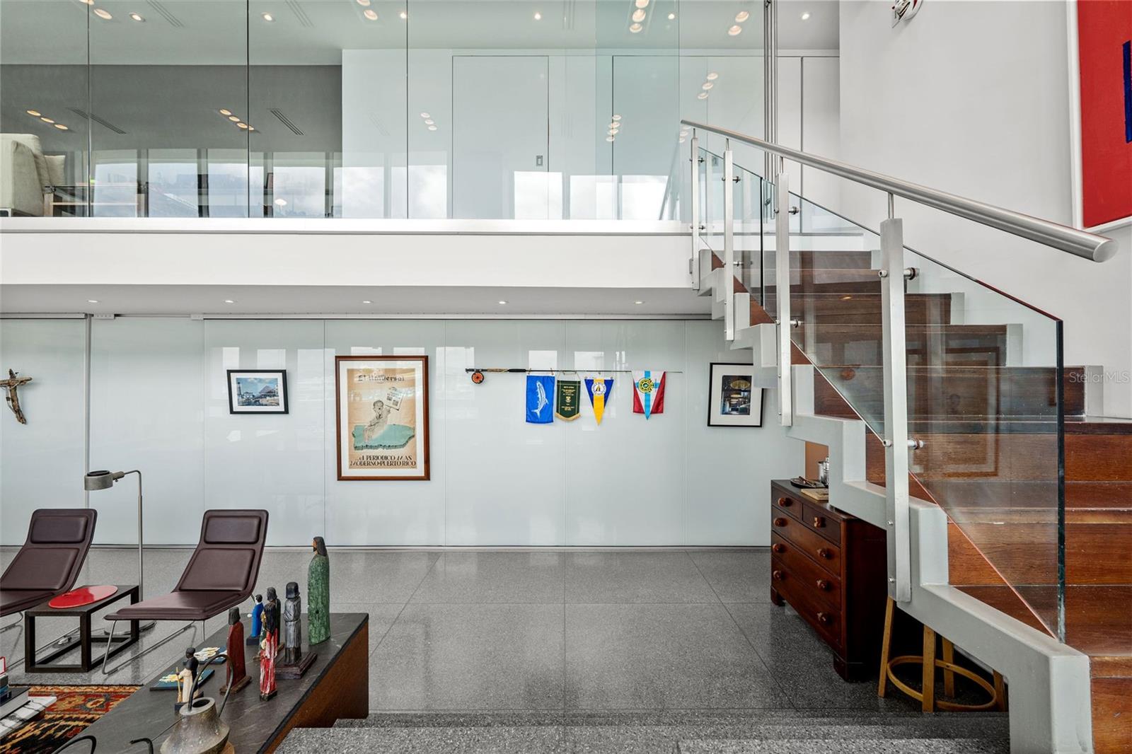 PH1608- MILLENIUM CONDOMINIUM - This unique custom designed penthouse residence showcases a modern contemporary architectural design, that offers a flawless balance of openness and natural light—designed for effortless relaxation and refined entertainment. From the moment you enter the expansive living area, panoramic 180-degree views of the Condado Lagoon and San Juan Bay unfold before you. Loft-style windows, soaring double-height ceilings, and a terrace stretching the full length of the room enhance the grandeur, while polished silver-grey terrazzo floors lend organic elegance and warmth to the modern design. A customized art-hanging system throughout the walls adds a unique gallery touch to the home. The state-of-the-art kitchen showcases refined craftsmanship, with rich wood paneling, stainless steel accents, and natural stone countertops. This level also includes one bedroom with a full bath and a private balcony, laundry room, along with a flex room also with a full bath, providing versatile space to suit a variety of needs. Upstairs, the second level embodies refined luxury. An open staircase of stainless steel and Brazilian wood, accented with a platform designed for art display, leads you to the master quarters. Here, breathtaking water views continue through a dramatic glass wall. The suite features a private library, walk-in closet, a serene bedroom, a spa-inspired bathroom, and its own terrace. The master level also includes one of the home’s two waterfront terraces, with a Japanese hot tub lined in soapstone—an intimate retreat reserved for the owner of this exceptional home. Altogether, the residence offers 3,118 square feet of living space, 2 bedrooms convertible to 3, 3 full bathrooms, 2 waterfront terraces, a balcony, 4 designated parking spaces, and 1 storage unit—a rare architectural design and exceptional functionality, perfectly positioned along San Juan’s waterfront. The condominium’s facilities further enhance the lifestyle offered, including a gym, activity room, 24/7 concierge, and valet parking service. Its privileged location places you near historic Old San Juan, across the street from Luis Muñoz Rivera Park, walking distance to Escambrón Beach, and close to museums, restaurants, a movie theater, schools, and hospitals—making it not only a luxury residence but also an unparalleled lifestyle choice.