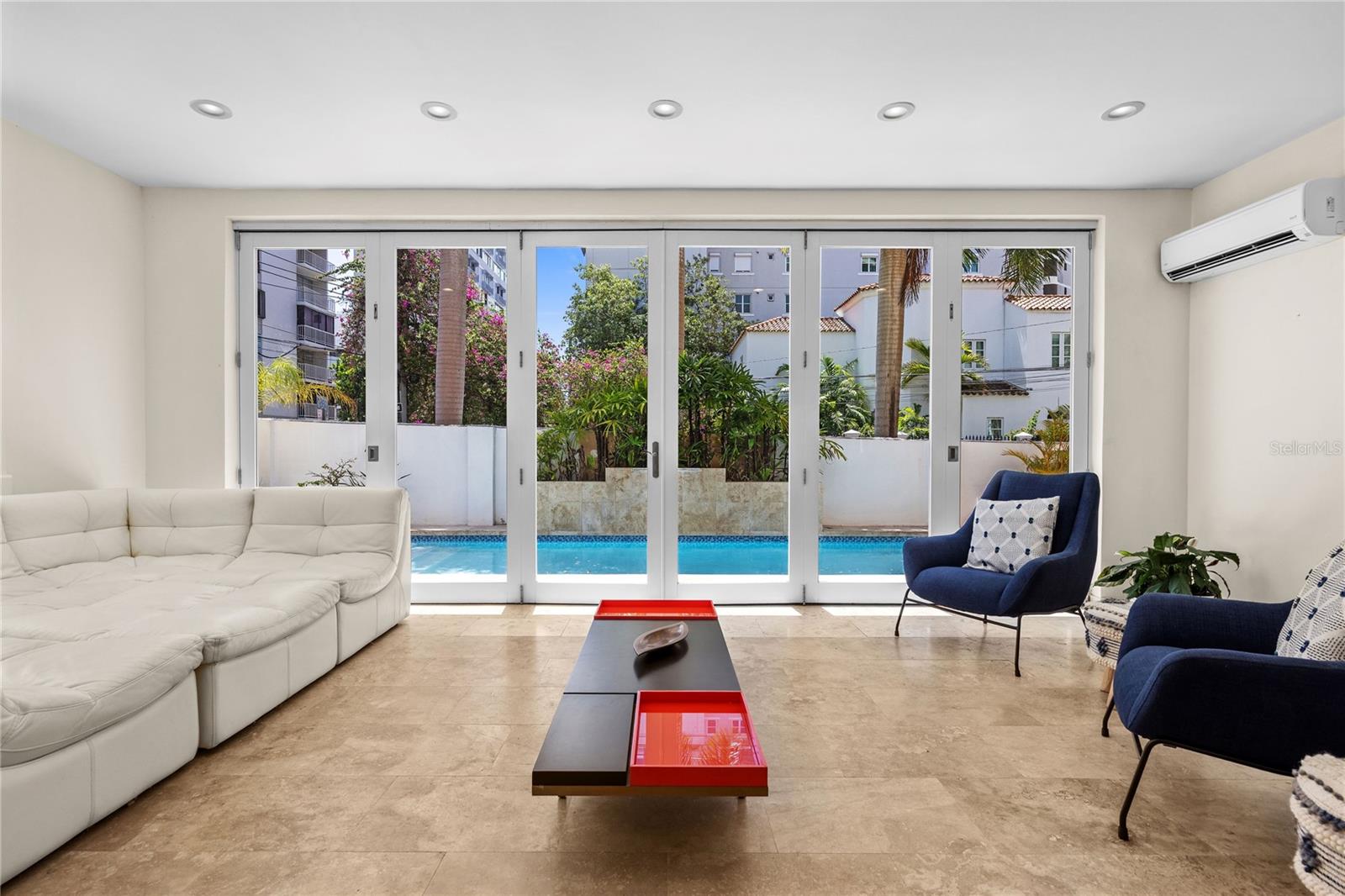 This one-of-a-kind private residence sits on the coveted Magdalena Avenue in Condado, offering the perfect blend of space, privacy, and prime location. Featuring 4,553 sq. ft. of interior living space across two levels and an additional 2,234 sq. ft. rooftop terrace. On the first level, you are welcomed by a charming covered porch that opens into a bright, open-concept layout with a foyer, spacious family and living areas, a kitchen, dining room, and two bedrooms with two full bathrooms. The first level also features an impressive outdoor area with a pool, surrounded by a high privacy fence. The property offers two separate entrances—one from Magdalena Avenue and another from Calle Santiago Iglesias—along with three covered carport spaces and additional uncovered parking. The second level boasts four more bedrooms and a versatile den, ideal as a second living room, playroom, or home office. The expansive master suite includes a walk-in closet and ample space to create your own retreat. The third level rooftop terrace is a true highlight: a covered wooden space with a bar area and half bath—perfect for entertaining or enjoying quiet evenings. Additional features include a built in elevator and a full power generator. This home is ideally located just two blocks from the park, and near top private schools, the beach, restaurants, grocery stores, and more—placing the very best of Condado right at your doorstep.