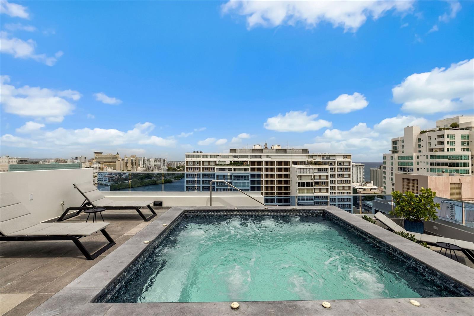 Experience elevated living in this exquisite 14th-story boutique residence in Condado Blu, where elegance, sophistication and island luxury converge. This exclusive 26-unit building commands attention from its prime location in the heart of Condado, offering residents the rare opportunity to enjoy an expansive 1-bedroom convertible layout (capable of being used as 2 bedrooms), with 2½ bathrooms and 1,616 square feet of impeccably designed interior space. Step into a home where every detail has been considered. The innovative open-concept design maximizes natural light, with floor-to-ceiling windows that showcase breathtaking views of Condado Beach and the serene Condado Lagoon. From sunrise to sunset, your home is filled with golden Caribbean light and unforgettable panoramas. The gourmet kitchen is outfitted with top-tier KitchenAid appliances: a refrigerator, electric cooktop, microwave/oven tower, island hood, dishwasher, and wine cooler—ideal for entertaining or casual island living. A dedicated laundry room with Whirlpool washer and dryer adds everyday convenience, while three independent air-handling units allow for fully customized climate control in every space. The luxurious primary suite serves as your private sanctuary, complete with a spacious walk-in closet and an en suite bathroom featuring a double vanity, premium finishes, and a spa-inspired atmosphere. Additional touches elevate your lifestyle: a full backup generator, water cistern, 24/7 concierge service, fitness center, and a gorgeous rooftop terrace. On the rooftop, indulge in two infinity plunge pools, an outdoor kitchen, a sundeck, and a wine cellar—perfectly designed for entertaining or relaxing above the city, with sweeping views of the coastline and lagoon. Two deeded parking spaces are included for your convenience. Live just steps from the best of Condado—world-renowned beaches, fine dining, luxury shopping, and cultural attractions. This is not just a home—it’s a lifestyle of refinement and exclusivity with Condado Blu for Sale.