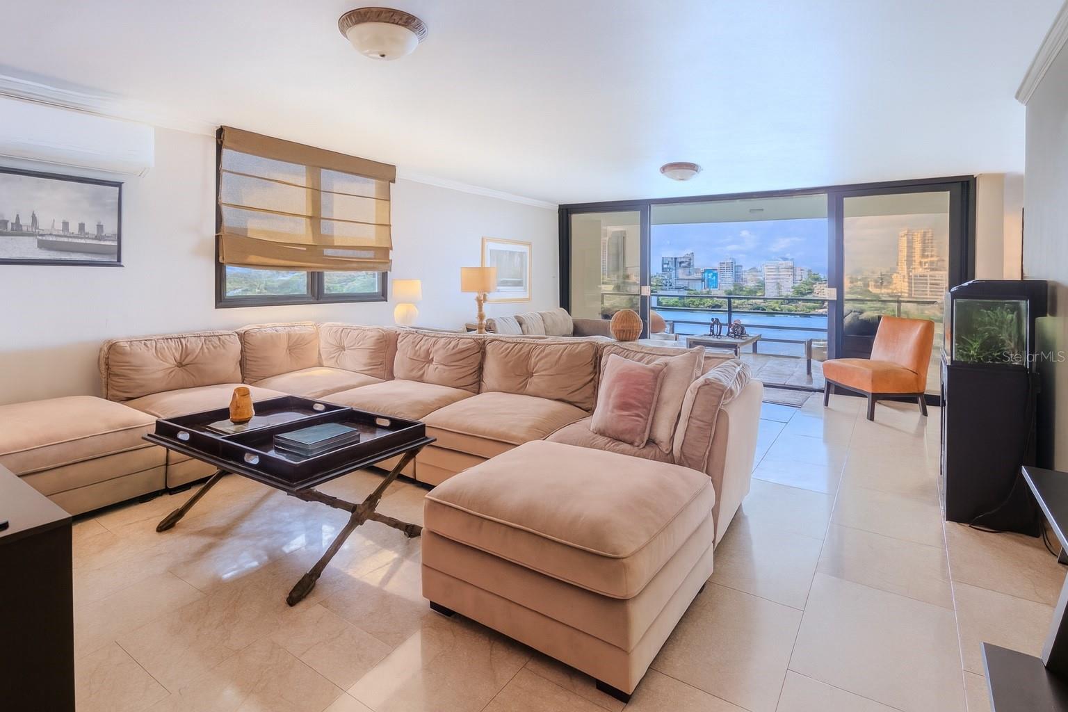 Spacious Full-Floor Apartment with Ocean and Lagoon Views – Condado This full-floor apartment offers one residence per level, providing exceptional privacy and tranquility. Enjoy panoramic views of the Atlantic Ocean and Condado Lagoon from every room, with a large terrace ideal for outdoor relaxation and entertaining. With approximately 3,000 square feet of interior space, the residence features 3 bedrooms, 3 full bathrooms, and a maid’s room. The family room offers flexibility and may be converted into an additional bedroom if desired. Additional features include 3 covered parking spaces, ample storage, a full power generator, and a water cistern for comfort and convenience. Residents also have access to a fitness center, landscaped back garden with direct lagoon access, and nighttime security service. Located in Condado, this property is within close proximity to shopping, dining, entertainment, medical facilities, and other area conveniences.