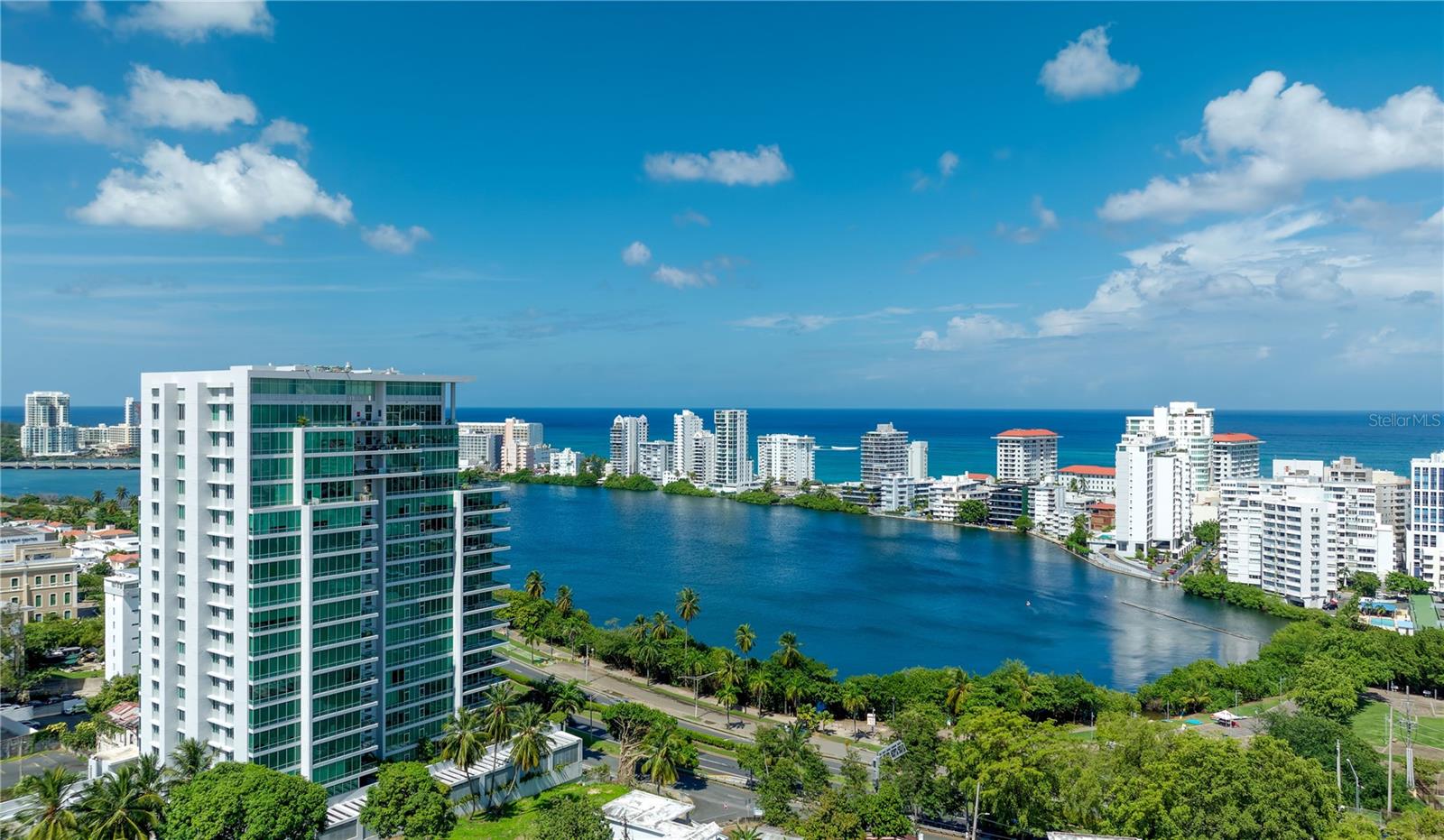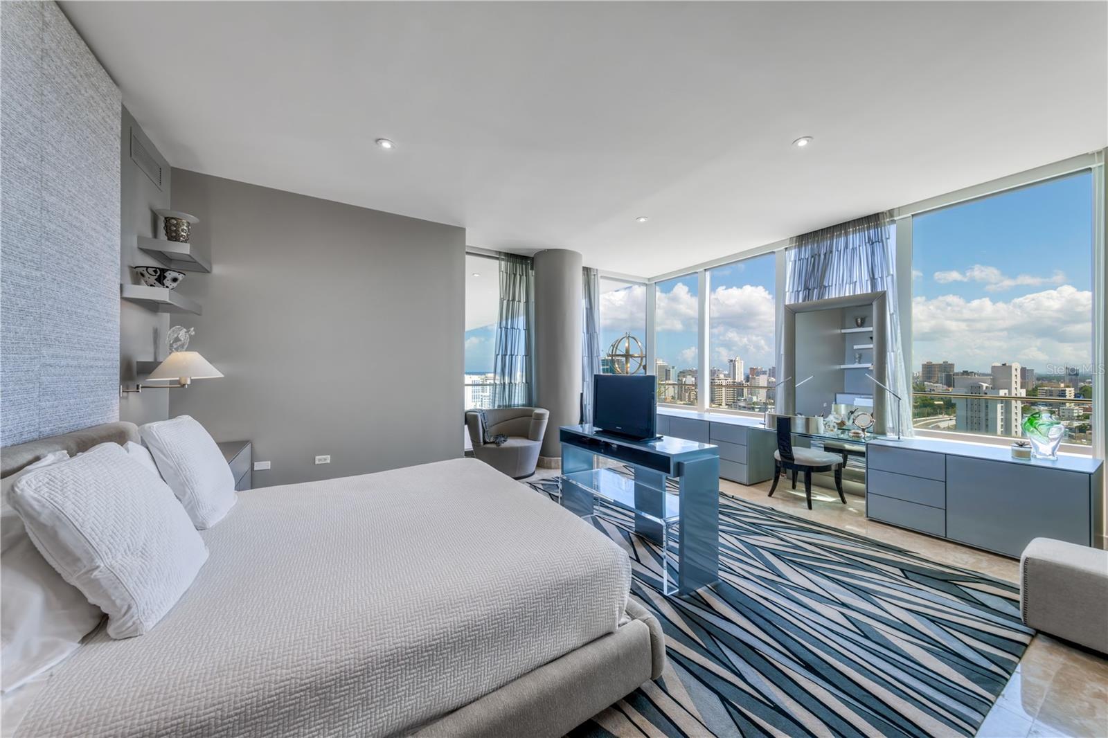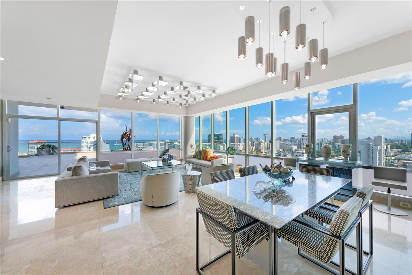 Experience refined living at The Cosmopolitan in Miramar, where timeless sophistication meets contemporary design. This stunning residence encompasses a total of 5,332 square feet of living space, including a 1,505-square-foot terrace that captures sweeping views of the Miramar Lagoon, the Condado skyline, and the Atlantic Ocean. Inside, the home offers three spacious ensuite bedrooms, a dedicated office overlooking the lagoon and ocean, and four and a half bathrooms. Every detail exudes craftsmanship, from the Lalique crystal door handles, to the wood-grain paneled powder room with custom crystal finishes. The interiors blend modern lines with classic warmth, creating a space that feels both elevated and inviting. This residence is a rare combination of elegance, function, and flow with natural light, open spaces, and a seamless connection between indoor and outdoor living. The Cosmopolitan Condominium is a full service building and includes concierge service, 24/7 security, an infinity pool, conference room, events space and gym. Set in the heart of The Miramar Arts District, one of San Juan’s most sought-after neighborhoods, The Cosmopolitan offers a lifestyle defined by convenience and culture. Enjoy being moments from fine dining, boutique shopping, theater and art venues, and the Condado Lagoon, while still surrounded by the charm of tree-lined streets and historic architecture. With easy access to Condado, Old San Juan, and the business district, Miramar delivers the perfect balance between city life and serene waterfront living.