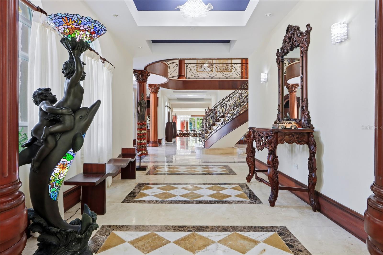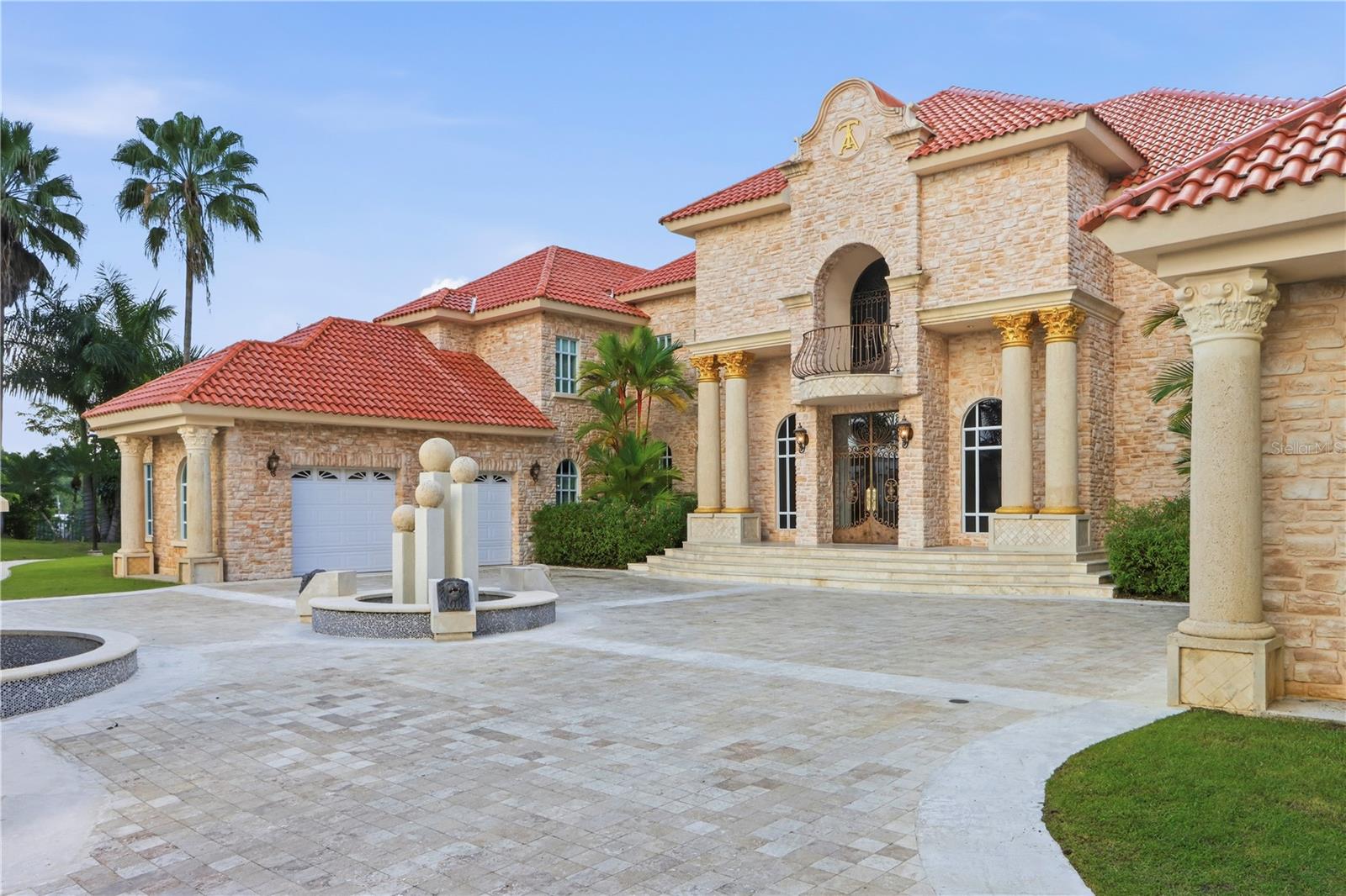 Classic Mediterranean-Style Mansion An imposing Mediterranean-style mansion, conceived under the highest standards of ultra-luxury and located in the exclusive Montehiedra community in San Juan. This residence satisfies the most discerning tastes, combining scale, privacy, and resort-style amenities while integrating the best of countryside and city living. With over 16,000 square feet of construction on nearly two acres, it offers a residential experience without precedent, designed for elevated daily living and large-scale entertaining. Interiors The layout is designed for absolute comfort. The property features five primary suites and thirteen bathrooms; all finished with premium materials. The master suite, spanning approximately 2,200 square feet, serves as a private retreat with its own kitchen, spa-style bathroom with steam shower and jacuzzi, and expansive walk-in closets. Social spaces are articulated with elegance: a double-height living room, a formal dining room for 16 guests, service bar, and both formal and informal salons for distinguished entertaining. The private cinema, with seating for 15, delivers a first-class audiovisual experience. All spaces are enriched with fine mahogany furnishings. Second Level Includes a sound area and a prayer room with full bath and terrace, convertible into an additional bedroom or multipurpose room. Third Level Conceived as a cultural and professional space, with capacity for up to 2,500 books—ideal for a private library, archive, or research study. It also includes an office/library and bathroom, reinforcing its representative character. Exteriors The exterior is a true recreational complex. Two heated saltwater pools—one of 30,000 gallons and another of 20,000—are complemented by jacuzzis, heaters, waterfalls, and slides reminiscent of an aquatic park. Pergolas, terraces, and landscaped areas with farm-style planting zones and fruit trees integrate leisure with domestic production. For wellness and activity, the property offers a 15 x 30 ft gym, dry and steam saunas, basketball and volleyball courts with bleachers for 100 spectators, plus playful features such as an equipped treehouse and dollhouse. Infrastructure & Security The residence includes four garages, an 8,000-gallon water tank, a 100 kW three-phase generator, a full-house sprinkler system, and anti-fungal treatment on all exterior stone. The exterior also offers more than 30,000 square feet of versatile pavement for events, parking, or recreational use, expanding possibilities for grand receptions or private gatherings. Privileged Location Just one minute from Expressway #52, with alternate access via Teodoro Moscoso and Avenida Baldorioty de Castro to Luis Muñoz Marín International Airport. The property is only 10 minutes from Puerto Rico’s Medical Center, steps from Montehiedra Mall Outlet, 15 minutes from Plaza Las Américas, and 25 minutes from The Mall of San Juan, home to ultra-luxury boutiques. Montehiedra is a respected enclave, with 24/7-armed surveillance and amenities including pools, tennis, pickleball, volleyball, and basketball courts, as well as a clubhouse. Unique Opportunity This mansion represents a singular opportunity in Puerto Rico’s luxury market: a home conceived as a private sanctuary and the perfect stage for large-scale entertaining and distinguished representation.