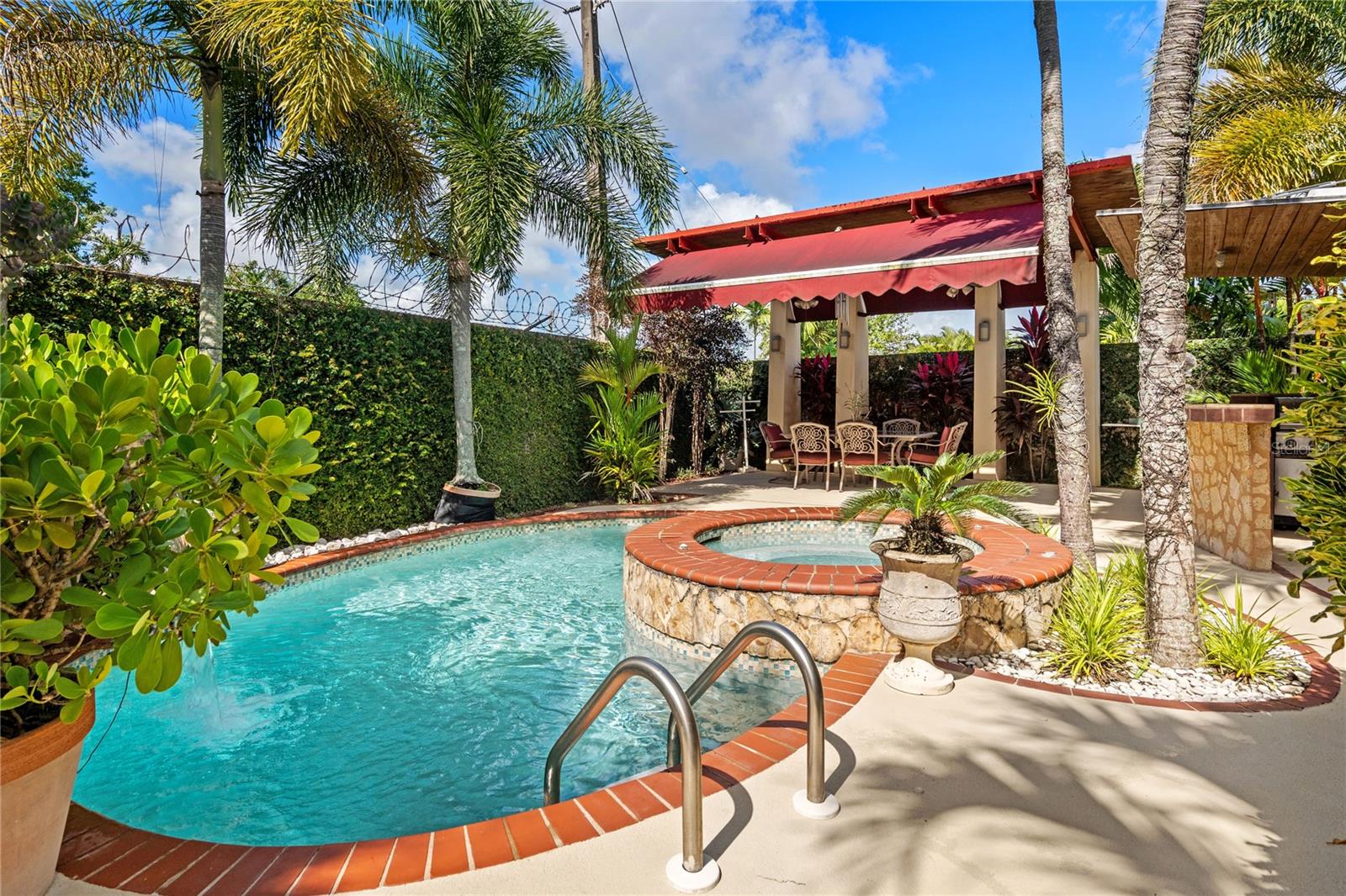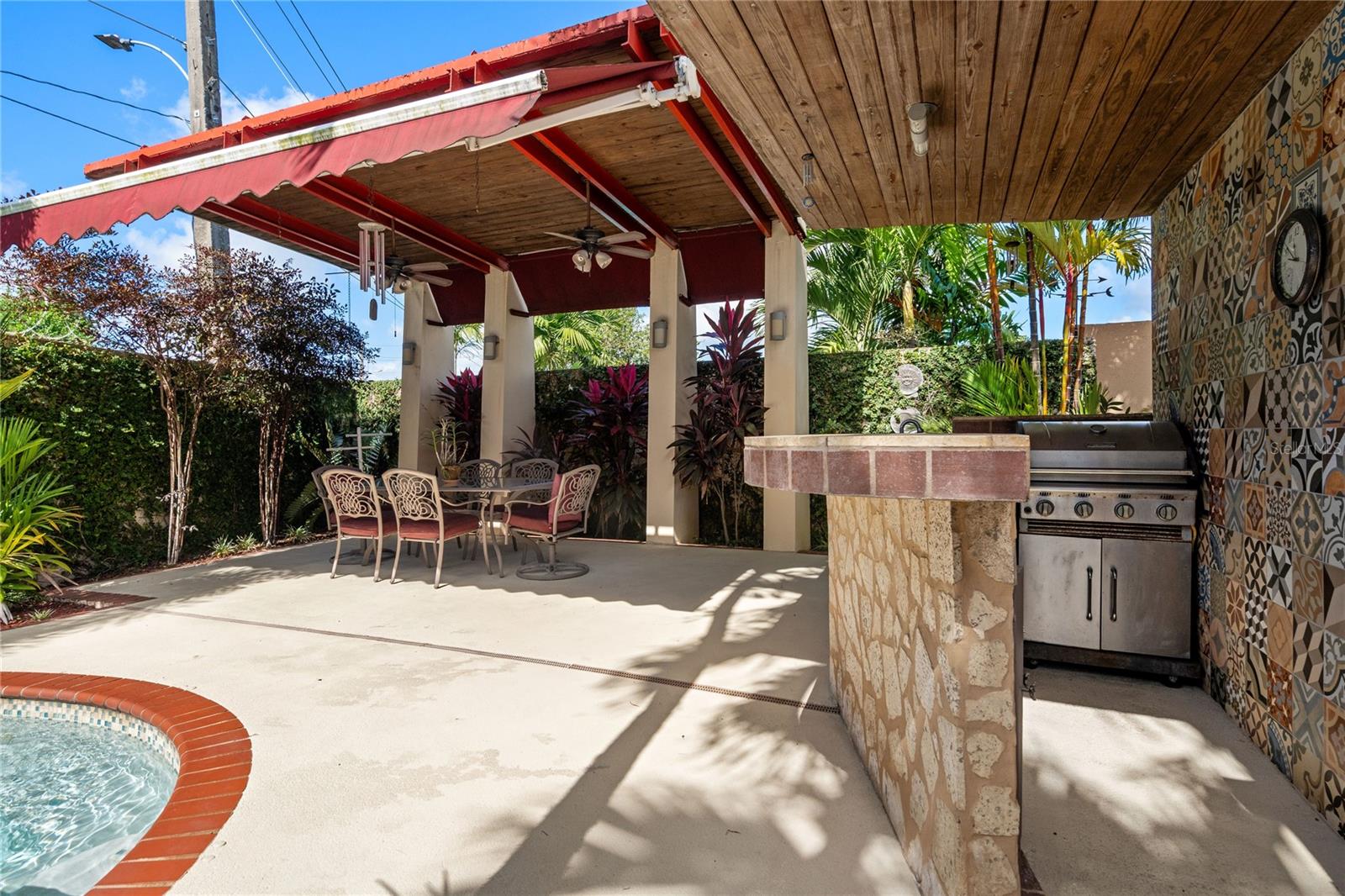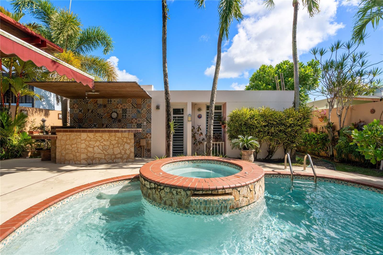 Beautifully updated single-level home in the gated community of Hill Mansions, San Juan. Surrounded by mature landscaping, this property offers an extended living area, renovated open kitchen to the family room, and a spacious great room with living and dining areas. Enjoy exceptional outdoor living with an outdoor bar and grill, pool with spa, pool deck with terrace, and a bathroom accessible from the pool area. The home includes four bedrooms, 2.5 bathrooms, and a backup power generator with gas tank. Hill Mansions offers 24/7 security, tennis and basketball courts, gazebo, outdoor exercise/stretch area, and playground. Conveniently located just a short drive to the airport, top schools, and shopping.