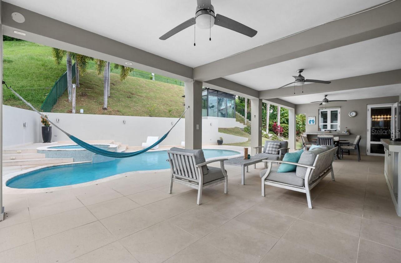Discover a rare gem in Montehiedra, one of San Juan’s most exclusive neighborhoods. This elegant, modern single-story home features soaring high ceilings and is perfectly situated on a quiet cul-de-sac street for added privacy. Recently remodeled, the property boasts a stunning kitchen with quartz countertops and top-of-the-line Monogram appliances. Enjoy spacious living with 5 bedrooms plus an office, 3 full bathrooms, and a guest half bath. The master suite impresses with a large walk-in closet and a luxurious bathroom complete with a Jacuzzi tub. Step outside to a generous terrace with an outdoor kitchen, perfect for entertaining family and friends. Relax in the pool with a built-in Jacuzzi and take advantage of the 3,800 sq ft of living space on a 1,279 m² lot. Additional features include a 34k generator and a water cistern for convenience and peace of mind. Montehiedra Community Center features tennis court, pickleball, basketball, gym, pool, clubhouse. The gated community offers 24/7 security with guards conducting preventive patrols. Experience luxury living in Montehiedra—your dream home awaits!