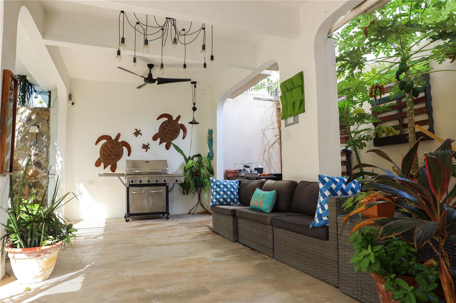 An exceptional opportunity to own a beautifully maintained multifamily residence on Calle Gertrudis, one of Ocean Park’s most desirable streets, located just steps from one of the area’s best beaches. This property offers a rare blend of lifestyle, flexibility, and income potential in one of Puerto Rico’s most coveted coastal neighborhoods. The property features a main residence with a spacious primary bedroom and two fully remodeled apartments on the second level. One of the apartments may be connected to the main residence by removing an interior wall, offering flexibility for extended living arrangements, guest accommodations, or rental income, while preserving independent kitchens and bathrooms for each unit. The upper level consists of one apartment with two existing bedrooms and a second apartment with one bedroom and the potential to convert into a two-bedroom layout. Designed with timeless Spanish-style architecture and an elegant boho-chic aesthetic, the home showcases warm textures, natural light, and thoughtful details that create a relaxed yet sophisticated Caribbean ambiance throughout. The layout flows seamlessly between indoor and outdoor living spaces, ideal for both everyday comfort and entertaining. All equipment and appliances are approximately two years old, providing modern efficiency and reliability. The property is equipped with an 18-kilowatt generator that services the entire home, as well as two 650-gallon water cisterns, ensuring uninterrupted living. Parking is a rare and valuable feature in Ocean Park, and this property offers three private parking spaces in front of the home, plus space for up to four additional vehicles within the property, for a total of seven parking spaces. A generous terrace enhances the outdoor living experience, offering ample space for entertaining, relaxation, children, or pets. Whether used as a primary residence with income potential, a multi-generational home, or a strategic investment just steps from the beach, this turn-key multifamily property presents a unique opportunity in the heart of Ocean Park, San Juan.