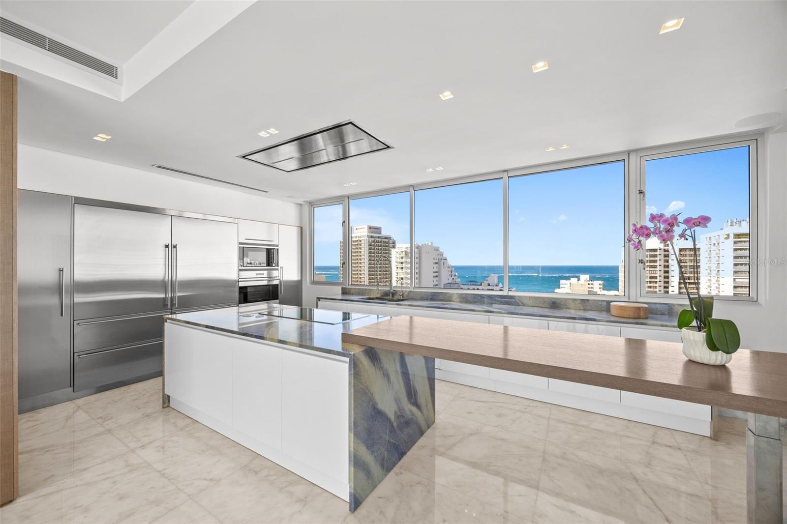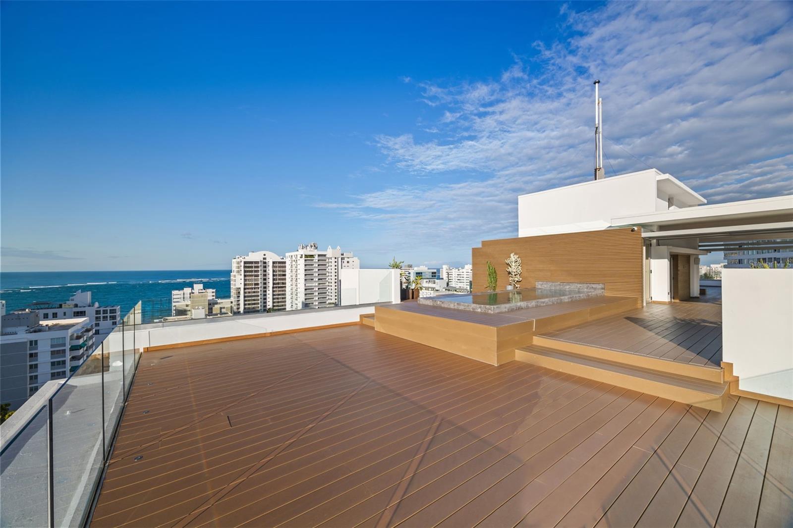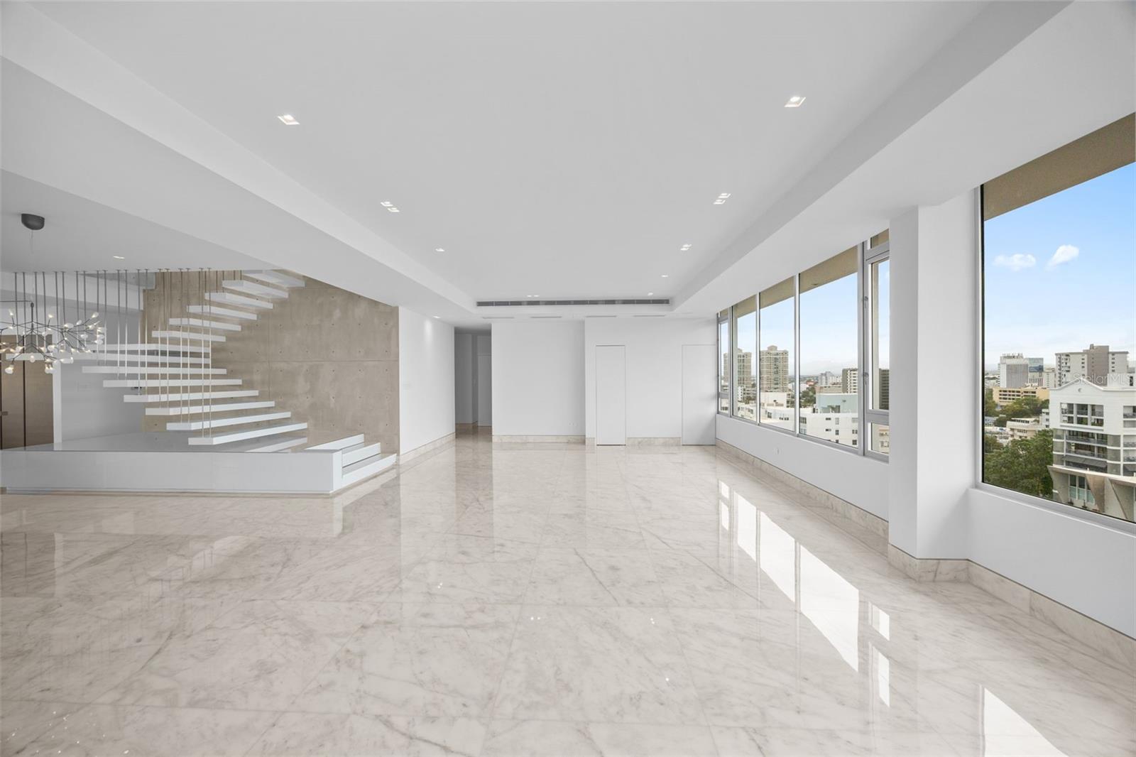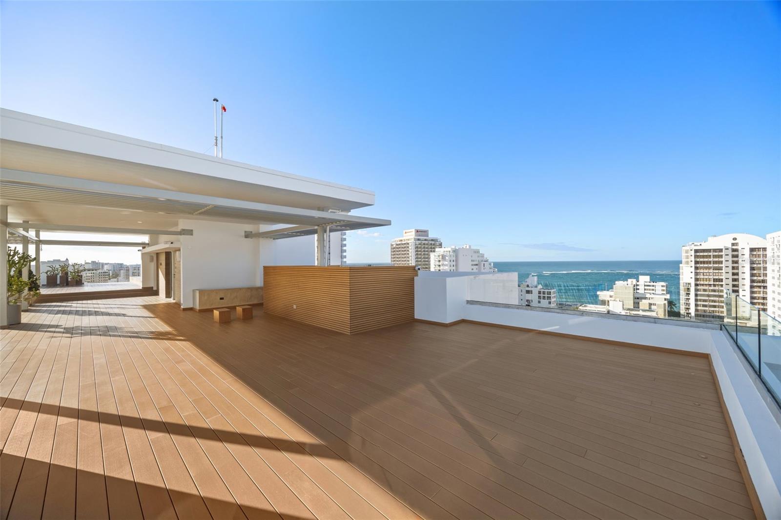 One or more photo(s) has been virtually staged. A Private Rooftop Estate Above Condado Positioned within an exclusive boutique building in the residential heart of Condado Beach — and gracefully set at the corner of Plaza Antonia Quiñones park — this fully renovated penthouse duplex presents a rare opportunity to experience elevated coastal living with scale, privacy, and refined design, all within close proximity of the neighborhood’s most sought-after destinations. Spanning approximately 8,290 total square feet, with 4,435 square feet of refined interior space, the residence unfolds across two meticulously curated levels. Five generously proportioned bedroom suites and six-and-one-half baths are complemented by marble floors that flow seamlessly throughout the home. At the center of the residence, a bespoke Copatlife kitchen—appointed with Miele, Wolf, and Sub-Zero appliances—anchors the living spaces with quiet sophistication and architectural presence. Floor-to-ceiling openings frame sweeping ocean and city vistas, while natural light moves effortlessly across the interiors. Automated window treatments and a fully integrated lighting system allow for precise control of ambiance throughout the day and evening. Above, the private rooftop terrace emerges as the home’s defining statement—an expansive, fully remodeled outdoor sanctuary offering panoramic views of Condado and the Atlantic horizon. A heated pool, generous lounge settings, and open-air entertaining areas create a setting equally suited for intimate evenings or larger-scale gatherings. Residents benefit from 24-hour security, full backup power, and water cistern, ensuring uninterrupted comfort year-round. Moments from Condado’s beaches, open green spaces, celebrated dining venues, and cultural destinations, this penthouse represents a compelling opportunity within one of Puerto Rico’s most enduring coastal enclaves. Photos 1, 2, 14, 21, 26, 28, and 40 are virtually staged and do not reflect the current state of the property.
