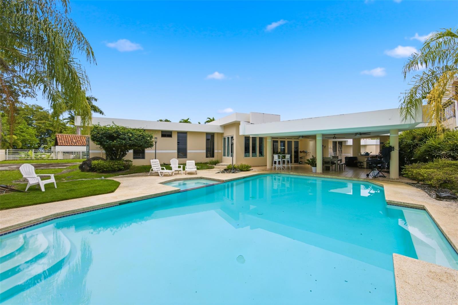 Stunning Single-Level Residence with Expansive Backyard in Paseo Las Vistas Discover this beautifully maintained 3,700 sqft home offering 5 spacious bedrooms and an exceptional layout designed for comfort and entertaining. The primary suite features a private en-suite bathroom and a walk-in closet, while one of the additional oversized bedrooms also includes its own walk-in closet—perfect for guests, extended family, or a home office setup. Step outside to your private oasis, showcasing a large swimming pool, covered terrace, and an expansive backyard rarely found in Paseo Las Vistas. This outdoor space is ideal for entertaining, relaxing, or creating your dream garden retreat. Inside, enjoy bright open living areas with abundant natural light, high ceilings, and seamless indoor-outdoor flow. The covered patio provides the perfect setting for dining and gatherings overlooking the pool. This property stands out with one of the largest lots in the community, offering privacy, space, and versatility unlike any other. A rare opportunity to own a unique home in one of the most desirable neighborhoods.