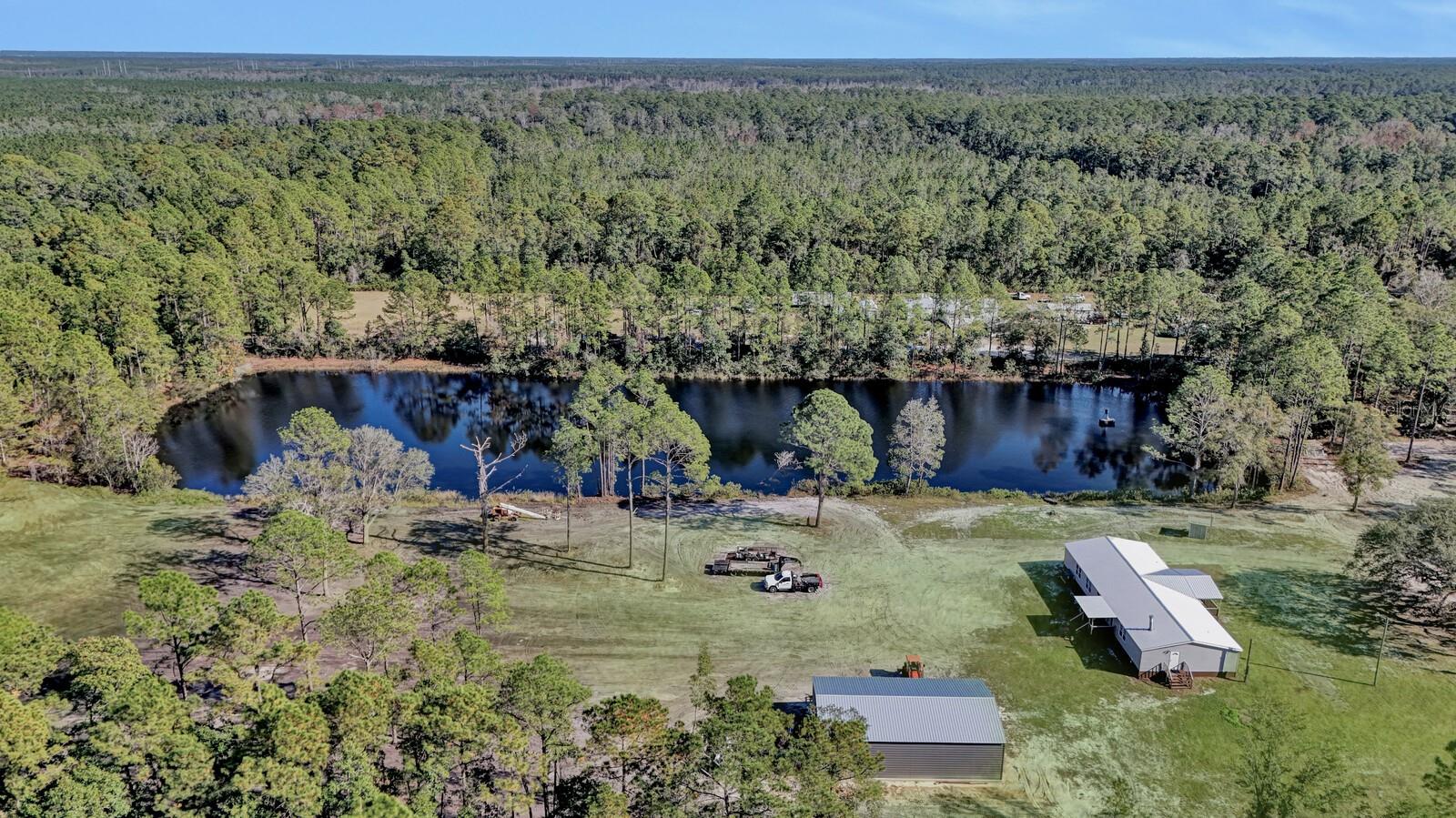 One or more photo(s) has been virtually staged. Some Photos of the grass color are Virtually Staged Photos to show the buyer what it could look like. This property is absolutely stunning, This 4 bedroom 3 bath newly remodeled Doublewide mobile home has new insulated wood encased windows, new skirting, new siding with OSB sub-straight for extra strength, professionally installed tile flooring and tiled showers, 2 large covered porches new metal roof, new AC unit, too many upgrades to list. This home is a must see. This home sits on 8.47 beautifully cleared acres with a new 3 car detached garage. The lake on this land is privately owned and is well stocked for that relaxing day you just want to go fishing in your John boat or off the shore. You can drive your golf cart or truck around the lake and fish wherever you'd like.. Fish feeder is in place already. Land is cleared and ready for all your Adult toys like your, RV, Boat, 4 Wheelers, Golf cart, anything you want. You've got the room. 25 minutes to St, Augustine, Largest Bass Pro Shop coming soon, This is the perfect place to call home and enjoy that retirement that you deserve. Bring your horses and build that dream barn you've always wanted.