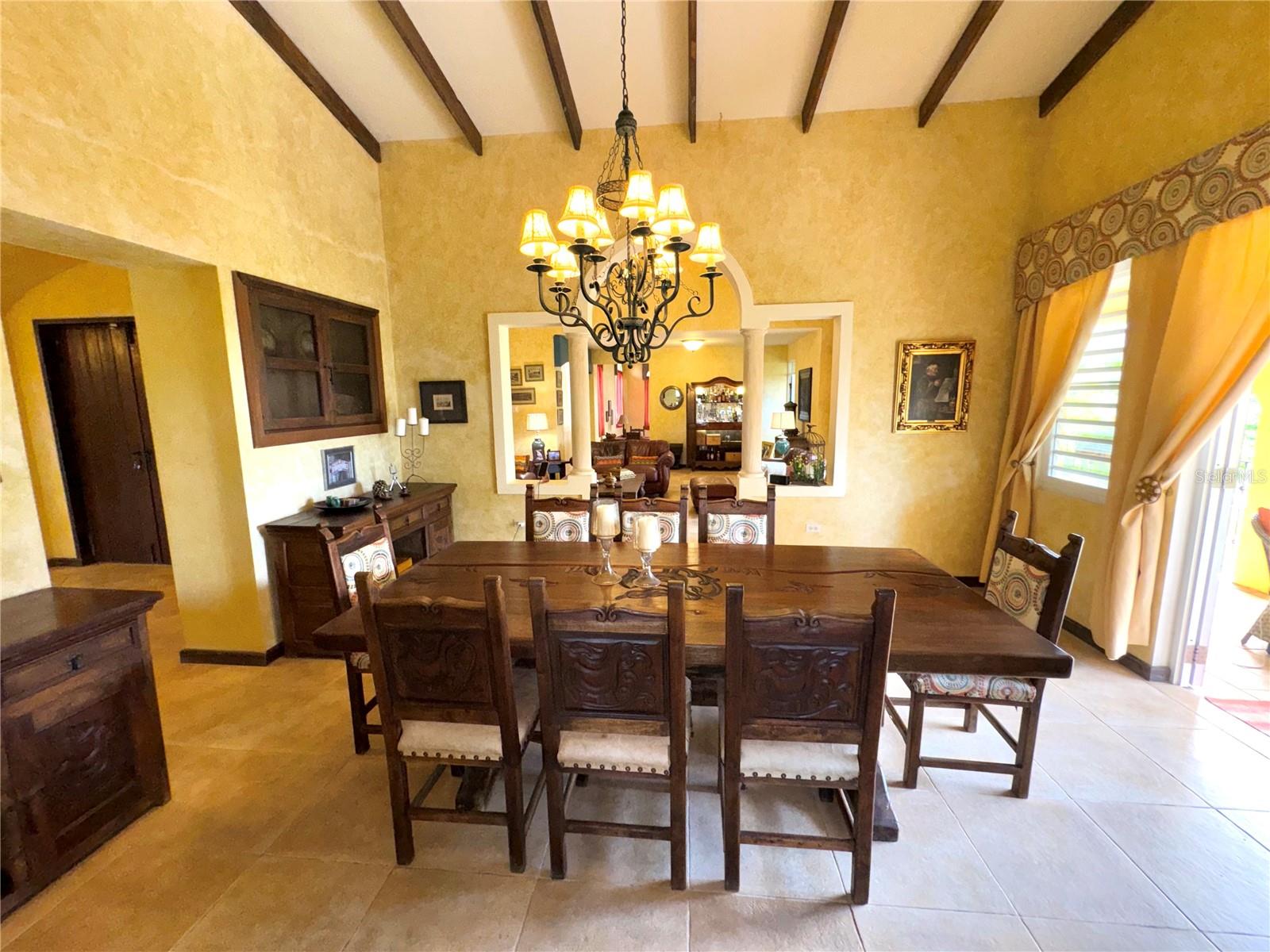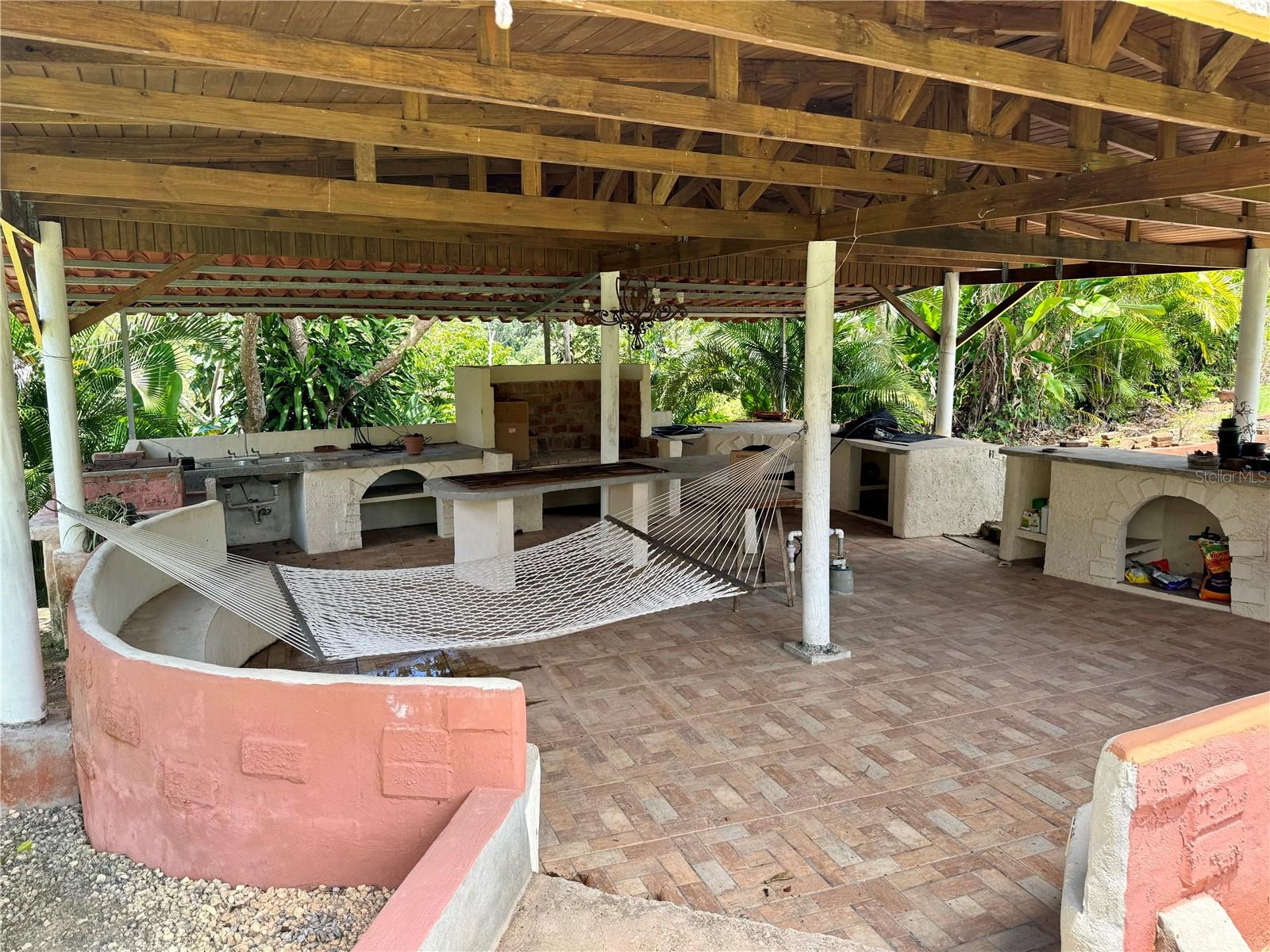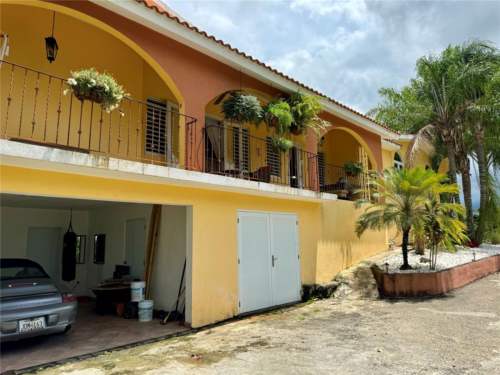 This is a beautiful Villa/Hacienda with (2) living rooms, one (1) family room, dining room, kitchen, breakfast room, laundry, four (4) full bathrooms, four (4) bedrooms, four (4) terraces/balconies, foyer, entrance porch, entrance tiled patio, utility/storage rooms, garage, and gazebo; lot is 9.65 "cuerdas", equivalent to 9.37 acres, equivalent to 37,928.26 square meters, equivalent to 408,256.39 square feet. All living quarters are in the same level. One downstairs storage area 103"x244"=175sq ft. One downstairs shop area 135"x273"=256 sq ft. One downstairs shop area 150"x335"=349 sq ft. Garage is 178"x208"=287sq ft. Downstairs full bathroom is 58"x178"-74sq ft. Note: it shows only one garage, one of the storage areas can be turned into another garage,or an apartment; plus property has plenty of land to built additional garages. Terraces: Dining/living room terrace 100"x530"=368 sq ft. Living room terrace 108"x255"= 191 sq ft. Kitchen terrace 64"x117"=52 sq ft. Master bedroom terrace 63"x167"=73 sq ft. Photovoltaic system installed 2023 producing 7.5 KW, 18 panels (room for more), and a 10 year life battery. Very secluded, private, and quiet. Farm has many lime/lemon trees, as well as many other exotic and local trees. House is very well kept. Sold with all furniture and appliances. Square feet of 3,549 is an approximate it includes the terraces and porches.