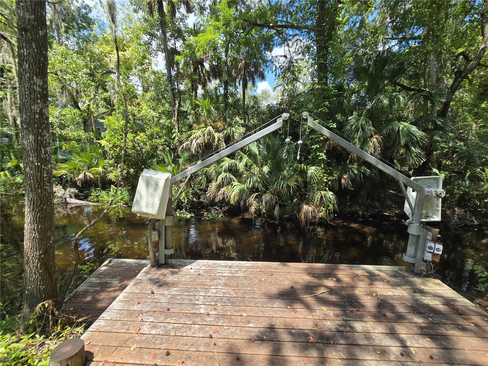 Discover a unique opportunity to own 80 feet of direct river frontage on the easternmost channel of the scenic Wekiva River. Located in Sanford, Florida and tucked away in a quiet, hidden location yet just minutes from shopping, dining, and everything Central Florida has to offer. This lot offers the perfect balance of convenience and seclusion. The property is thoughtfully equipped with a heavy-duty dual electric boat lift, an attached floating dock ideal for kayaking and paddle boarding, well, septic system, electric, and Wi-Fi already in place. A crushed asphalt drive leads to a designated RV spot, making it an excellent winter retreat. There's also a small metal utility building with a toilet, water pump and tank, and Wi-Fi connectivity. The owner had plans to build a stilted cabin, and an approved site plan. Whether you're looking to build your dream riverfront getaway or keep it as a private recreational retreat, this property is ready to enjoy. Explore Katie's Landing at the Lower Wekiva River Preserve State Park, you'll enjoy easy access to multiple trailheads, campsites, and the wonders of this federally recognized National Wild and Scenic River. The Wekiva River, one of only two rivers in Florida with this prestigious designation, boasts unpolluted waters, natural shorelines, and a connection to Central Florida's rich network of lakes, rivers, and springs. Conveniently located just 7 minutes from I-4 and 10 minutes from Sanford, this property provides the perfect blend of peace and tranquility with modern conveniences. With the recently completed State Road 29, enjoy effortless access to all that Central Florida has to offer.