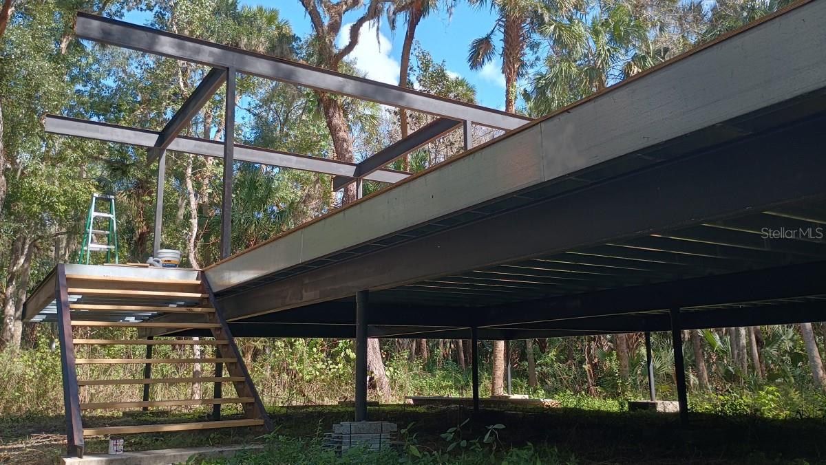 Under Construction. Under Construction: 1,000 sq. ft. elevated ultramodern home on 4.86 Acre Lot near Lake Jessup Conservation Area. 2.75 acres Upland, including buildable area in front of Hopkins Market. Wetland Delineation has been Surveyed. Paved road leading to property. Electrical and Internet on site. Working on bringing City Water to lot. Permits are current. Foundation inspection completed. 3rd Party welding, helical pile and structural inspections already completed for previous unsuccessful buyers. No Financed offers will be considered due to unfinished status of project, complicated nature of design and 2 previous sales that fell through due to Buyer's Banks. No offers below asking will be considered or responded to. Close to Walmart, Sanford Airport and intersection of HWY 17-92, 417 Tollway and Lake Mary Blvd. With a Buyer, I can have it move-in ready within 3 months of closing. Contractor must have cash on hand and construction experience if you want to finish, which I'll help you do. Not selling if I think you want to tear down my work to build a subdivision. This is a nice quite area.