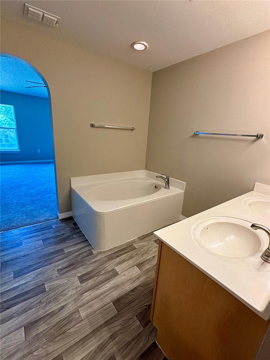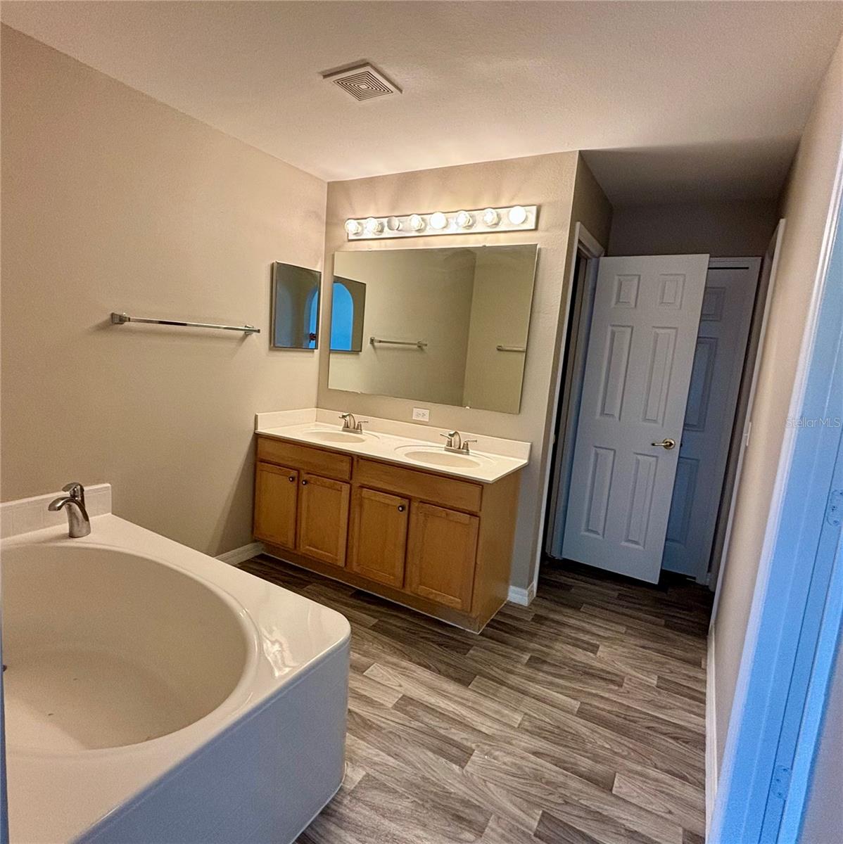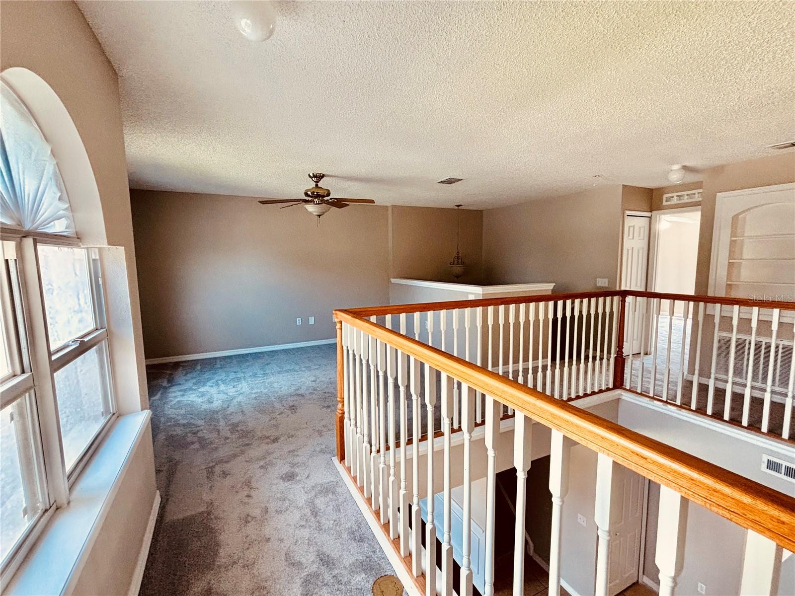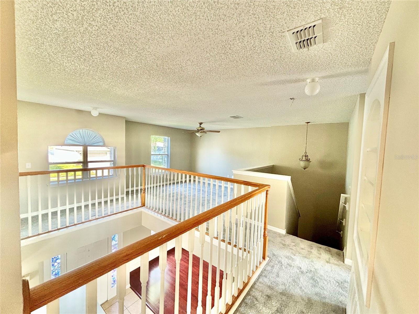 This 4 bedroom pool home on corner lot in the Crown Colony community As you walk in, you will notice the cherry wood flooring of the formal dining room, the high ceilings, natural light and open floor plan. The Kitchen has a prep island with a second sink and 2 corner pantries. The Living room has a unique built-in with a dog kennel. All bedrooms are upstairs with a nice retreat. This home has a screened salt water pool with a heated spa and a slide.