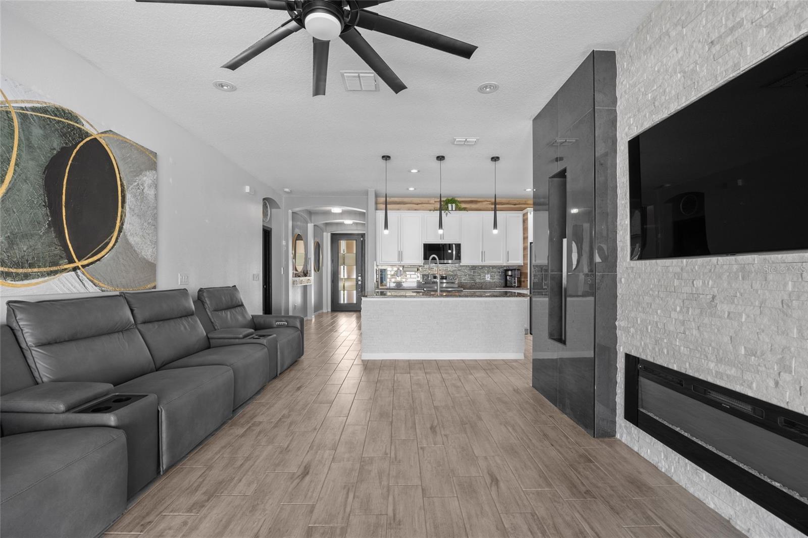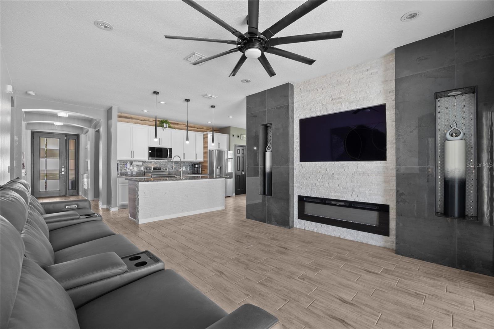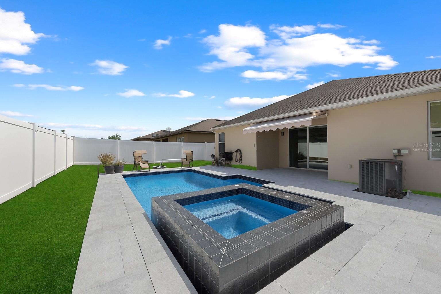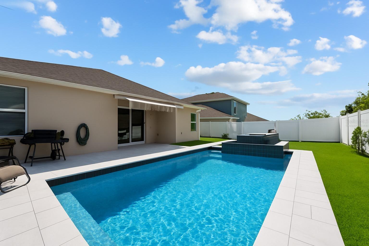 One or more photo(s) has been virtually staged. Welcome to WYNDHAM PRESERVE, a gated community. This immaculately maintained 4-bedroom, 3-bathroom home offers the perfect blend of comfort and convenience, featuring a Florida-style design that is ideal for everyday living and creating unforgettable memories. Brand New swimming Pool with a heated Spa. Step inside to a warm and inviting living space, featuring a fireplace that's ideal for cozy evenings. The open-concept kitchen features a granite island, wood cabinets, stainless steel appliances, along a dining area that seamlessly integrates with the living room. Sliding doors lead to a spectacular, crystal-clear pool. The master bedroom is very spacious, featuring windows that allow you to enjoy natural light, a walk-in closet, and an en-suite bathroom with dual sinks, vanity space, a separate shower, and a private water closet. Throughout the home, you'll enjoy ceramic tile flooring, combining elegance and low maintenance. The three additional spacious bedrooms provide plenty of room for family and guests, and one of the bedrooms is set up for a home office with additional features. Two additional full bathrooms are beautifully upgraded with windows providing natural light. Large laundry room, Zebra blinds with remote control throughout the home, exterior lights, water softener, gutter system, and Solar panel system. The driveway adds curb appeal and leads to a two-car garage with epoxy flooring. Camera system. Pool pictures are virtually staged.