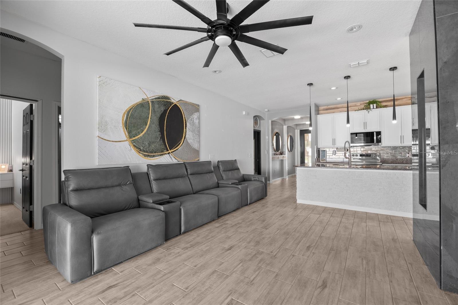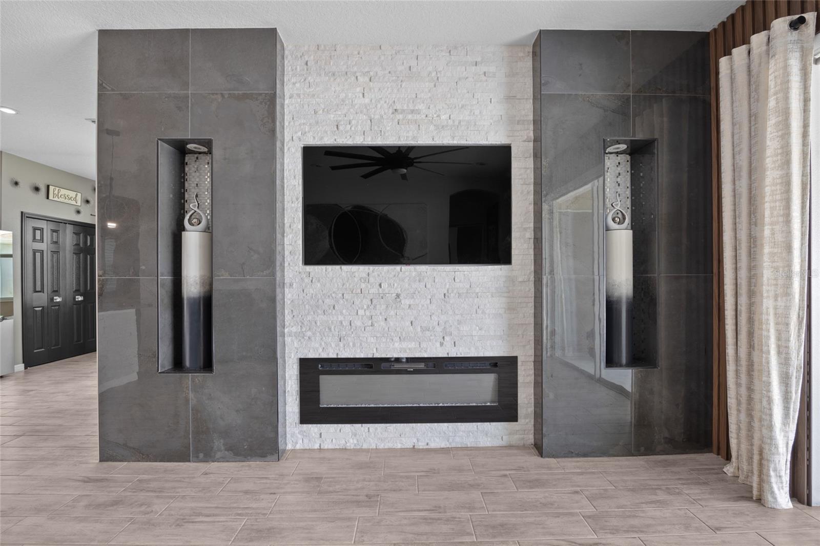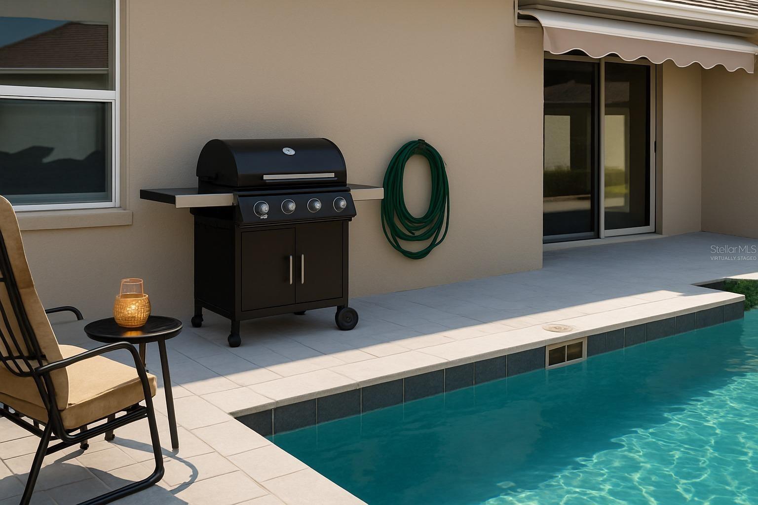 One or more photo(s) has been virtually staged. Welcome to WYNDHAM PRESERVE, a gated community. This immaculately maintained 4-bedroom, 3-bathroom home offers the perfect blend of comfort and convenience, featuring a Florida-style design that is ideal for everyday living and creating unforgettable memories. Brand New swimming Pool with a heated Spa. Step inside to a warm and inviting living space, featuring a fireplace that's ideal for cozy evenings. The open-concept kitchen features a granite island, wood cabinets, stainless steel appliances, along a dining area that seamlessly integrates with the living room. Sliding doors lead to a spectacular, crystal-clear pool. The master bedroom is very spacious, featuring windows that allow you to enjoy natural light, a walk-in closet, and an en-suite bathroom with dual sinks, vanity space, a separate shower, and a private water closet. Throughout the home, you'll enjoy ceramic tile flooring, combining elegance and low maintenance. The three additional spacious bedrooms provide plenty of room for family and guests, and one of the bedrooms is set up for a home office with additional features. Two additional full bathrooms are beautifully upgraded with windows providing natural light. Large laundry room, Zebra blinds with remote control throughout the home, exterior lights, water softener, gutter system, and Solar panel system. The driveway adds curb appeal and leads to a two-car garage with epoxy flooring. Camera system. Pool pictures are virtually staged.