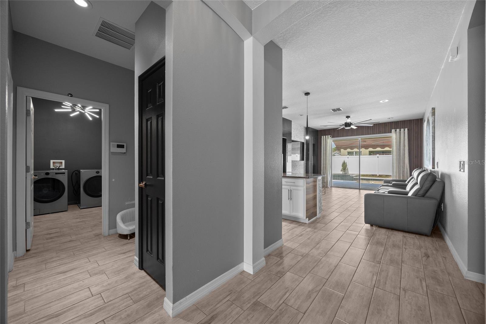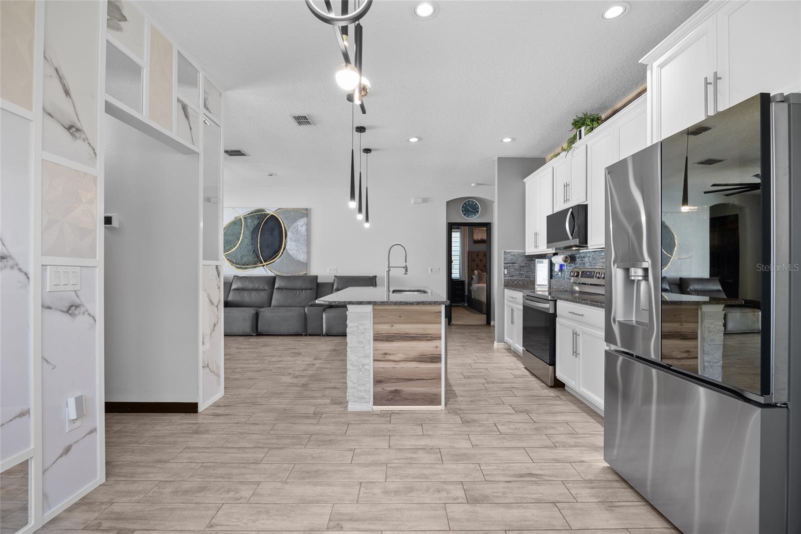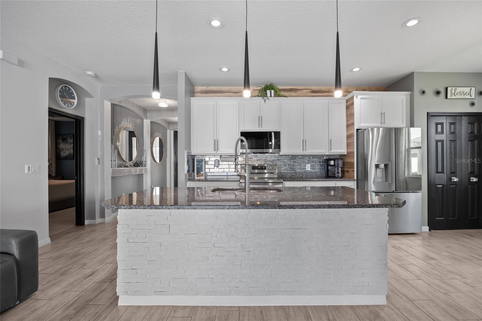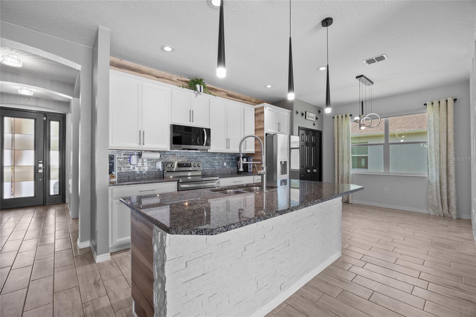 One or more photo(s) has been virtually staged. Welcome to WYNDHAM PRESERVE, a gated community. This immaculately maintained 4-bedroom, 3-bathroom home offers the perfect blend of comfort and convenience, featuring a Florida-style design that is ideal for everyday living and creating unforgettable memories. Brand New swimming Pool with a heated Spa. Step inside to a warm and inviting living space, featuring a fireplace that's ideal for cozy evenings. The open-concept kitchen features a granite island, wood cabinets, stainless steel appliances, along a dining area that seamlessly integrates with the living room. Sliding doors lead to a spectacular, crystal-clear pool. The master bedroom is very spacious, featuring windows that allow you to enjoy natural light, a walk-in closet, and an en-suite bathroom with dual sinks, vanity space, a separate shower, and a private water closet. Throughout the home, you'll enjoy ceramic tile flooring, combining elegance and low maintenance. The three additional spacious bedrooms provide plenty of room for family and guests, and one of the bedrooms is set up for a home office with additional features. Two additional full bathrooms are beautifully upgraded with windows providing natural light. Large laundry room, Zebra blinds with remote control throughout the home, exterior lights, water softener, gutter system, and Solar panel system. The driveway adds curb appeal and leads to a two-car garage with epoxy flooring. Camera system. Pool pictures are virtually staged.