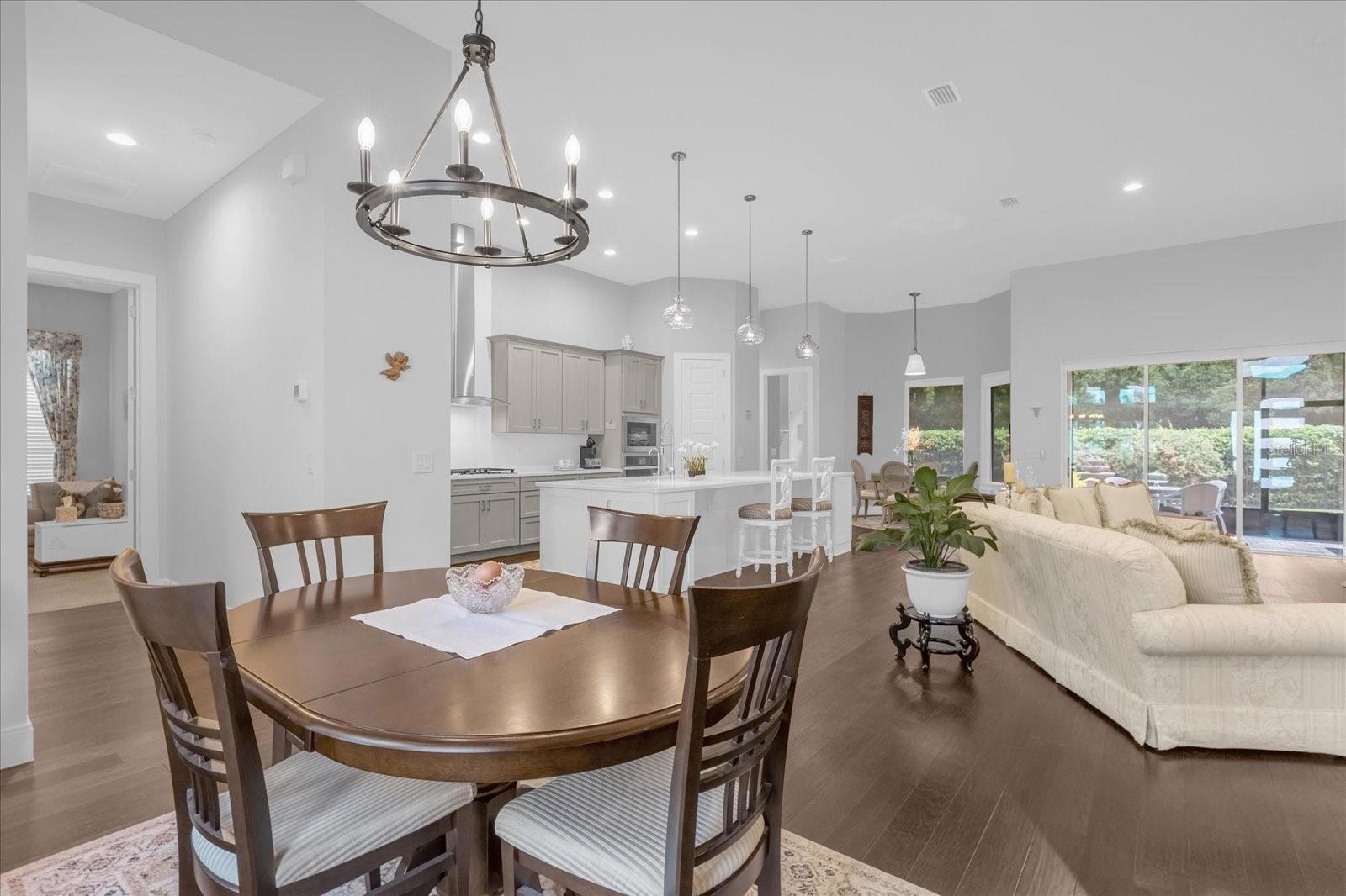 Welcome to Tranquility at 2217 Lake Sylvan Oaks Court, Sanford, FL - an elegant and modern haven meticulously designed by WJ Homes for those who appreciate both luxury and comfort. This Crystal Floorplan residence is immaculately kept and boasts 4 spacious bedrooms, den and 3 bathrooms with over 2700 sq. ft and state of the art technology. Why wait for new construction! As you enter this stunning home you are greeted by a newly updated interior that seamlessly blends contemporary finishes with timeless elegance. The new look showcases an open floor plan that exudes a sense of grandeur, creating an inviting atmosphere perfect for both entertaining and everyday living. High ceilings and expansive windows enhance the airy ambiance, allowing natural light to flood every corner of the home. The gourmet kitchen, a true centerpiece, features top-of-the-line appliances, sleek countertops, and ample storage, making it a dream for culinary enthusiasts. Adjacent to the kitchen, the living area offers a sophisticated space to relax and unwind or open the fully collapsing slider for direct access to your private outdoor oasis. The primary suite is a sanctuary of luxury boasting elegant tray ceilings that add a touch of sophistication and spaciousness, complete with a spa-like en-suite bathroom and generous closet space. Three additional bedrooms provide versatility and comfort, ideal for guests or a home office setup. The sun-drenched den provides yet another versatile space to work, play or unwind. The outdoor space is equally impressive. Whether you envision tranquil mornings with a cup of coffee or hosting evening gatherings, the private well landscaped yard and outdoor kitchen offer endless possibilities. Nestled in the highly sought after Seminole County school district and minutes from shopping, dining and entertainment, choosing this completed residence over new construction means you can move in immediately without the wait, enjoying the benefits of a thoughtfully designed home that meets the highest standards of modern living.