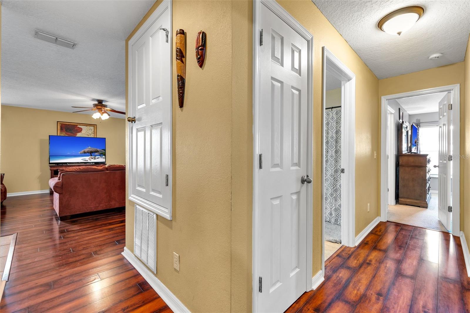 Welcome to your new home! This 3/2 home is the epitome of comfort and style. Step into a kitchen that is open with views of the back porch area. Hardwood and tile floors grace the high-traffic areas. The master bedroom is a sanctuary featuring a walk-in closet and the ensuite bathroom boasts dual sinks, a luxurious garden tub, and a separate shower. Need some shade from the sun? Choose between the front or rear screened-in porches, both perfect spots to unwind and enjoy the view. Low HOA. This home also has a brand-new roof, October 2023. Ready to make this your haven? Schedule your exclusive tour today!