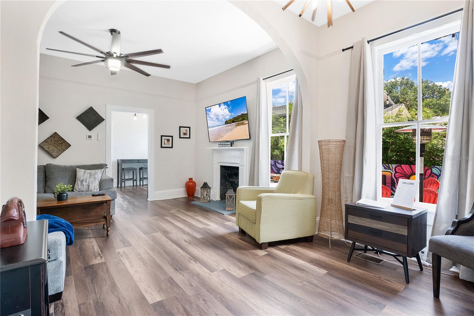 Welcome to 301 S Palmetto Avenue - historic charm meets modern living in this beautifully renovated 4-bedroom, 2.5-bathroom, 2-story home, ideally located at the place where two historic districts meet: the Sanford Residential Historic District and the Sanford Commercial Historic District - and this property truly represents the best of both worlds. Multiple zoning uses offer endless possibilities for your lifestyle or business dreams. Whether you envision it as your dream home or a thriving business, this property fits the bill. Consider transforming it into a charming bed and breakfast, a trendy restaurant, a boutique, professional office. This home is currently operating as a turn-key short term rental and is being sold fully furnished. Nestled right in the middle of Historic Downtown Sanford and literally steps away from all the shops, dining, and nightlife that make this location so desirable. This home recently received a complete renovation, preserving its historic character while updating to today’s standard of living. Enjoy peace of mind with a brand new roof and other updated mechanicals. A spacious DOWNSTAIRS PRIMARY SUITE provides convenience and privacy, perfect for accommodating guests or offering a retreat-like experience. The downstairs living spaces flow seamlessly, ideal for entertaining. A modern, fully equipped kitchen with stainless steel appliances , resilient LVP flooring throughout and upstairs, spacious bedrooms with ample closet space and an additional full bathroom (all bathrooms have been updated with stylish fixtures and finishes!) The beautiful original windows adding warmth, light and elegance to every room. A charming front porch perfect for relaxing and enjoying the vibrant downtown atmosphere and a private backyard offering a peaceful oasis amidst the bustling city. Whether you’re looking for a unique residential home with historic flair or an exceptional commercial property in a prime location, this downtown gem offers the best of both worlds. Don’t miss this rare opportunity to own a piece of history with unlimited potential!