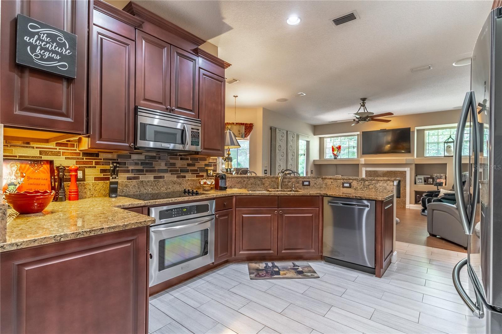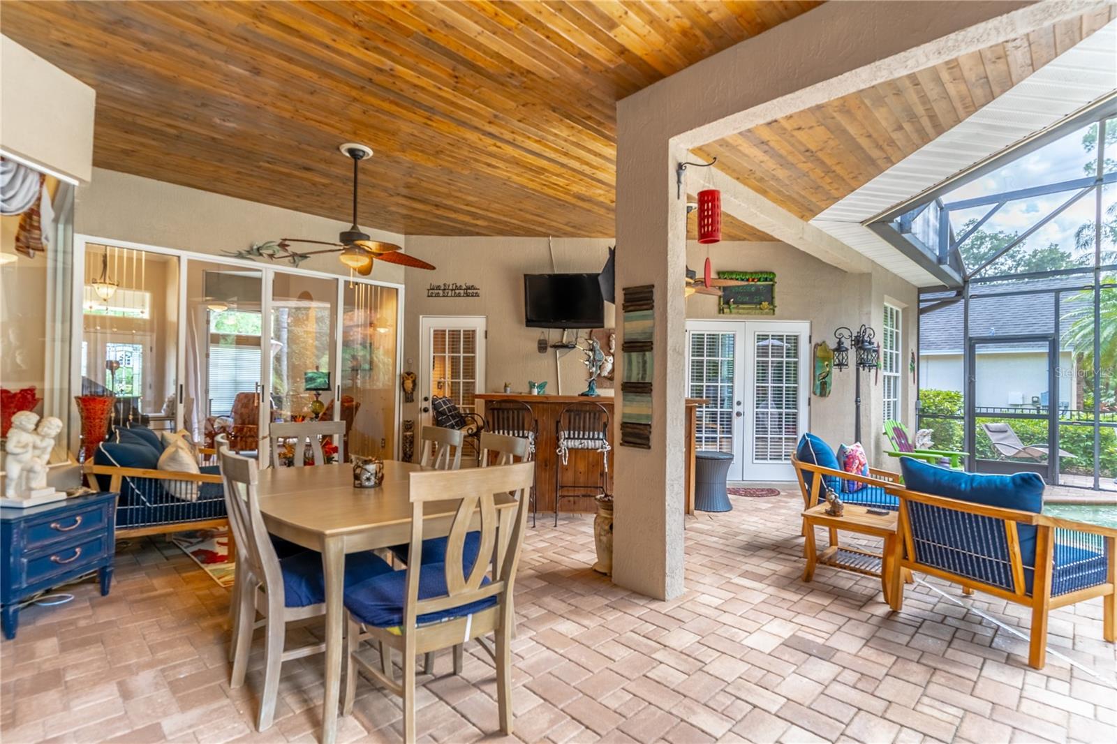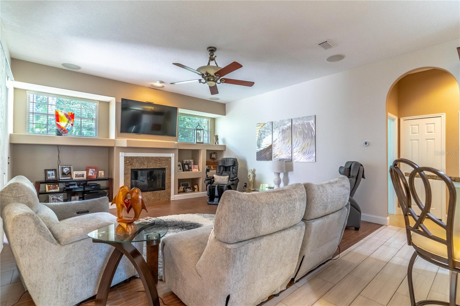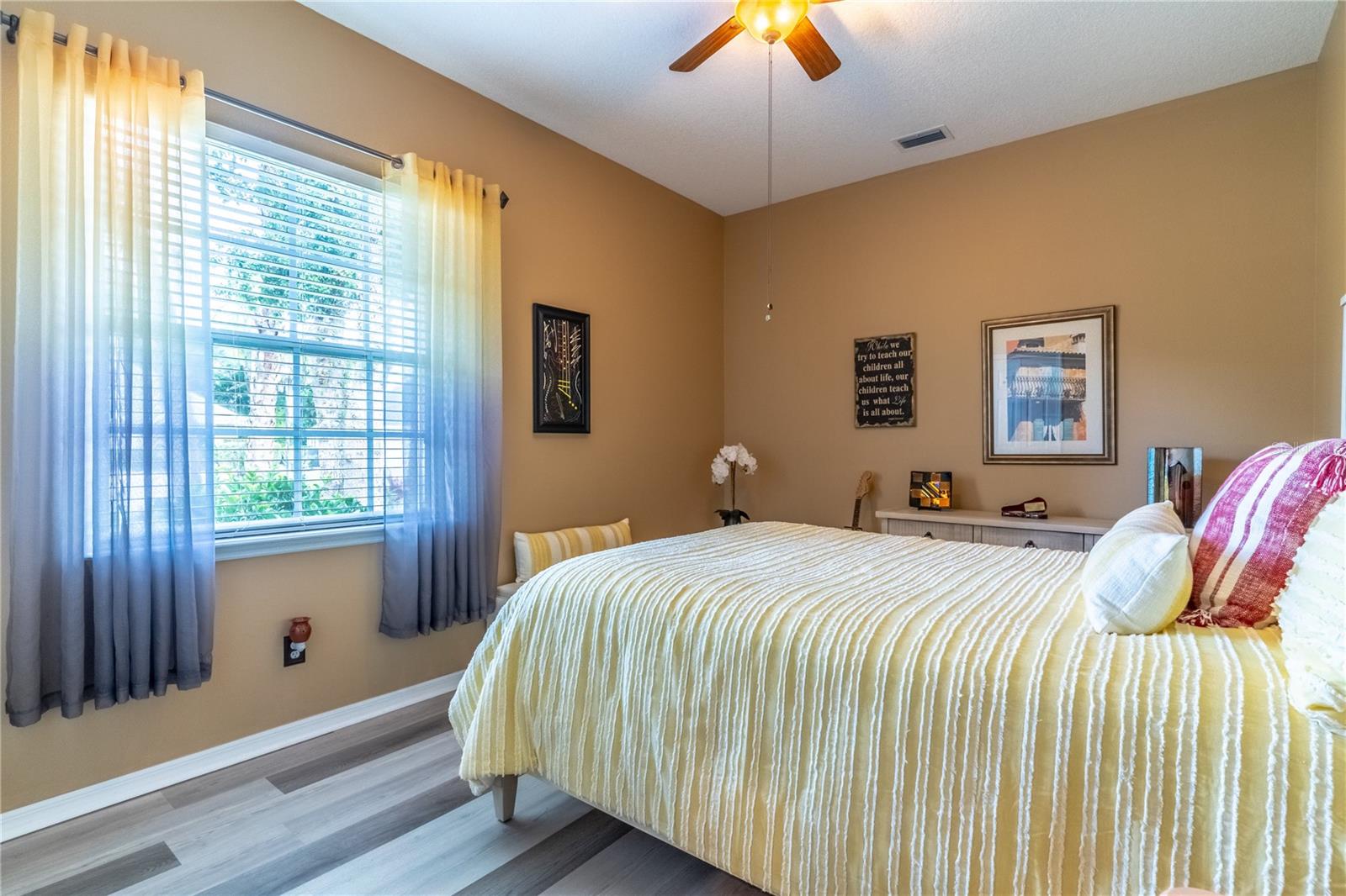 Welcome to your dream home! This stunningly remodeled 4-bedroom, 3-bathroom residence with a 2-car garage and "cocktail pool" is located in the very desirable, highly sought after, 24-hour guard-gated community of Lake Forest in Sanford, FL. Situated on a .33-acre corner lot near a cul-de-sac, this home offers extra privacy and tranquility. The thoughtfully designed split-bedroom layout boasts elegant crown molding, separate living and dining rooms, and a cozy family room featuring porcelain tile wood plank flooring, a wood-burning fireplace, and a built-in entertainment center. The family room & living room opens up to a spacious 21'x26' pavered screened lanai with "cocktail pool", built-in bar, and built-in grill just off patio, making it perfect for entertaining. The primary bedroom suite features two walk-in closets and a remodeled bathroom with dual sinks, porcelain tile, a custom shower with a luxurious Dynamic Infrared Maxxus 2-person Bluetooth compatible FAR Infrared Sauna in Hemlock Wood. The modern kitchen is a chef’s delight, featuring 42" cherrry wood cabinets, closet pantry, stainless steel appliances including a built-in oven, cooktop, microwave, and dishwasher, under-cabinet lighting, granite countertops, and a tiled backsplash. Recent upgrades include a NEW ROOF and WATER HEATER (2024), NEW HVAC with dual blue light filtration (2023), REPIPED (2018), and fresh exterior paint. This exceptional home is perfect for both family living and entertaining. The Lake Forest community is known for its natural beauty and resort-style amenities situated on a 55-acre spring-fed lake, with walking trails and plenty of wildlife. The community features designated conservation areas throughout, 10,000 square foot clubhouse with a full fitness center, kitchen, and meeting rooms, a Junior Olympic sized swimming pool with a heated spa and a kiddie pool, lighted tennis courts and two lighted pickleball courts, Basketball courts, playground, and a private sand beach with a volleyball court and fishing dock. Opportunity for canoeing, kayaking, and fishing on the lake. The Lake Forest Social Club organizes events year-round for all ages. Beautifull Gated entrance with 24-hour security. Fantastic location, close to shopping centers, restaurants, and entertainment options in Sanford and Lake Mary area with easy access to I-4 and 417 & Wekiva Parkway for reaching all of Central Florida, including World Famous Beaches & Amusement Parks and Downtown Mt Dora. Don’t miss this opportunity! Schedule a showing today!