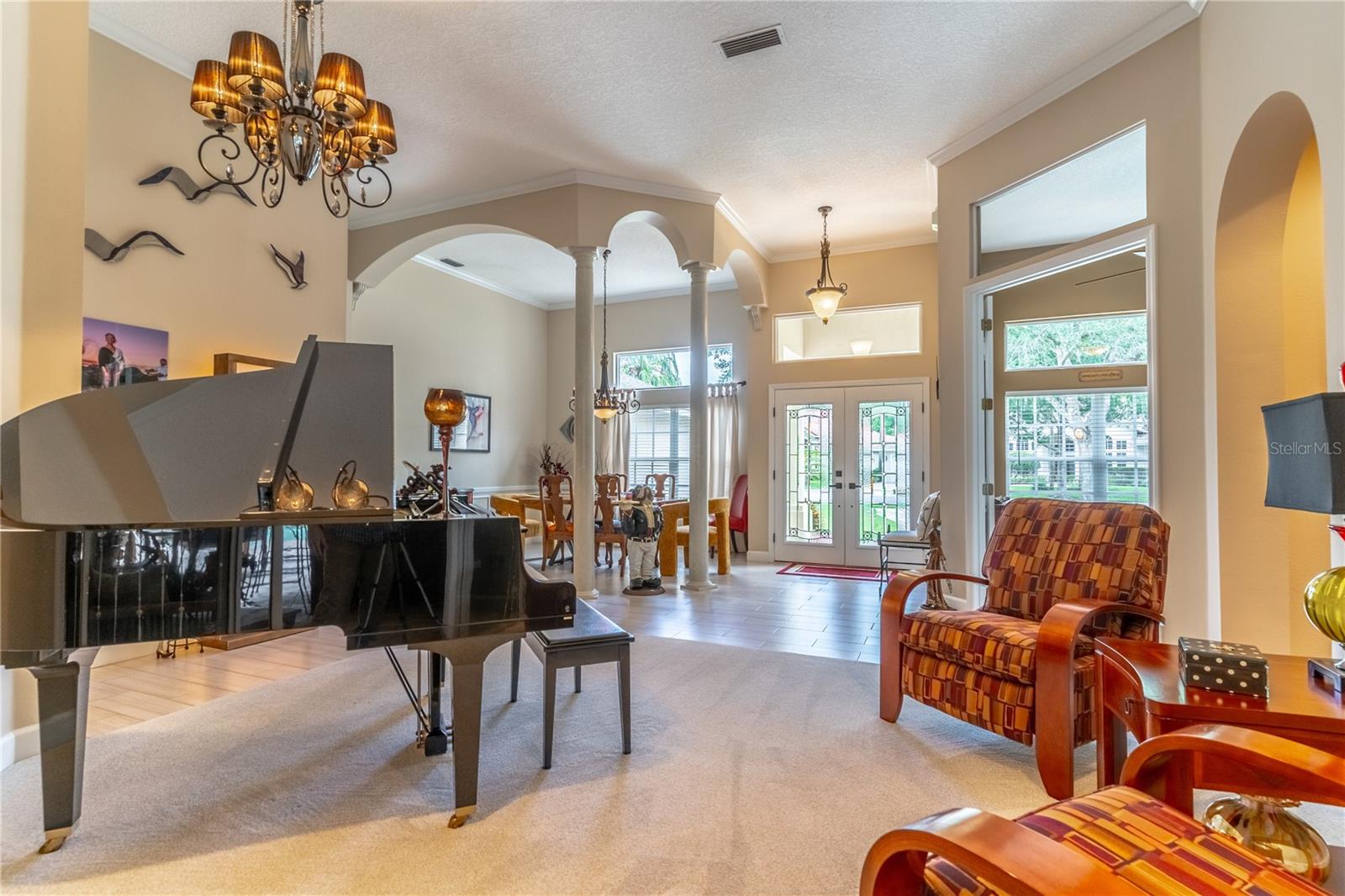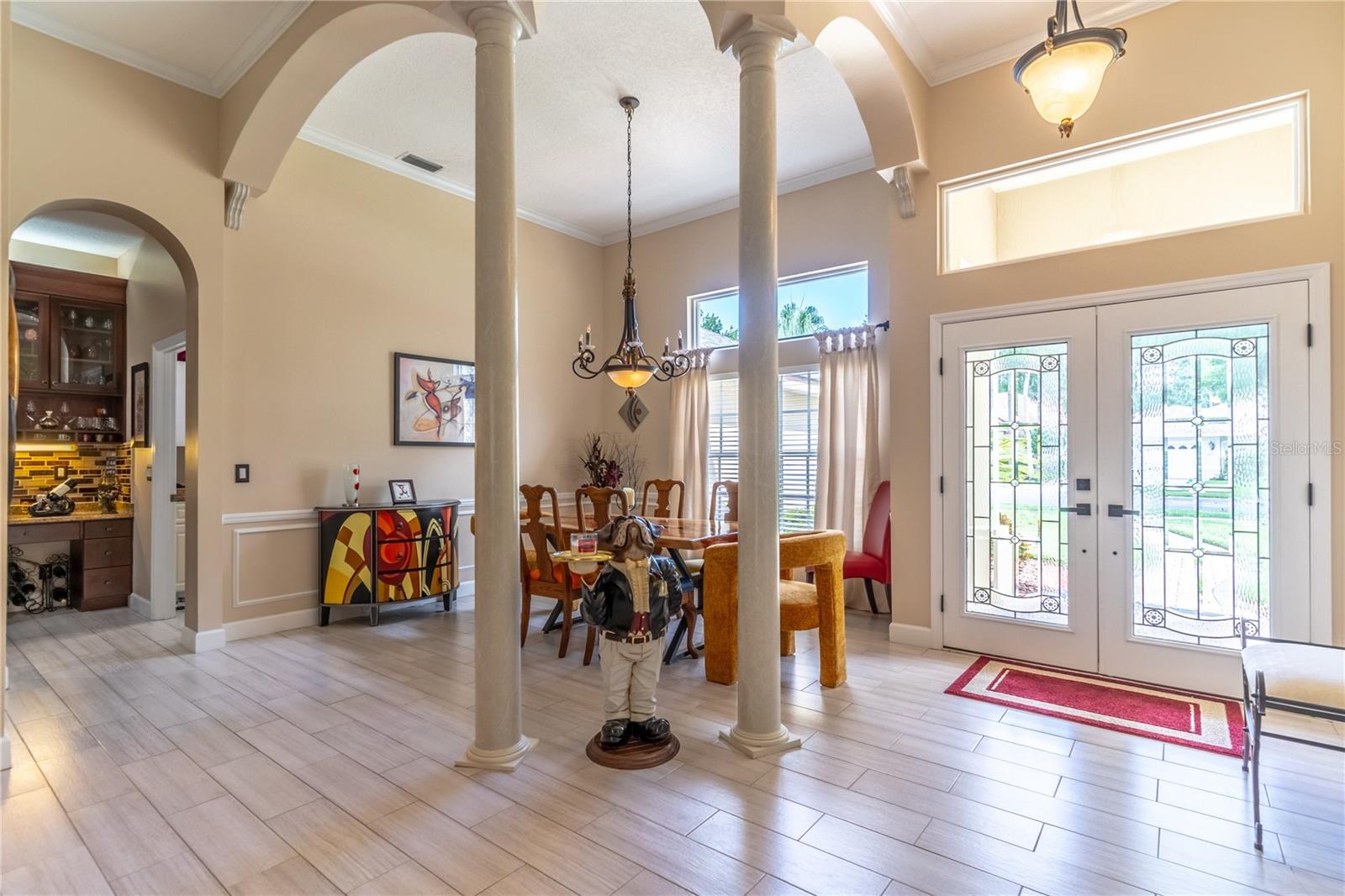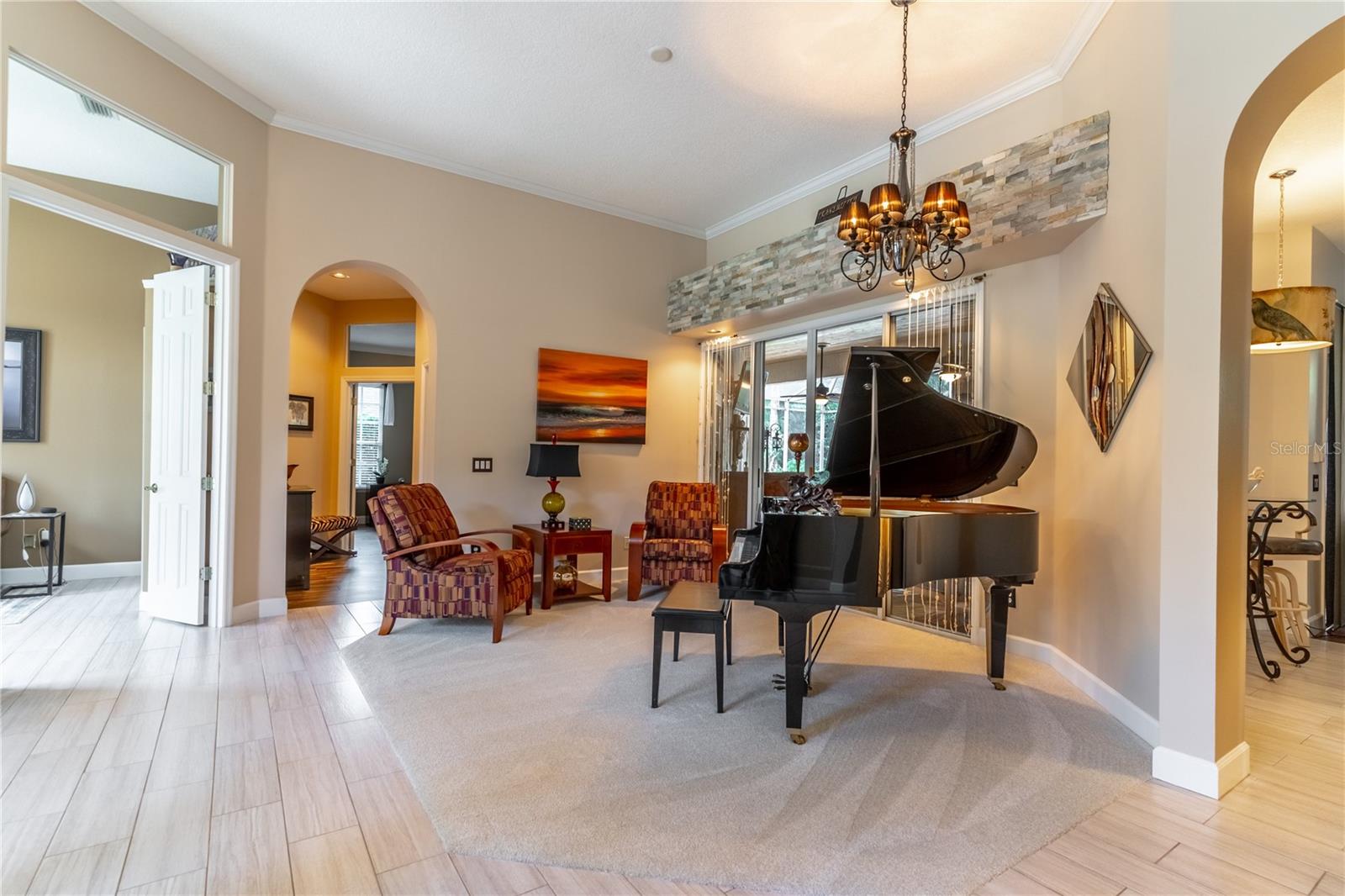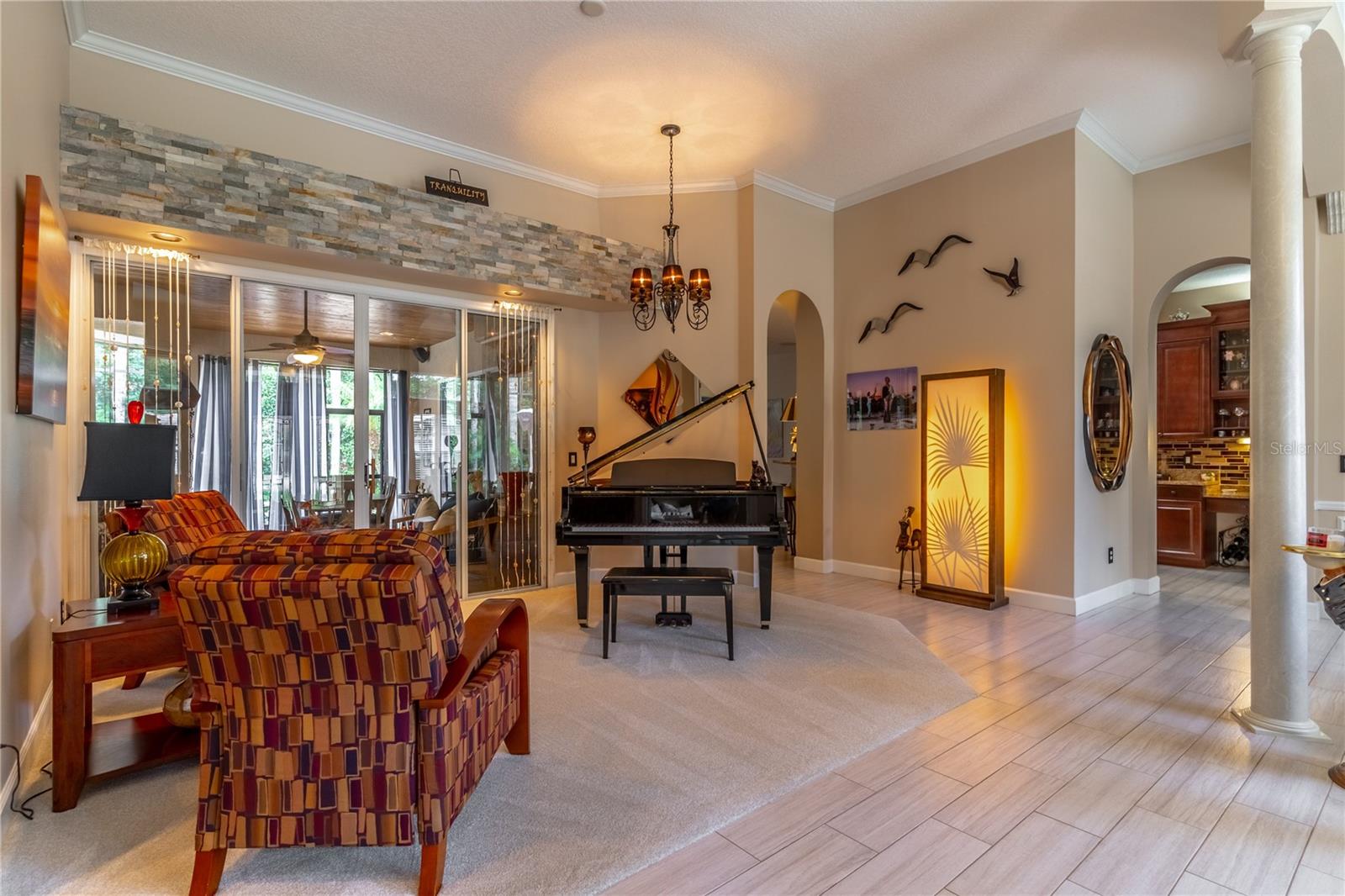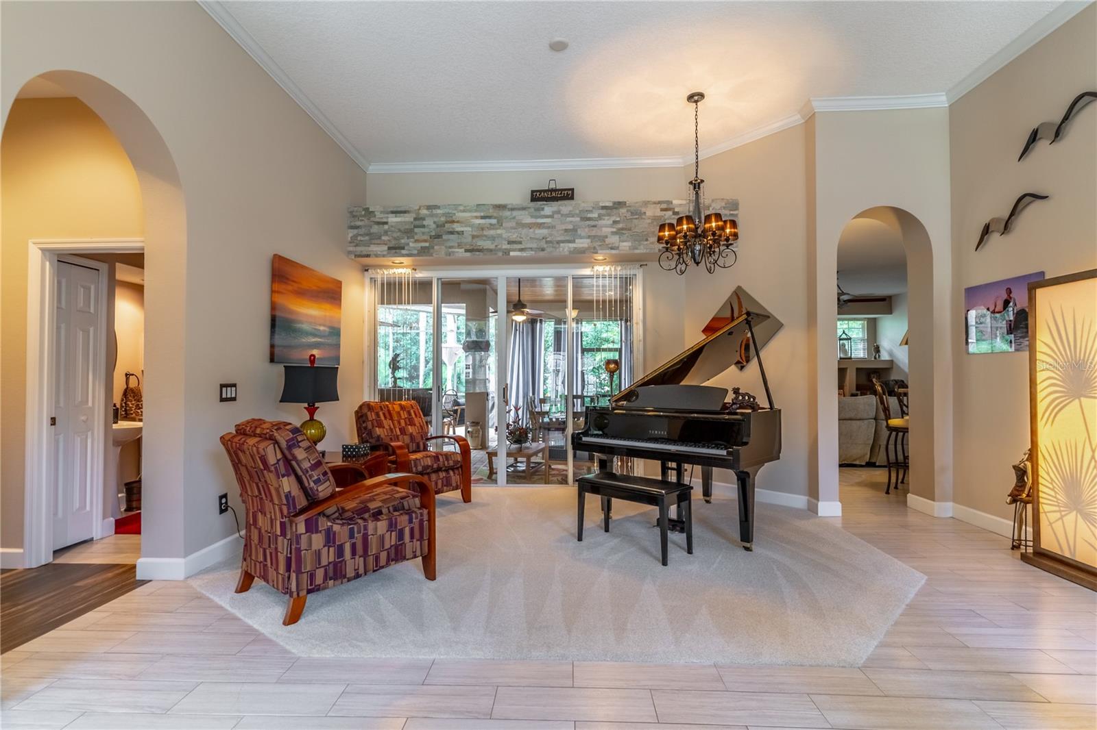Welcome to your dream home! This stunningly remodeled 4-bedroom, 3-bathroom residence with a 2-car garage and "cocktail pool" is located in the very desirable, highly sought after, 24-hour guard-gated community of Lake Forest in Sanford, FL. Situated on a .33-acre corner lot near a cul-de-sac, this home offers extra privacy and tranquility. The thoughtfully designed split-bedroom layout boasts elegant crown molding, separate living and dining rooms, and a cozy family room featuring porcelain tile wood plank flooring, a wood-burning fireplace, and a built-in entertainment center. The family room & living room opens up to a spacious 21'x26' pavered screened lanai with "cocktail pool", built-in bar, and built-in grill just off patio, making it perfect for entertaining. The primary bedroom suite features two walk-in closets and a remodeled bathroom with dual sinks, porcelain tile, a custom shower with a luxurious Dynamic Infrared Maxxus 2-person Bluetooth compatible FAR Infrared Sauna in Hemlock Wood. The modern kitchen is a chef’s delight, featuring 42" cherrry wood cabinets, closet pantry, stainless steel appliances including a built-in oven, cooktop, microwave, and dishwasher, under-cabinet lighting, granite countertops, and a tiled backsplash. Recent upgrades include a NEW ROOF and WATER HEATER (2024), NEW HVAC with dual blue light filtration (2023), REPIPED (2018), and fresh exterior paint. This exceptional home is perfect for both family living and entertaining. The Lake Forest community is known for its natural beauty and resort-style amenities situated on a 55-acre spring-fed lake, with walking trails and plenty of wildlife. The community features designated conservation areas throughout, 10,000 square foot clubhouse with a full fitness center, kitchen, and meeting rooms, a Junior Olympic sized swimming pool with a heated spa and a kiddie pool, lighted tennis courts and two lighted pickleball courts, Basketball courts, playground, and a private sand beach with a volleyball court and fishing dock. Opportunity for canoeing, kayaking, and fishing on the lake. The Lake Forest Social Club organizes events year-round for all ages. Beautifull Gated entrance with 24-hour security. Fantastic location, close to shopping centers, restaurants, and entertainment options in Sanford and Lake Mary area with easy access to I-4 and 417 & Wekiva Parkway for reaching all of Central Florida, including World Famous Beaches & Amusement Parks and Downtown Mt Dora. Don’t miss this opportunity! Schedule a showing today!