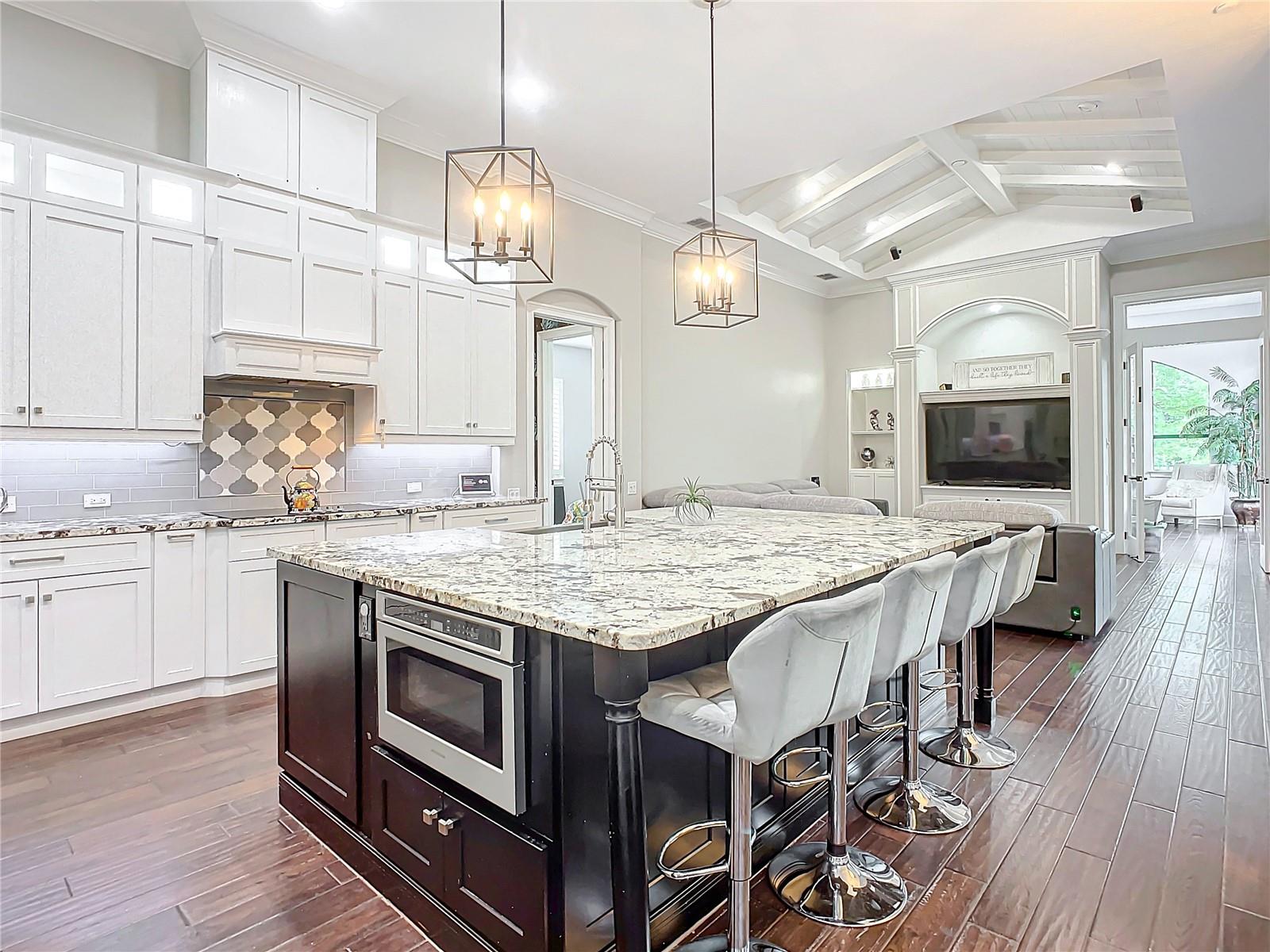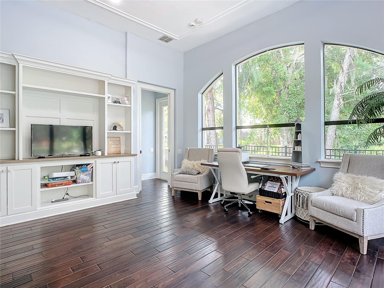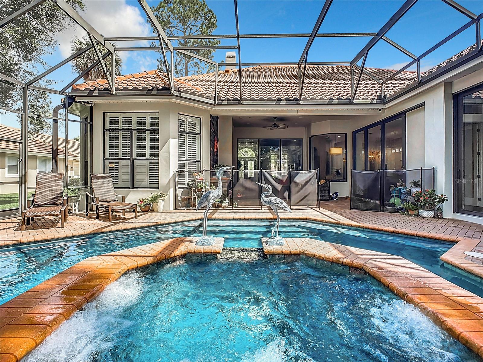 WATERFRONT POOL HOME with 4 bedrooms, 3 full baths, office/den and an over-sized bonus room is luxury living at it's finest! The brick paver courtyard greets you near the tall double doors that open in to this gorgeous home showcasing volume ceilings, plantation shutters and warm wood floors. The perfectly placed office or den is located off of the foyer with built-in decorative cabinets & display cases. Entertain friends and family in the formal dining room or in the elegant kitchen featuring double ovens, gigantic center island, exposed butler buffet with wine fridge and classic white cabinets with glass-lit toppers. The kitchen spills over into the large family room with picturesque views of the heated pool and tranquil waterway. Looking for a separate man cave, game room or living quarters? The bonus room offers many options plus connects to a private full bath and bedroom with an entry to the outside fenced yard. This 3 way split floorplan is designed to give everyone space and privacy. The primary suite is secluded from the main living area with double walk-in closets, en suite bath with jacuzzi tub and a separate shower stall. Two other bedrooms and a full bath are on the opposite side of the home that can be closed off with a pocket door. Enjoy pool parties, BBQs and amazing waterviews under the screened patio complete with a summer kitchen! When the weather cools down, soak in the heated spa outside or gather around the gas lit fireplace in the cozy living room. There's plenty of room for parking with a side entry garage that has an electric vehicle charger and a propane gas water heater that was replaced in 2023. The interior gray paint and fence inserts for smaller dogs was done in 2023. This home has so much to fall in love with and so does the wonderful community of Lake Forest. A resort lifestyle awaits with a 24/7 staffed gated entry, Jr. Olympic pool, spa, kiddie pool, sandy beach along the lake, a fishing pier, 6 tennis courts, playground and a huge 10.000 sq. ft. Clubhouse with a fitness center, party and conference rooms. Ideal location with Publix right outside the gate, Interstate 4 one mile down the street and Seminole Towne Center Mall two miles away. Expect to be impressed, call today for an appointment!