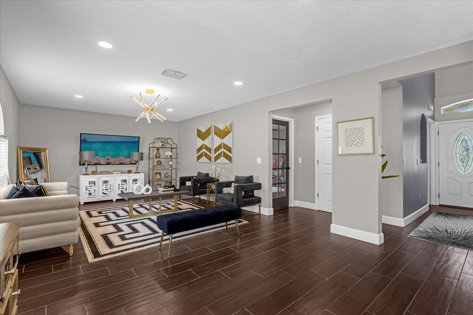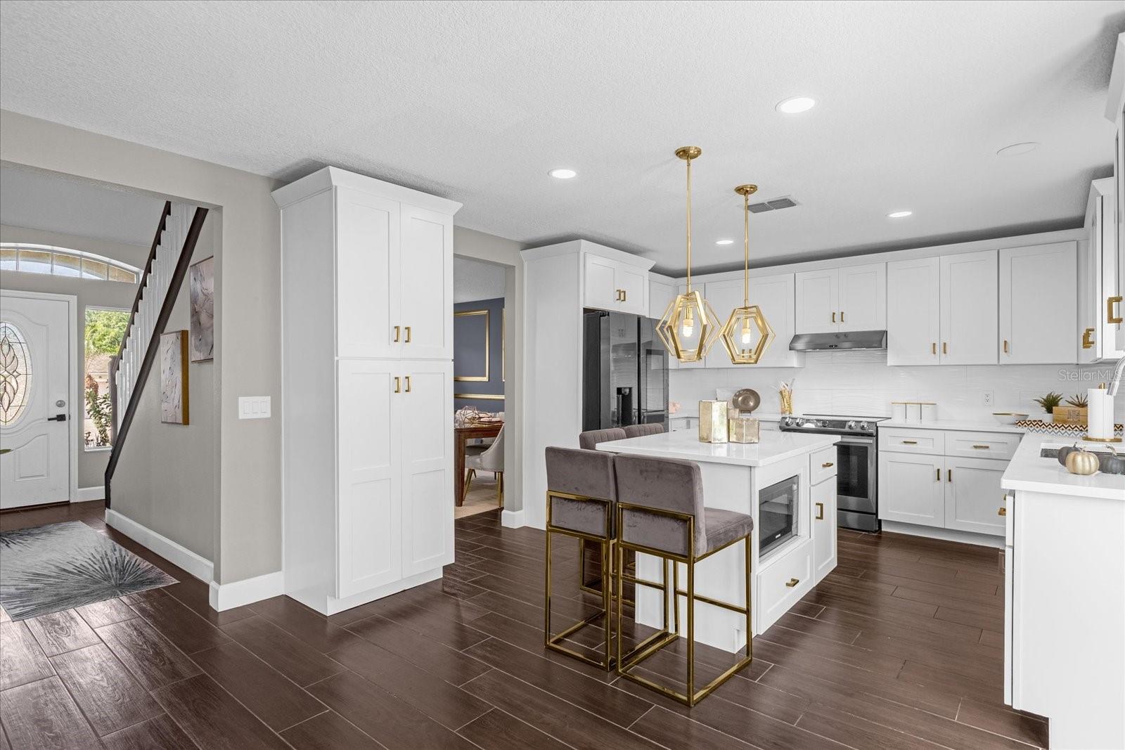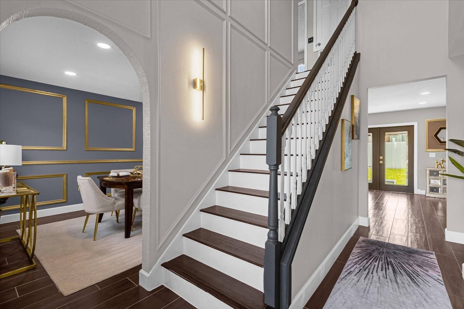 Welcome to 132 Spanish Bay Drive, where warmth, comfort, and style come together to create the perfect home for you and your family. As you arrive, you'll be greeted by a charming exterior, with lush tropical landscaping and a beautifully maintained lawn that invites you to explore the elegance within. The front entrance, framed by greenery, leads you into a bright and welcoming foyer where natural light dances across the custom wall detailing and stylish staircase, instantly making you feel at home. Step inside and experience a living space that exudes both warmth and elegance. The dining room, with its rich navy-blue walls and tasteful gold accents, sets the stage for memorable dinners and lively conversations. Large windows fill the space with light, creating a cheerful atmosphere where you can gather with loved ones around the table, enjoying the company as much as the meals. The heart of the home is the cozy living room, where comfortable seating and a neutral color palette make it easy to relax and unwind. Whether you're hosting friends for a movie night or curling up with a good book, this room is designed to bring family together. The thoughtful decor, including a stylish geometric rug and subtle gold accents, adds a touch of elegance without losing that warm, homely feel. Your kitchen is ready to welcome your culinary adventures, with modern appliances, sleek quartz countertops, and an expansive island with a breakfast bar, perfect for casual mornings with a cup of coffee or catching up with family after a long day. The custom cabinetry provides ample storage space, and the adjacent light-filled dining nook is ideal for enjoying a quick bite or a relaxed weekend brunch. When it's time to retreat, the bedrooms have a sanctuary of comfort. Plush carpeting underfoot and large windows make each room feel bright and airy, while the master suite provides a private haven with a spacious layout, a walk-in closet, and a luxurious en-suite bathroom featuring a double vanity, a soaking tub, and a separate walk-in shower. It's a place where you can truly unwind, recharge, and feel at peace. The home's outdoor space is a highlight, featuring a spacious backyard with a lush lawn enclosed by a vinyl fence. It's perfect for barbecues, playtime, or soaking up the Florida sunshine. The cozy patio with modern furniture is ideal for gatherings or quiet moments, and the fire pit adds warmth for evening enjoyment. This versatile yard is ready for your outdoor lifestyle. Other notable features of this exceptional home include a modern half-bath with a chic glass vessel sink, stylish light fixtures throughout, a dedicated home office space, and a two-car garage. The home is located in a friendly, gated community, providing both privacy and a sense of community. Plus, with its close proximity to top-rated schools, shopping, dining, and major highways, you'll have everything you need right at your fingertips. 132 Spanish Bay Drive isn't just a house—it's a place where you can build a life full of joy, love, and memories. From the welcoming design to the thoughtful details and outstanding features, every aspect of this home has been crafted to make you feel at ease the moment you walk through the door. Welcome home! <iframe width='853' height='480' src='https://my.matterport.com/show/?m=ctax3D4Qc69' frameborder='0' allowfullscreen allow='xr-spatial-tracking'></iframe>