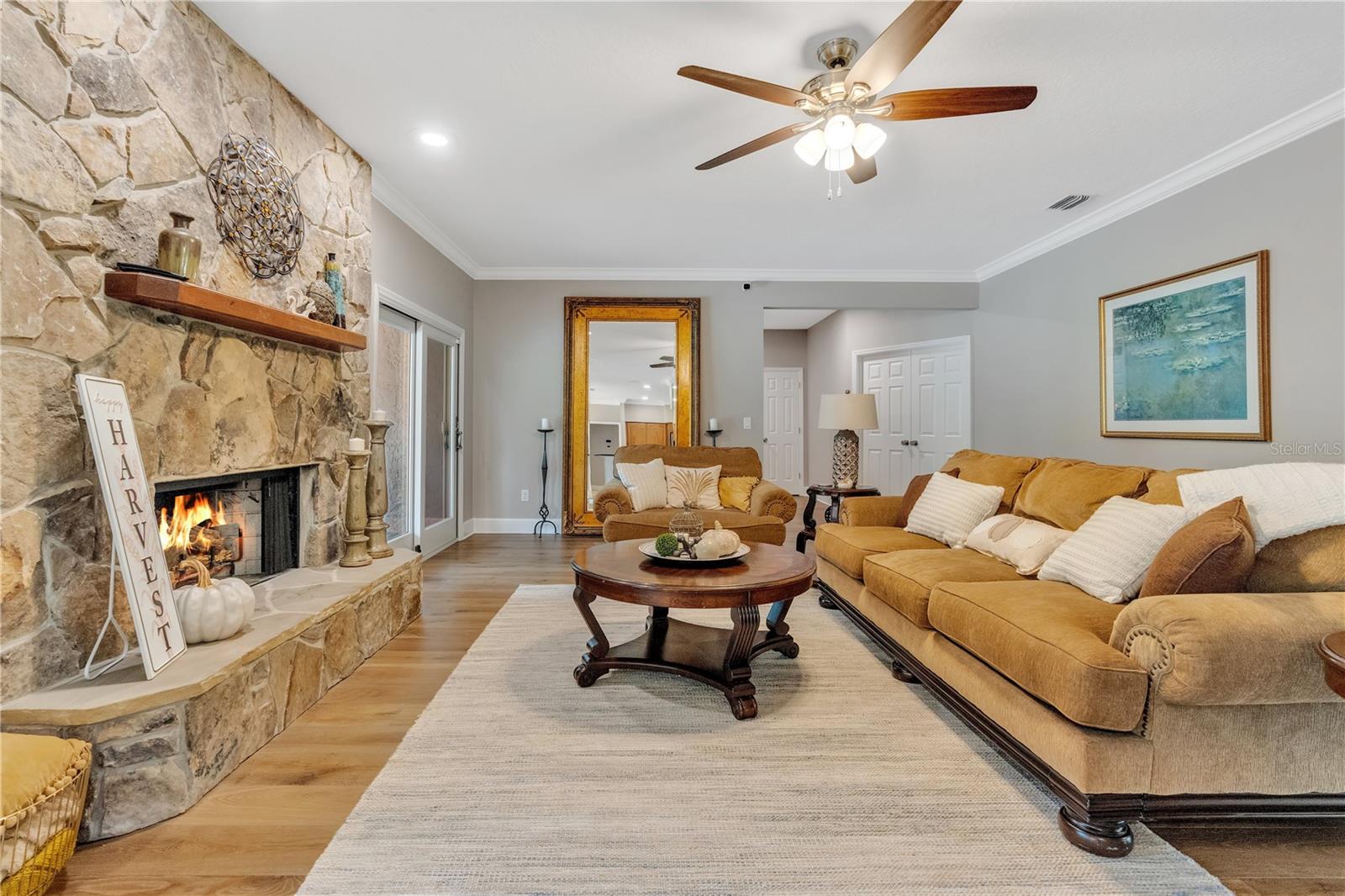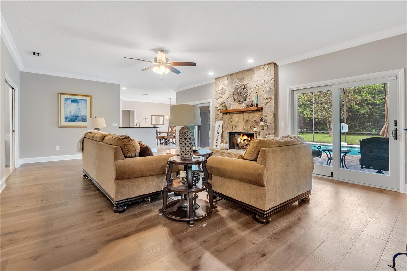 Don't miss the opportunity to own this magnificent POOL home in the desired River Crest gated/ guarded Community - it will not last! As you pull into the long circular driveway with amazing landscaping you know you are home. This magnificent home sits on ONE full acre with breathtaking view of mature, wooded landscaping. Stunning curb appeal with extended driveway and side entry 2 garage. Oversized back and side yard; perfect for soccer or playground. It is an immaculate 4 bedroom, 3 full bath home with large bonus/ entertainment room and real wood burning fireplace! A brilliant floor plan as you walk to the front door through the beautiful foyer to the separate formal dining/ living areas. Formal living could also be private study or a perfect office to work from home. Decorated with wood and travertine flooring throughout that boasts attention to detail. Stunning crown molding also throughout entire home. Kitchen with stainless steel appliances, island and expansive wood cabinetry. Kitchen/ Family combo with large eat-in kitchen. Cozy wood-burning fireplace. Two sets of beautiful sliding Doors from family room to pool/enclosed lanai area. The most stunning pool overlooking mature landscaping and over-sized open back yard. Large lanai so perfect for entertaining family, friends and enjoying your morning coffee. The split plan master bedroom has separate access to the pool and wooded backyard. It is an oversized master bedroom with a large walk-in closet with a double access doors. Master bathroom has dual sinks and separate bathtub, spacious shower, large linen closet and private water closet. Off of the family room is a large entertainment room. Every bedroom has direct access to a bathroom. The split floor plan includes an incredible, newly renovated Jack and Jill bathroom between two large bedroom. The third bedroom with a pool view has access to an oversized guest bathroom as well. This magnificent home features Brand new windows, Electric, Flooring, interior paint job, Pool/Deck renewal, Window treatments, Alarm system, Invisible fence around entire grounds. Newer screen in enclosure and new exterior paint (2019). New from 2018-2020 water softener, water heater, pool pump and well. AC units were both inspected and cleaned September 2024. This home has everything you have been looking for. River Crest offers a private 24 hour gated guarded community with only unique custom built homes!! The community has a private tennis court and gorgeous park with a wooden deck trail that leads to a dock on the Wekiva River a gorgeous spring fed river. Walk directly to the Seminole biking/ walking trail voted one of the best trails in all of Florida. Just around the corner from amazing parks, shopping and fabulous restaurants. Excellent A-Rated Seminole County Schools. Minutes to I-4 and 417/ 429 Exchange Wekiva Parkway. Location, Location, Location! A short 30 minute drive to Orlandos world famous attraction/theme park are or a smooth 45 minute drive to a few of Floridas most famous beaches.