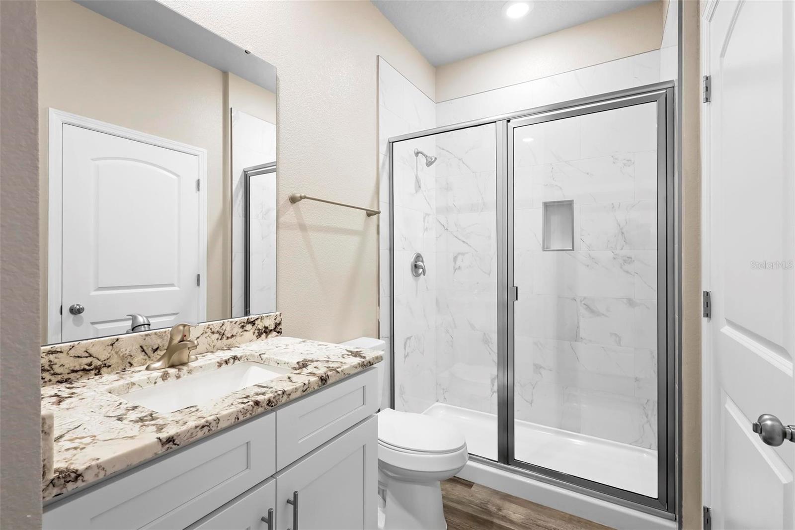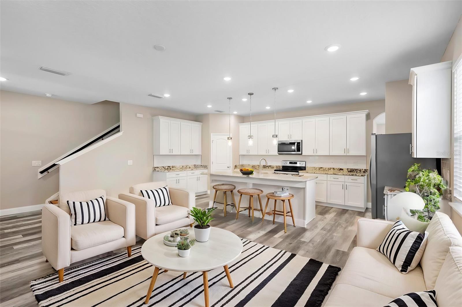 One or more photo(s) has been virtually staged. This newly constructed smart home features four bedrooms and three bathrooms spread across two stories. The interior boasts vinyl flooring throughout, complemented by brand-new stainless steel Whirlpool appliances and granite countertops in the expansive open-concept kitchen, complete with a sizable island perfect for entertaining guests. A guest bedroom with an adjoining full bathroom is conveniently situated on the first floor. Upstairs, the spacious owner's suite showcases tray ceilings, a vast walk-in closet, and a luxurious ensuite with double sinks and a generously sized shower. For added convenience, a first-floor laundry room is included, along with a large two-car garage. The property will be enclosed with fencing before the closing date. Ideally located just minutes from Downtown Sanford, this home provides easy access to grocery stores, shopping centers, and restaurants. Nature enthusiasts will appreciate the proximity to the scenic river walk, Central Florida Zoo, and Botanical Gardens. Don't miss the opportunity to explore this all-encompassing residence; schedule a showing today as this property is sure to be in high demand!