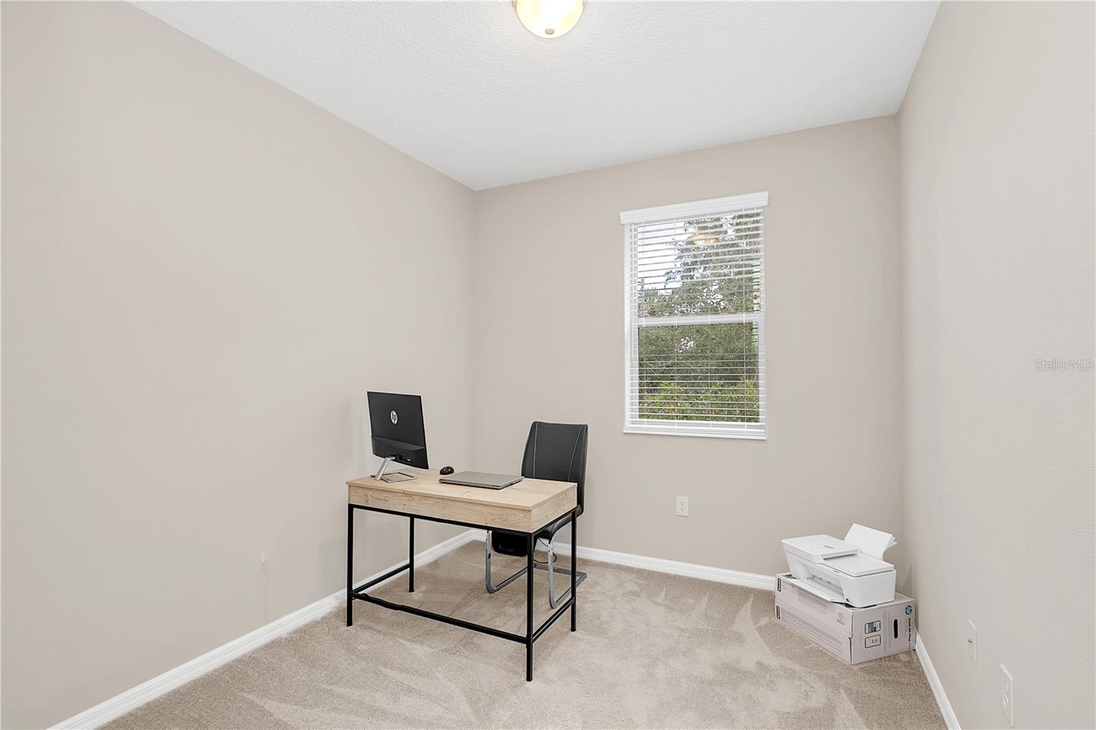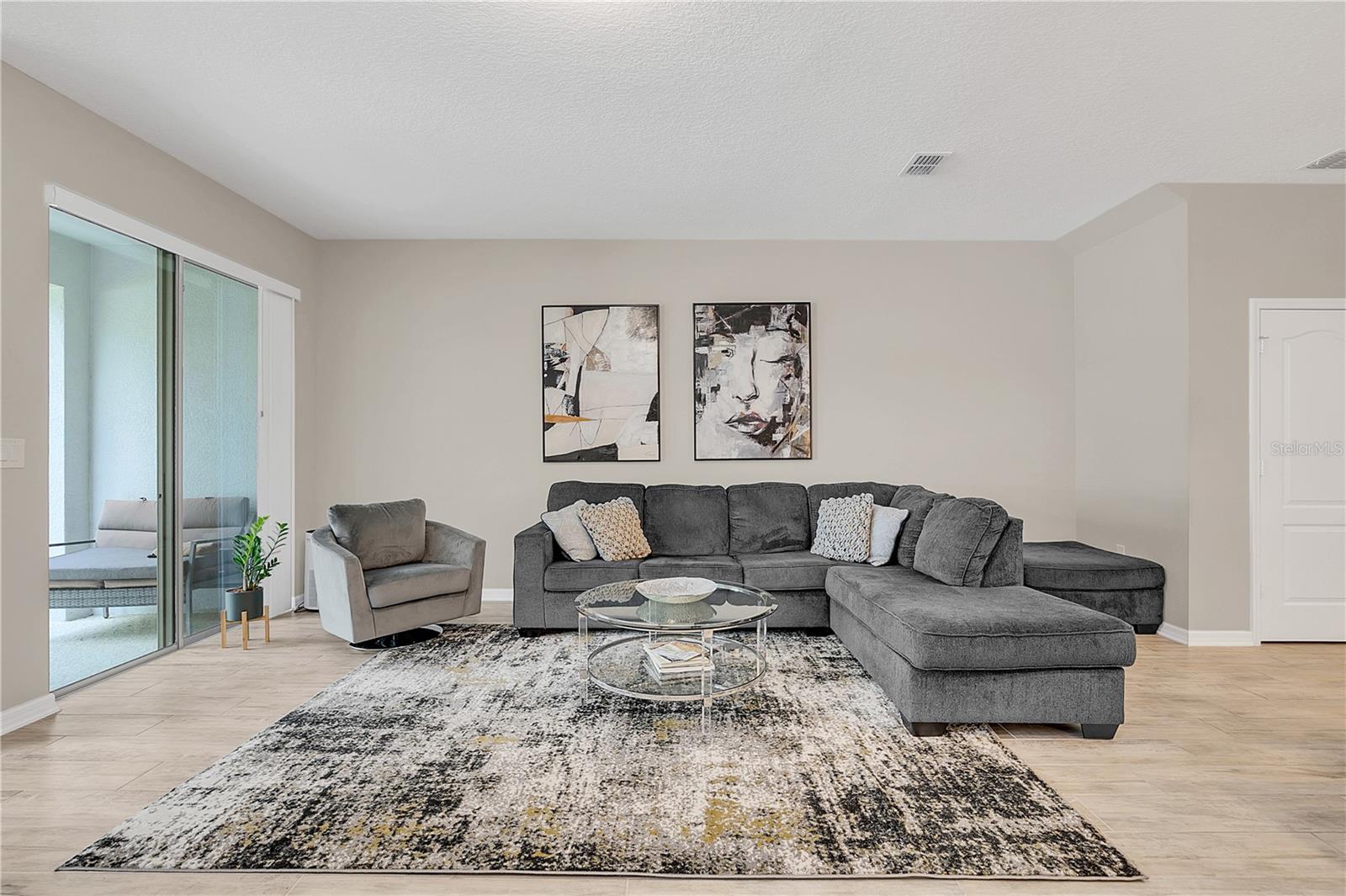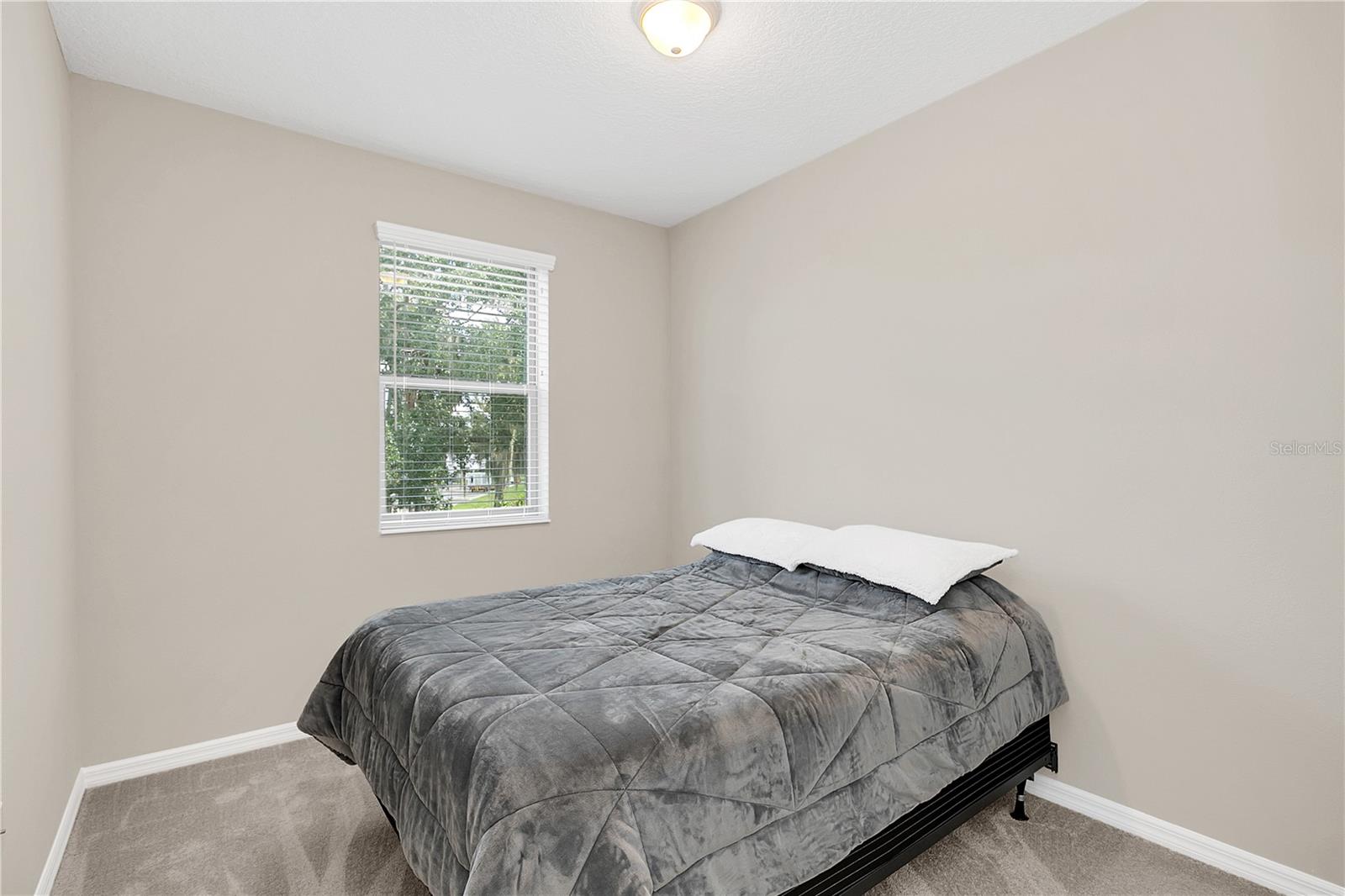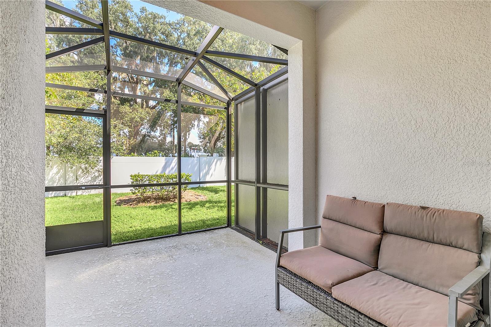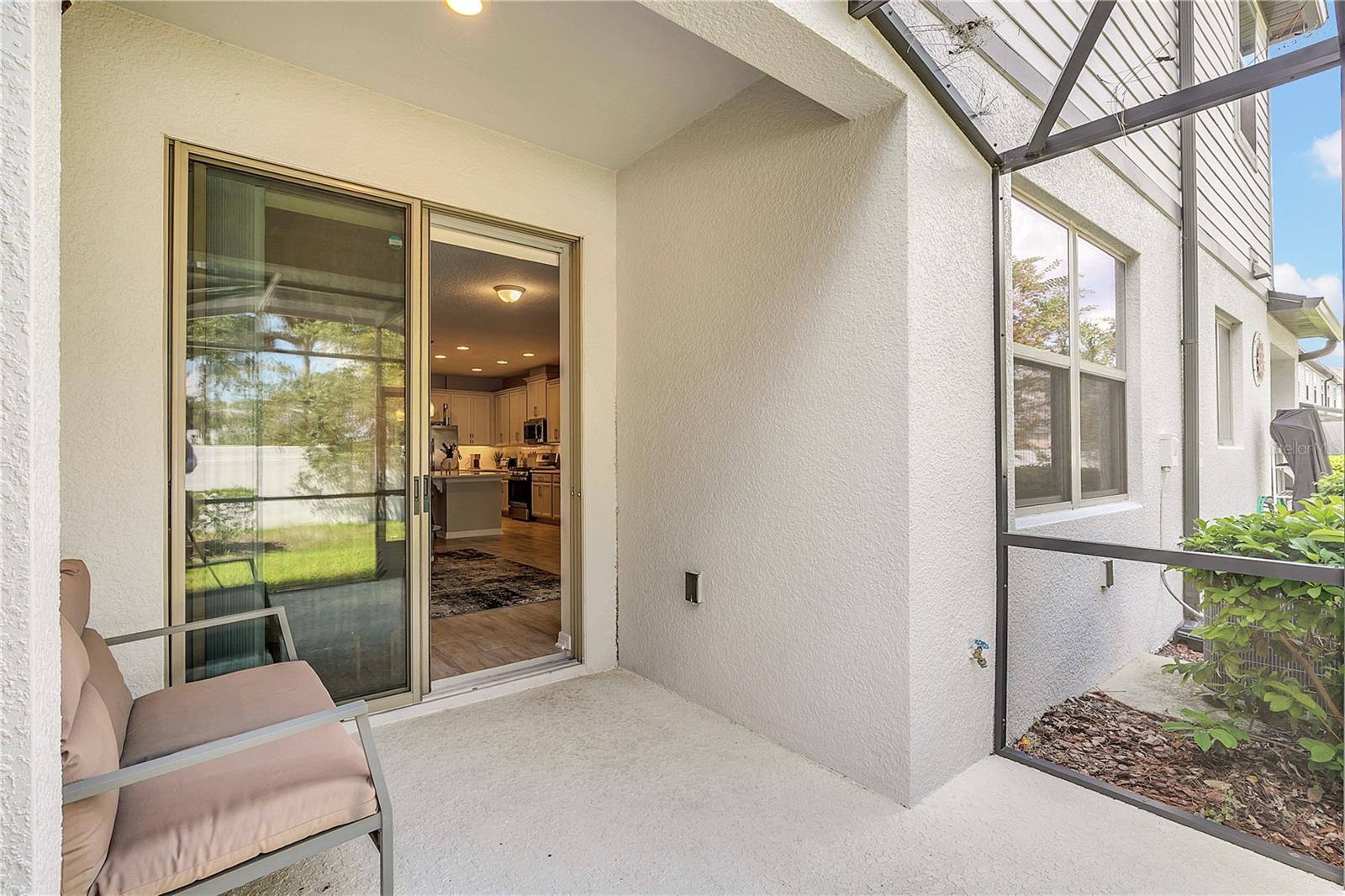 Immaculate, energy efficient townhouse in the back of the complex on a quiet dead-end street with extra parking across the street. This home looks new with nice upgrades and amenities. Gorgeous, light, bright and open floor plan that is tastefully decorated. Spacious kitchen has 42-inch gray colored cabinets with built-in lighting under the cabinets, crown molding, brushed polished door handles, quartz countertops and a large island designed to accommodate seating. All kitchen appliances are Stainless Steel and included. Refrigerator is side-by-side with ice and water in the door. The kitchen has a spacious pantry, vented microwave and tile backsplash. All walls are painted a light gray taupe color with white accents. The entire downstairs has a light-colored ceramic wood look flooring. The spacious owner suite has a nice-sized walk-in closet, dual sinks, and a separate tub and shower. Upstairs, there is an air-conditioned laundry area, and the washer and dryer are included. There is a nice loft area between the upstairs bedrooms. Modern recessed lighting throughout and fire prevention water sprinklers built into the volume knockdown ceilings, garage door opener with two controls, decor epoxy floor covering, a sliding glass door looks out onto the screened covered porch with no neighbors behind the home. The backyard is nicely landscaped and partially fenced. Brick paver driveway and entryway. There are blinds on all windows and the sliding glass door. The security-gated community offers a dog park, swimming pool and playground with a scenic fountain in the community pond. Low HOA fee, low power bill with lots of energy efficiencies built in including gas appliances and termite prevention system. Great schools and conveniently near Seminole Town Center, restaurants, the Orlando/Sanford airport, Interstate 4, the zoo, Sunrail, Amtrak station and downtown Sanford.