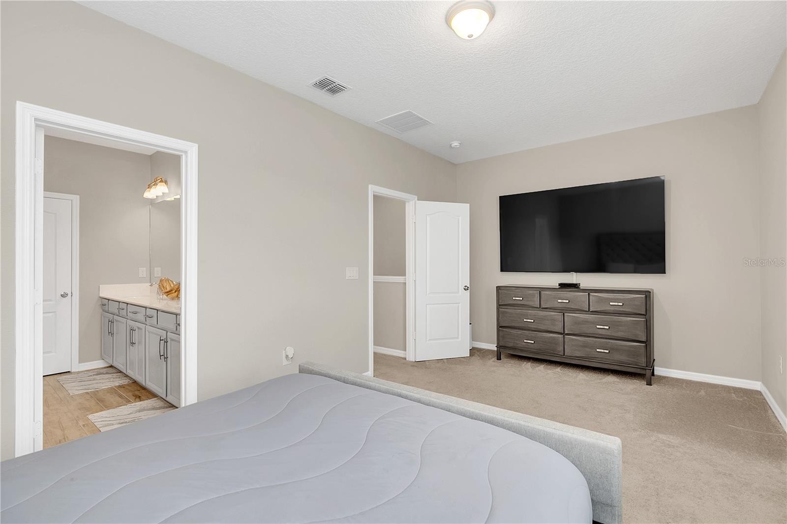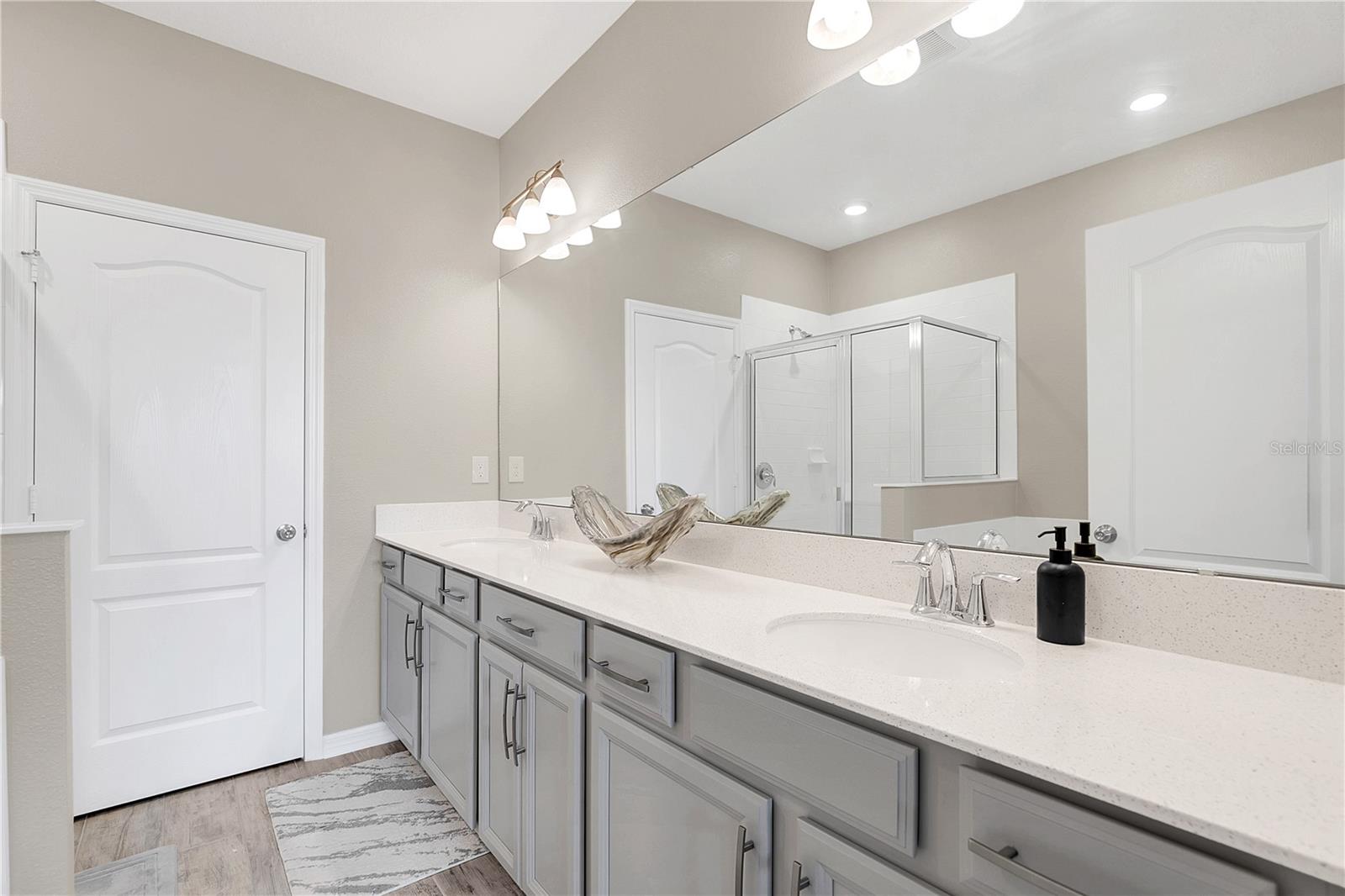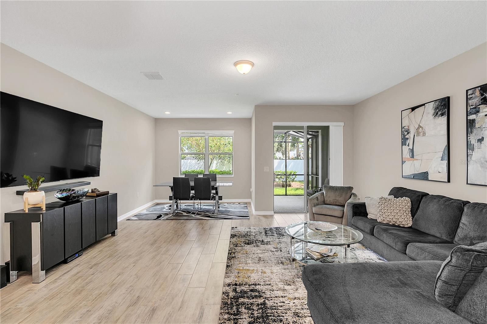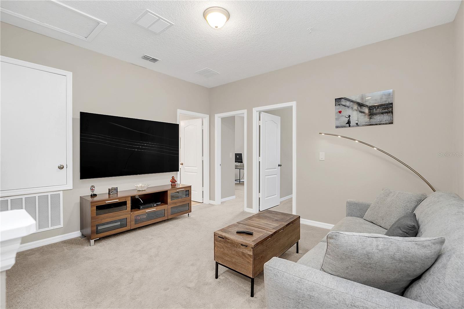 Immaculate, energy efficient townhouse in the back of the complex on a quiet dead-end street with extra parking across the street. This home looks new with nice upgrades and amenities. Gorgeous, light, bright and open floor plan that is tastefully decorated. Spacious kitchen has 42-inch gray colored cabinets with built-in lighting under the cabinets, crown molding, brushed polished door handles, quartz countertops and a large island designed to accommodate seating. All kitchen appliances are Stainless Steel and included. Refrigerator is side-by-side with ice and water in the door. The kitchen has a spacious pantry, vented microwave and tile backsplash. All walls are painted a light gray taupe color with white accents. The entire downstairs has a light-colored ceramic wood look flooring. The spacious owner suite has a nice-sized walk-in closet, dual sinks, and a separate tub and shower. Upstairs, there is an air-conditioned laundry area, and the washer and dryer are included. There is a nice loft area between the upstairs bedrooms. Modern recessed lighting throughout and fire prevention water sprinklers built into the volume knockdown ceilings, garage door opener with two controls, decor epoxy floor covering, a sliding glass door looks out onto the screened covered porch with no neighbors behind the home. The backyard is nicely landscaped and partially fenced. Brick paver driveway and entryway. There are blinds on all windows and the sliding glass door. The security-gated community offers a dog park, swimming pool and playground with a scenic fountain in the community pond. Low HOA fee, low power bill with lots of energy efficiencies built in including gas appliances and termite prevention system. Great schools and conveniently near Seminole Town Center, restaurants, the Orlando/Sanford airport, Interstate 4, the zoo, Sunrail, Amtrak station and downtown Sanford.