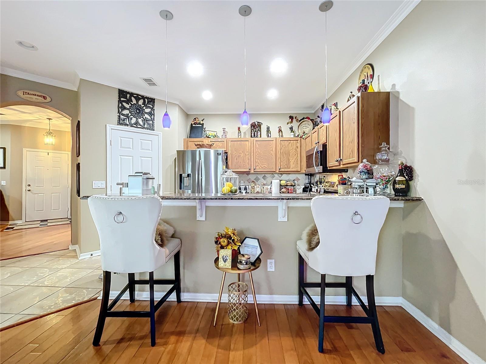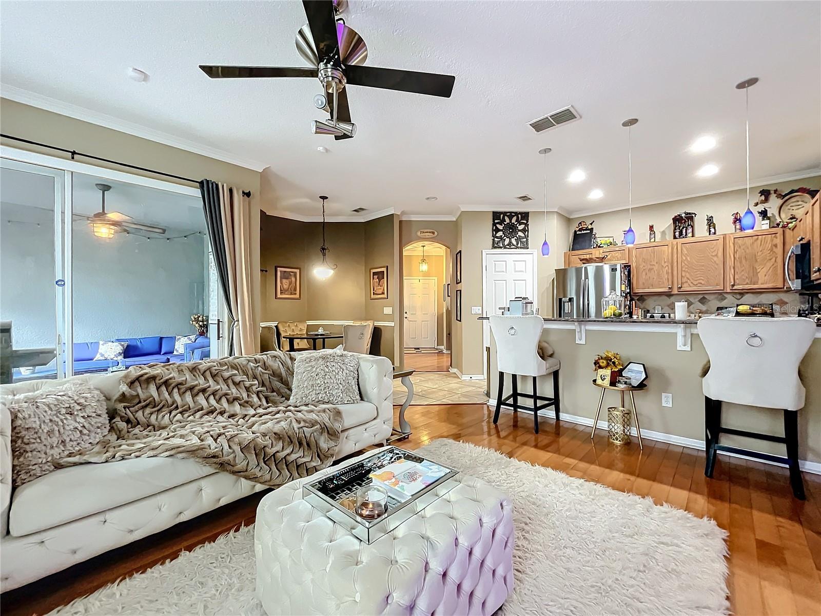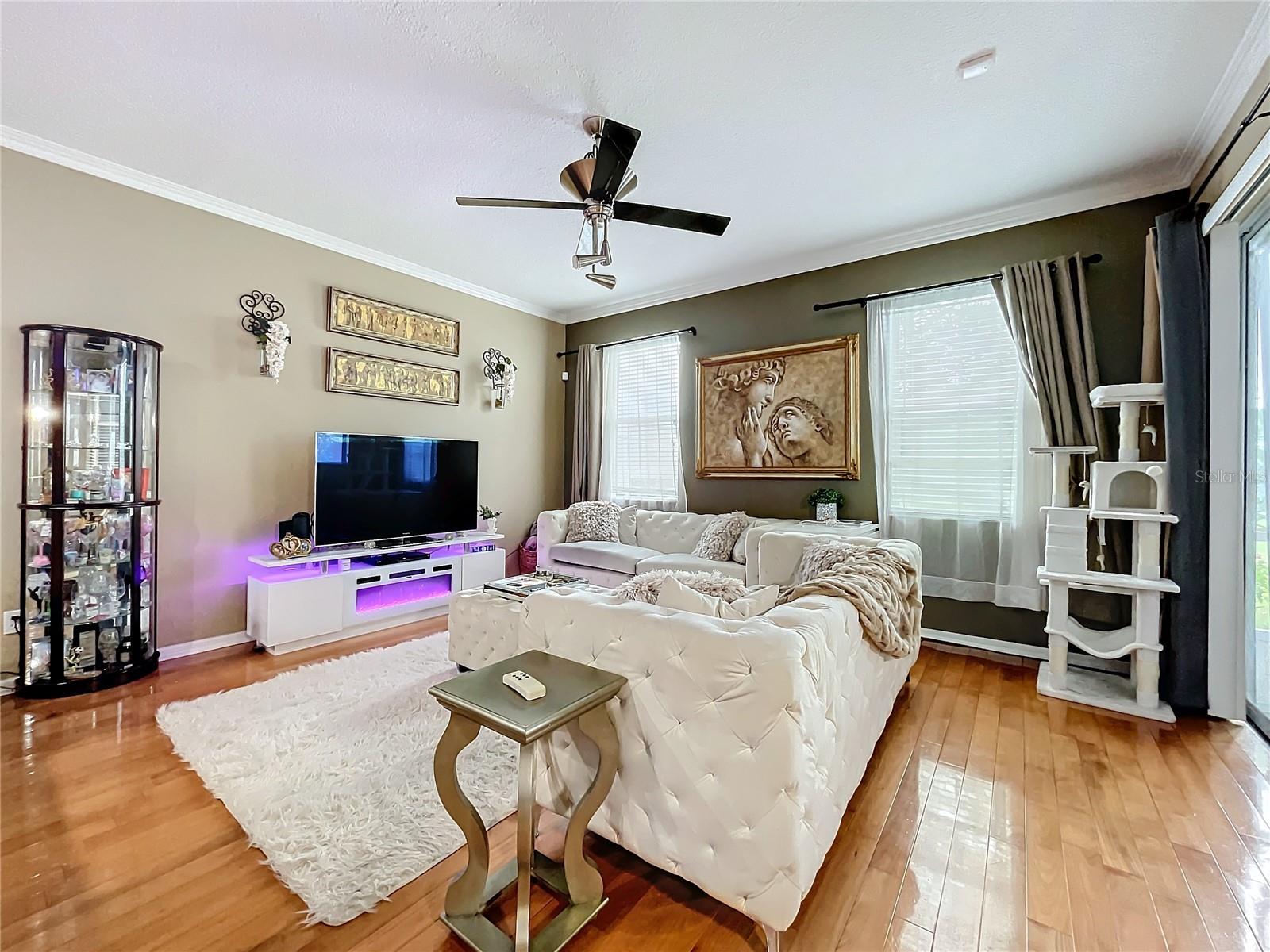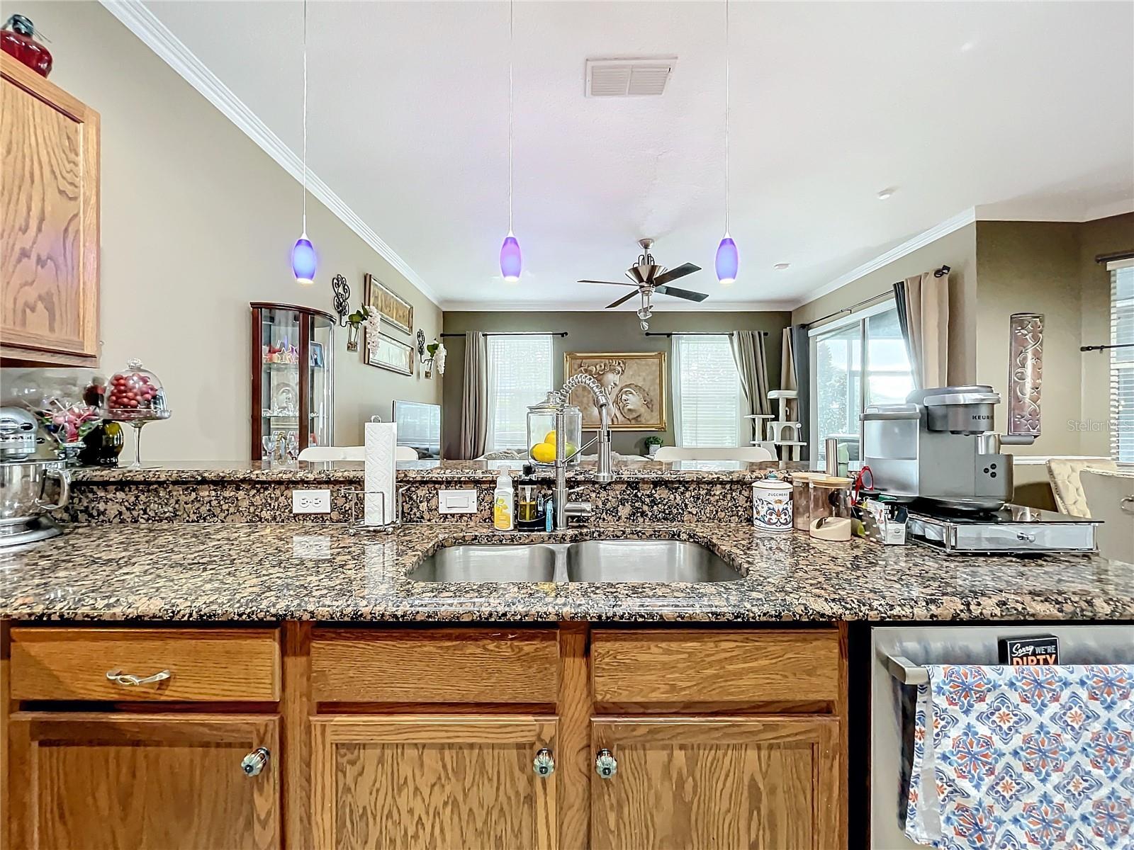**CHECK OUT THE 3D VIRTUAL TOUR** Nestled in the sought-after GREYSTONE subdivision of Sanford, this STUNNING 3-bedroom, 2.5-bathroom home spans an impressive 1,914 square feet, SHOWCASING $50,000 IN EXQUISITE UPGRADES throughout. As you enter, you are greeted by an inviting open floor plan, seamlessly connecting the elegant dining and living rooms with beautiful WOOD FLOORING. The REMODELED KITCHEN features gorgeous GRANITE COUNTERTOPS, complemented by STAINLESS-STEEL appliances and a walk-in pantry—perfect for culinary enthusiasts. Step through the sliding glass doors onto the serene, screened lanai that offers breathtaking water views, providing an ideal backdrop for relaxation and tranquility. Before heading upstairs there is a BEAUTIFULLY REMODELED HALF BATH and a LARGE LAUNDRY ROOM leading to the TWO-CAR GARAGE, At the top of the stairs there is a BUILT-IN-DESK ideal for home office or a child's homework/arts and crafts area with plenty of storage. The BAMBOO FLOORING leads you to a spacious primary bedroom with a view of the water and a large WALK IN CLOSET, complete with DUAL, SEE-THROUGH VANITY SINKS which helps light up underneath, a large stand-up shower, and an oversized GARDEN TUB, with sizable walk-in closets. Each of the spare bedrooms have built in closets and plenty of room for a home office, gym, guest bedrooms and more. With an ELEGANT DECOR, ACCENTS and CROWN MOULDING throughout. 1767 Travertine is perfect for the first time buyer just starting a family, an expanding family needing more space. Or a retiree looking for a quiet gated community with shopping close by. Greystone in Sanford Fl offers all that and more. **CALL TODAY AND SETUP A TOUR**