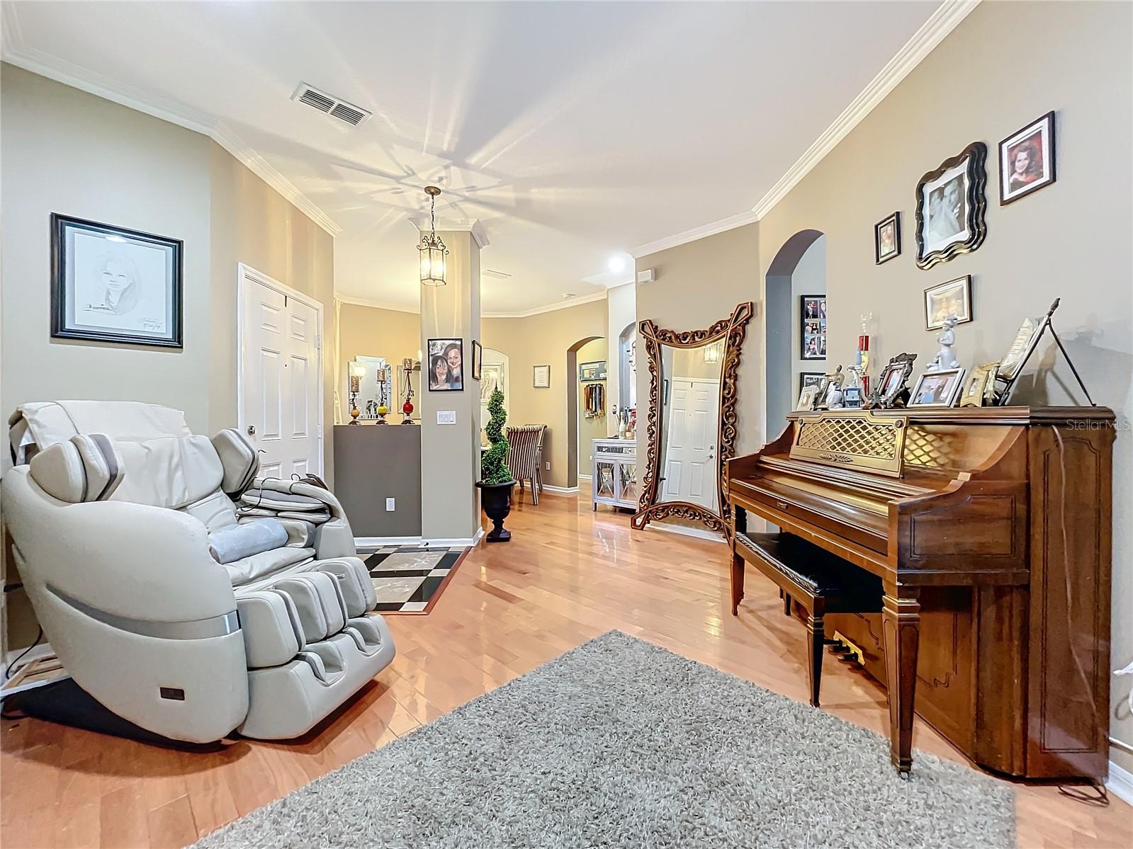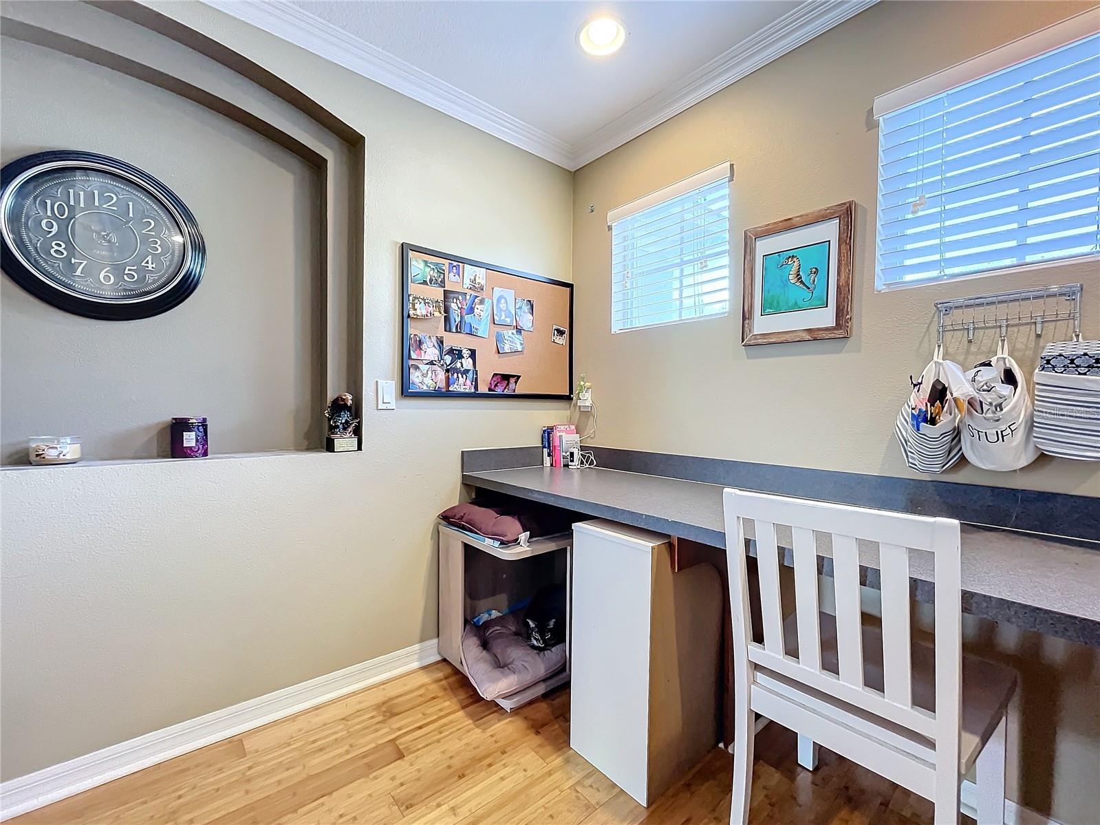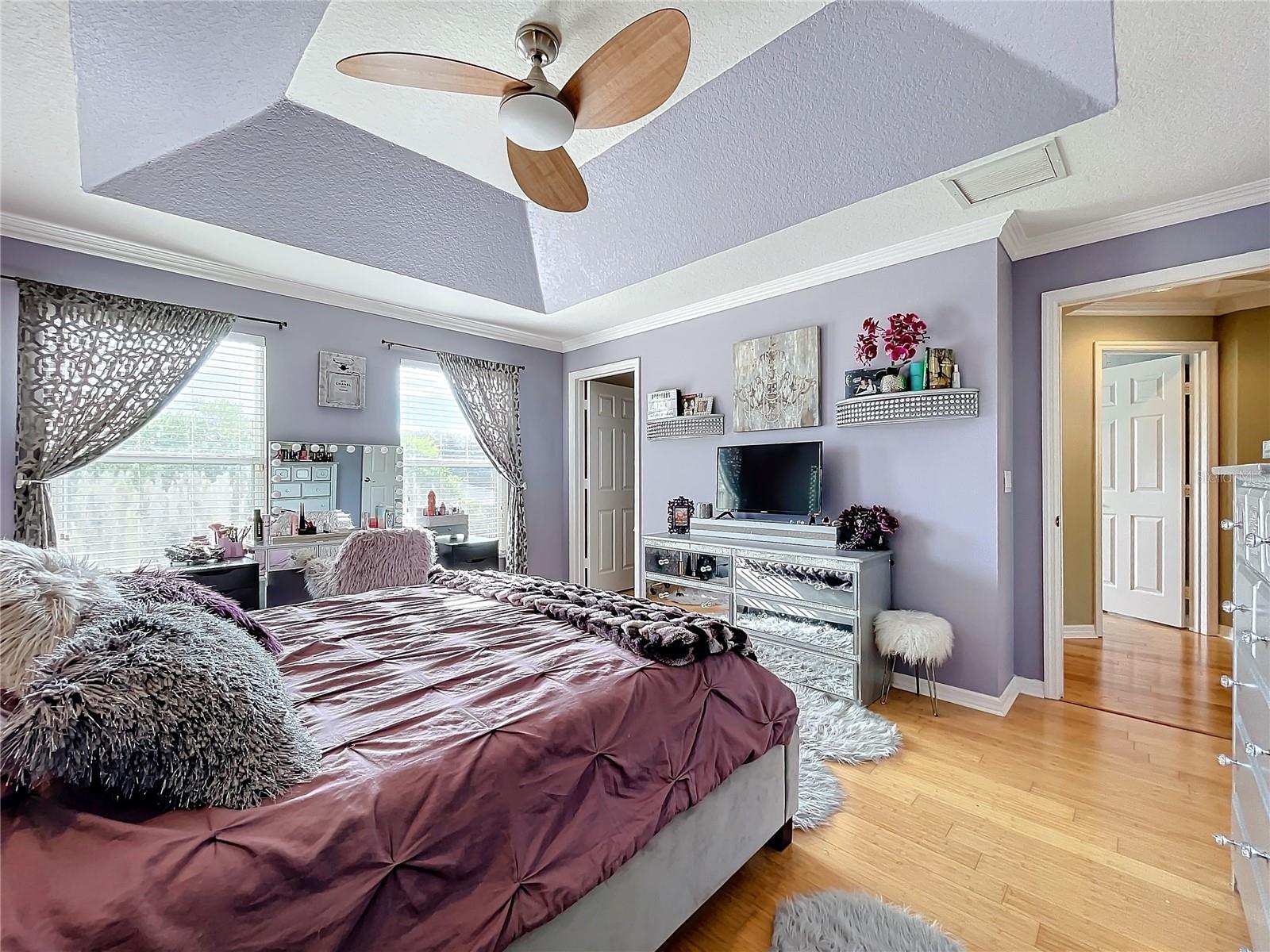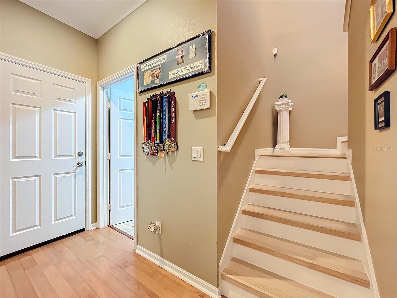 **CHECK OUT THE 3D VIRTUAL TOUR** Nestled in the sought-after GREYSTONE subdivision of Sanford, this STUNNING 3-bedroom, 2.5-bathroom home spans an impressive 1,914 square feet, SHOWCASING $50,000 IN EXQUISITE UPGRADES throughout. As you enter, you are greeted by an inviting open floor plan, seamlessly connecting the elegant dining and living rooms with beautiful WOOD FLOORING. The REMODELED KITCHEN features gorgeous GRANITE COUNTERTOPS, complemented by STAINLESS-STEEL appliances and a walk-in pantry—perfect for culinary enthusiasts. Step through the sliding glass doors onto the serene, screened lanai that offers breathtaking water views, providing an ideal backdrop for relaxation and tranquility. Before heading upstairs there is a BEAUTIFULLY REMODELED HALF BATH and a LARGE LAUNDRY ROOM leading to the TWO-CAR GARAGE, At the top of the stairs there is a BUILT-IN-DESK ideal for home office or a child's homework/arts and crafts area with plenty of storage. The BAMBOO FLOORING leads you to a spacious primary bedroom with a view of the water and a large WALK IN CLOSET, complete with DUAL, SEE-THROUGH VANITY SINKS which helps light up underneath, a large stand-up shower, and an oversized GARDEN TUB, with sizable walk-in closets. Each of the spare bedrooms have built in closets and plenty of room for a home office, gym, guest bedrooms and more. With an ELEGANT DECOR, ACCENTS and CROWN MOULDING throughout. 1767 Travertine is perfect for the first time buyer just starting a family, an expanding family needing more space. Or a retiree looking for a quiet gated community with shopping close by. Greystone in Sanford Fl offers all that and more. **CALL TODAY AND SETUP A TOUR**