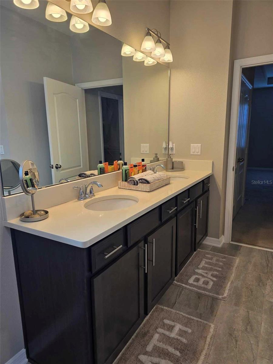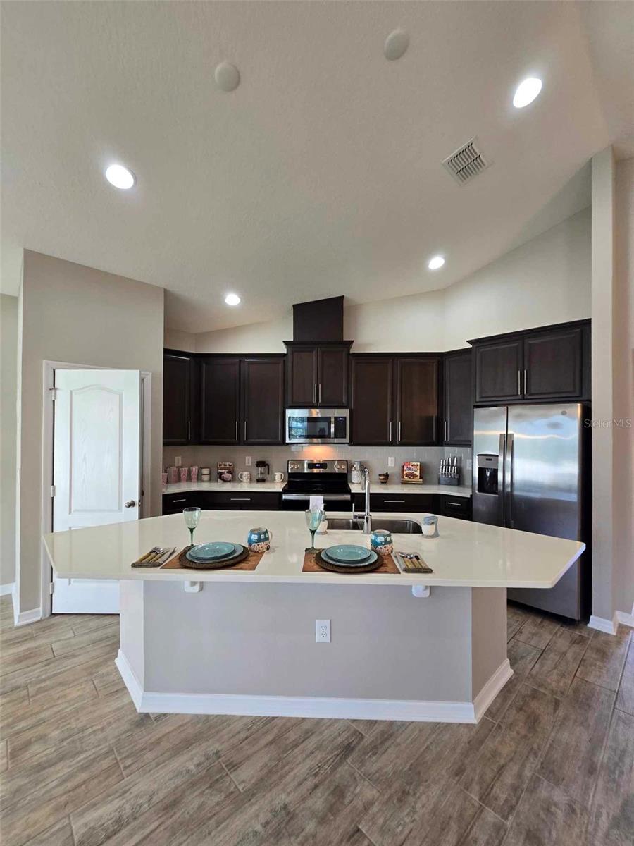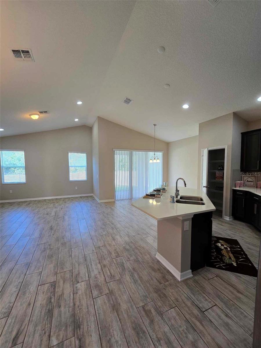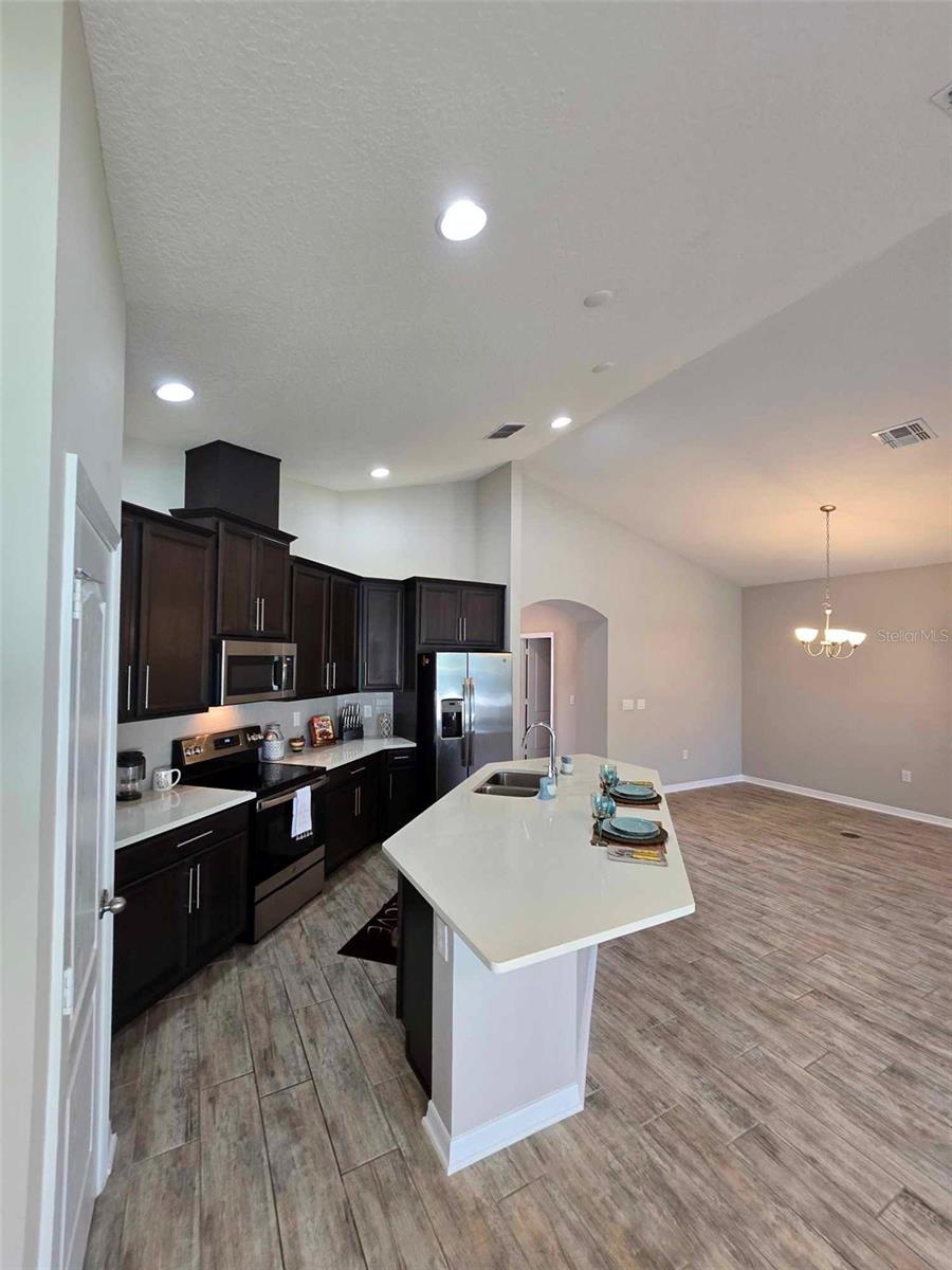 YOUR OWN PLACE TO CALL HOME. This stunning 3-bedroom, 2-bath, 2-car garage home offers the perfect blend of style and comfort and is located in a gated community of Cadence Park in Sanford, Florida. Guests and family alike will appreciate the privacy this floorplan brings with two bedrooms and a full bath upfront and the master primary bedroom suite in the back. This home has high ceilings in the main living areas. Delight in the open concept kitchen with 42" slate cherry wood cabinets, crown molding, modern cabinet hardware, quartz counter tops, tiled backsplash, kitchen island with an undermount sink and modern faucet. Stainless steel appliances. Kitchen pantry closet with an abundance of space. Enjoy your meals in your kitchen nook area or just relax at your kitchen island which overlooks the great room, keeping everyone in the mix when entertaining. The main living areas boast wood-look ceramic tile. Step out onto the extended paver brick covered lanai from the sliding doors off the kitchen nook and feel the serenity of the over-sized fenced back yard. The master bedroom boasts a trey ceiling for additional volume. 2 large windows that bring in lot of natural light. There are two closets in the master bedroom. One-oversized walk-in closet with lots of storage and built in shoe/purse racks. The second closet is built in with lots of space for hanging your clothes. Both bathrooms feature double vanity sinks, Silestone counter tops, oversized linen closets, a window. The master bath has a nice walk-in shower, and the 2nd bath has the shower/tub combination. Inside utility room with washer & dryer. Utility sink in the garage. This home is Energy Star 3.1 certified. Rainbird sprinkler system. Close to shopping and restaurants. Easy access to the 417 Greenway. Orlando International Airport & Orlando-Sanford Airport nearby. Contact us today to schedule a Tour!!!