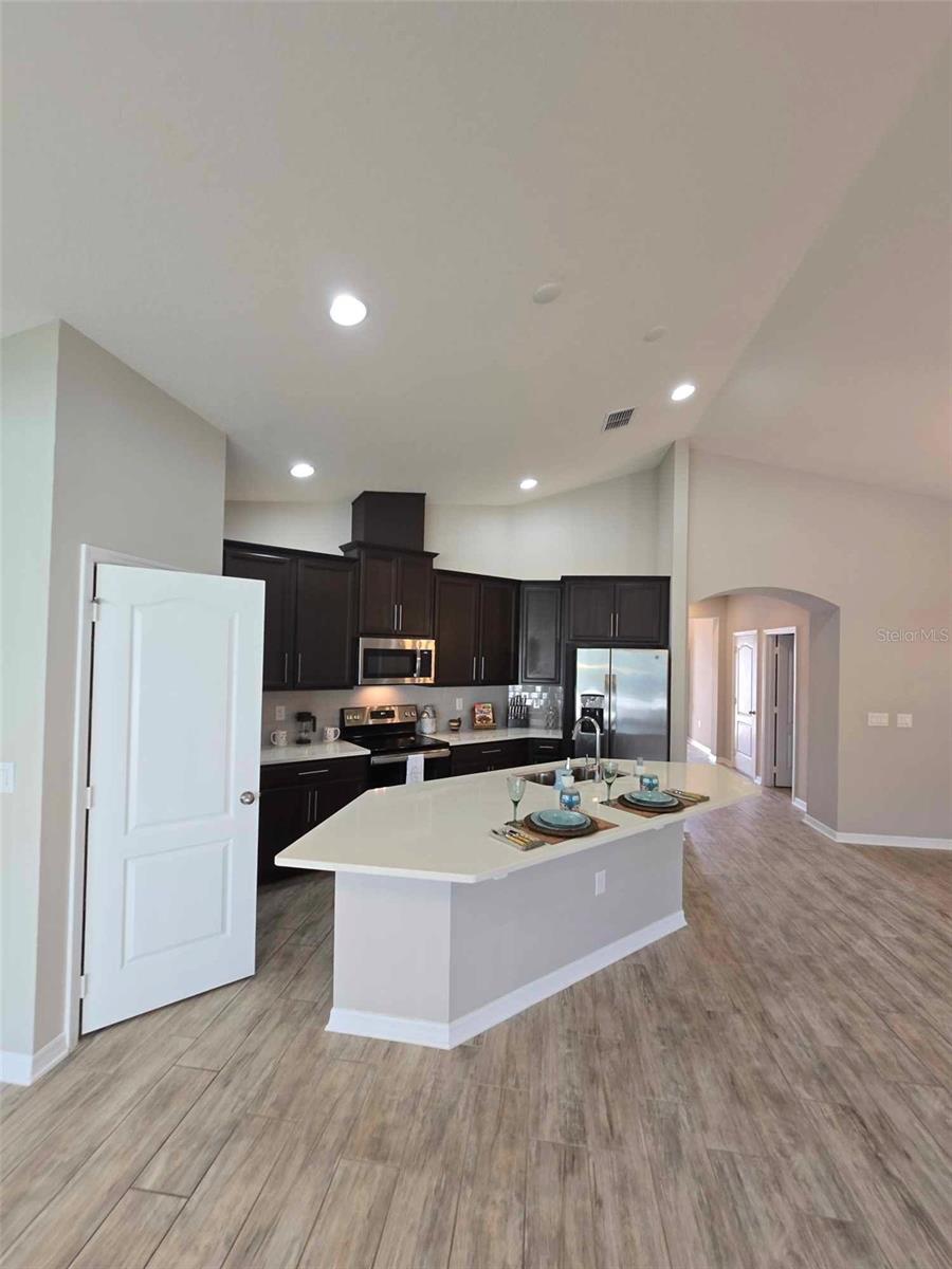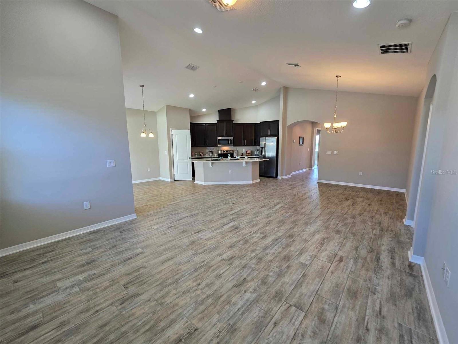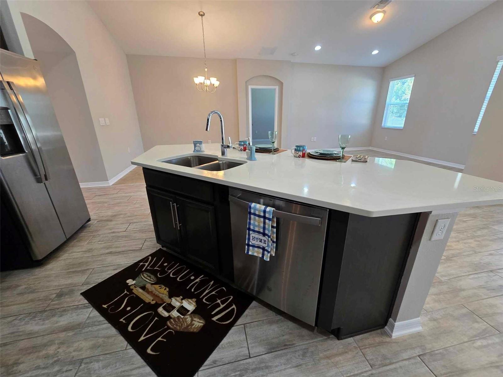 YOUR OWN PLACE TO CALL HOME. This stunning 3-bedroom, 2-bath, 2-car garage home offers the perfect blend of style and comfort and is located in a gated community of Cadence Park in Sanford, Florida. Guests and family alike will appreciate the privacy this floorplan brings with two bedrooms and a full bath upfront and the master primary bedroom suite in the back. This home has high ceilings in the main living areas. Delight in the open concept kitchen with 42" slate cherry wood cabinets, crown molding, modern cabinet hardware, quartz counter tops, tiled backsplash, kitchen island with an undermount sink and modern faucet. Stainless steel appliances. Kitchen pantry closet with an abundance of space. Enjoy your meals in your kitchen nook area or just relax at your kitchen island which overlooks the great room, keeping everyone in the mix when entertaining. The main living areas boast wood-look ceramic tile. Step out onto the extended paver brick covered lanai from the sliding doors off the kitchen nook and feel the serenity of the over-sized fenced back yard. The master bedroom boasts a trey ceiling for additional volume. 2 large windows that bring in lot of natural light. There are two closets in the master bedroom. One-oversized walk-in closet with lots of storage and built in shoe/purse racks. The second closet is built in with lots of space for hanging your clothes. Both bathrooms feature double vanity sinks, Silestone counter tops, oversized linen closets, a window. The master bath has a nice walk-in shower, and the 2nd bath has the shower/tub combination. Inside utility room with washer & dryer. Utility sink in the garage. This home is Energy Star 3.1 certified. Rainbird sprinkler system. Close to shopping and restaurants. Easy access to the 417 Greenway. Orlando International Airport & Orlando-Sanford Airport nearby. Contact us today to schedule a Tour!!!