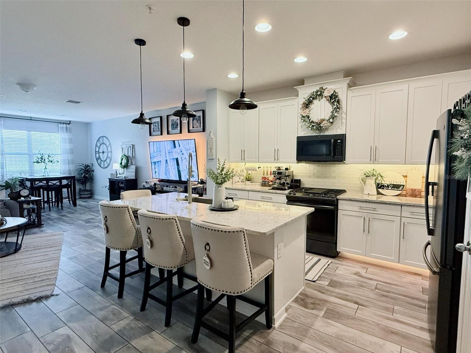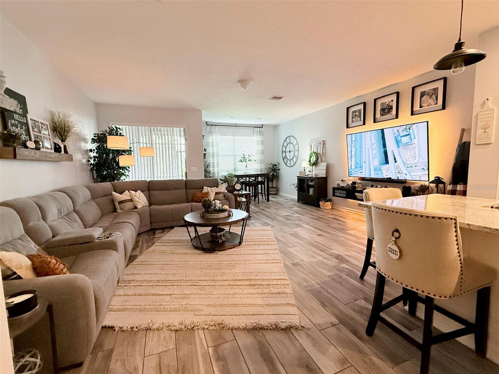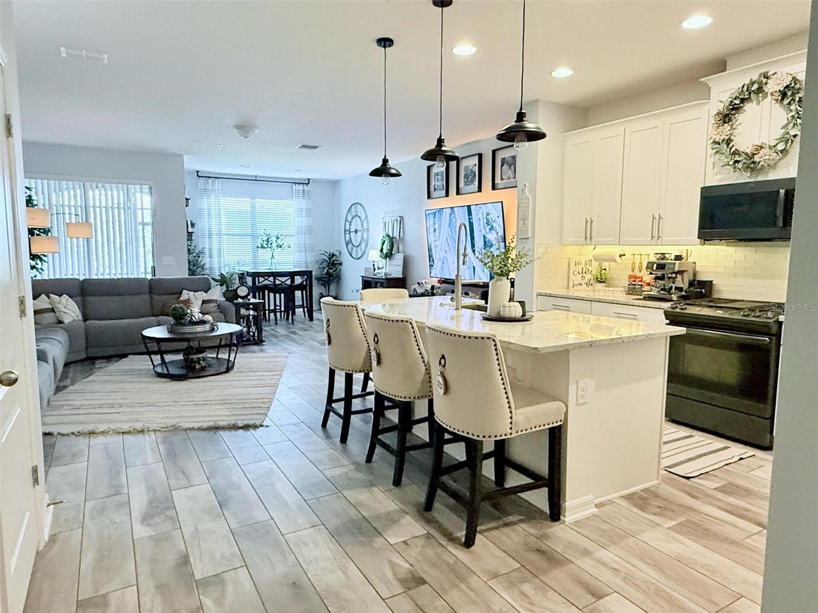Experience contemporary living in this meticulously maintained townhome. Built less than five years ago, this spacious 1,839 square foot home with 9’4 ceiling’s offers a modern open floor plan that seamlessly blends style and functionality. Step inside to find luxurious touches such as newly installed luxury vinyl plank flooring throughout the stairs and second floor, ensuring durability and ease of maintenance. The chef’s kitchen stands out with a large island, granite countertops, and top-of-the-line gas GE slate dark appliances, ideal for gourmet cooking. Upstairs, a flexible loft space offers room for a home office or a cozy media room. Additional features include a tankless gas water heater and enhanced energy efficiency, smart home capabilities, and EV readiness, with a reliable central HVAC system. A large screened lanai extends your living space to the outdoors, providing a serene spot for relaxation or entertaining.