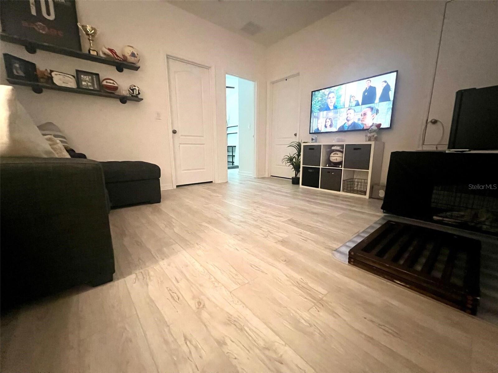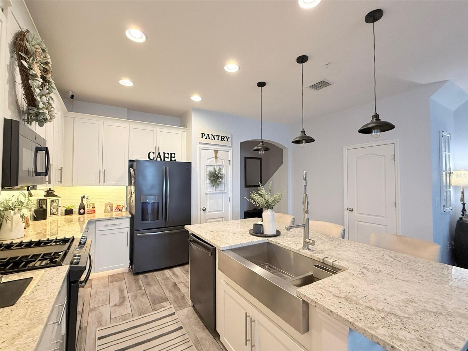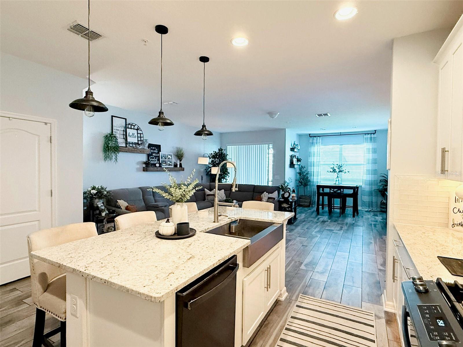 Experience contemporary living in this meticulously maintained townhome. Built less than five years ago, this spacious 1,839 square foot home with 9’4 ceiling’s offers a modern open floor plan that seamlessly blends style and functionality. Step inside to find luxurious touches such as newly installed luxury vinyl plank flooring throughout the stairs and second floor, ensuring durability and ease of maintenance. The chef’s kitchen stands out with a large island, granite countertops, and top-of-the-line gas GE slate dark appliances, ideal for gourmet cooking. Upstairs, a flexible loft space offers room for a home office or a cozy media room. Additional features include a tankless gas water heater and enhanced energy efficiency, smart home capabilities, and EV readiness, with a reliable central HVAC system. A large screened lanai extends your living space to the outdoors, providing a serene spot for relaxation or entertaining.