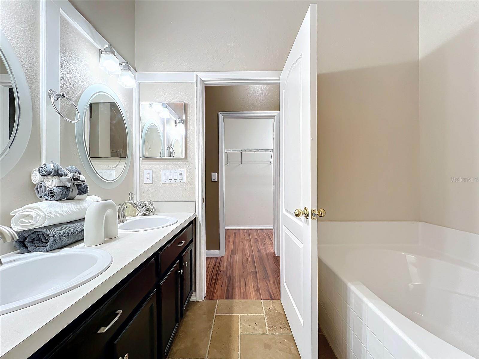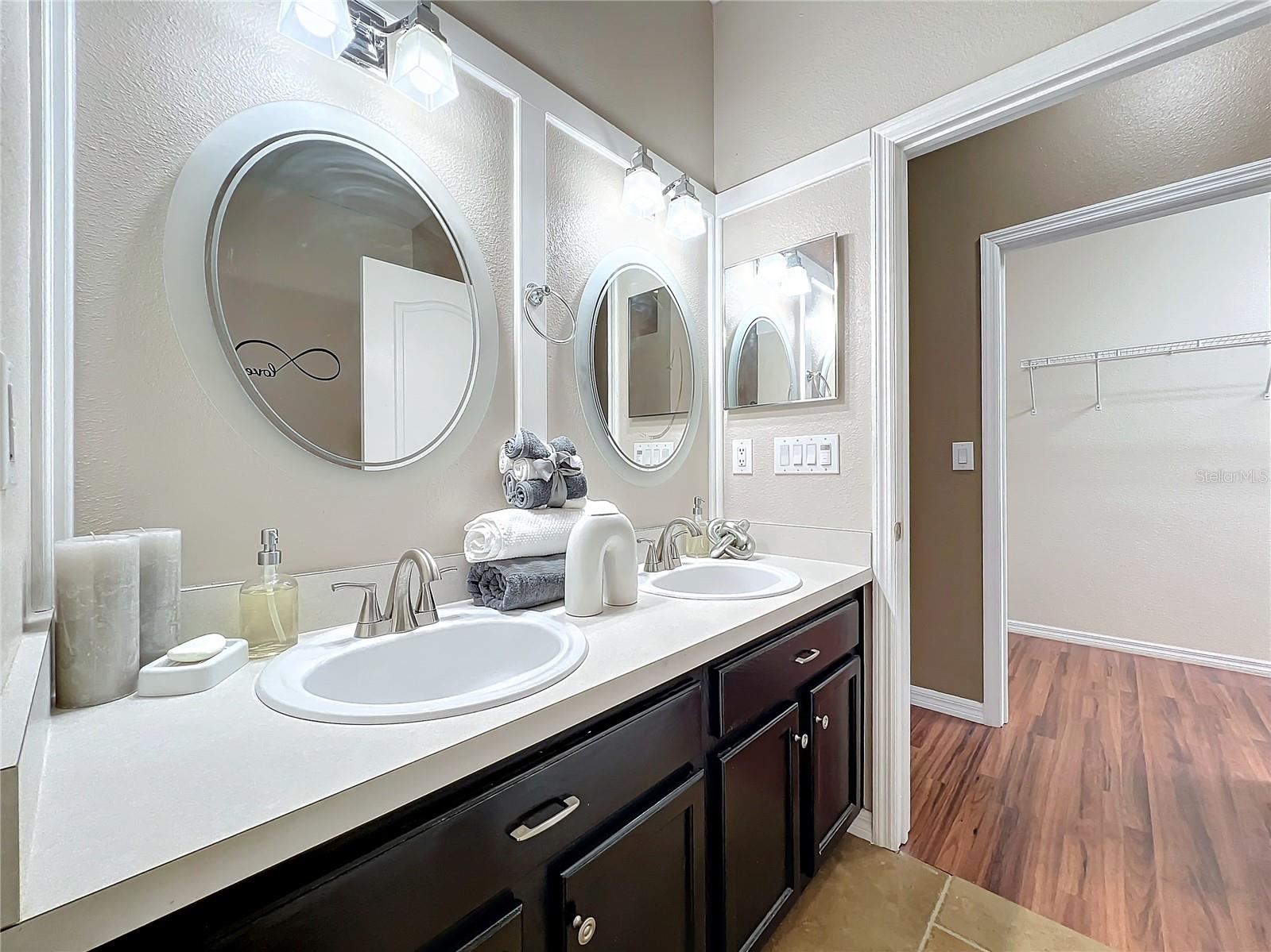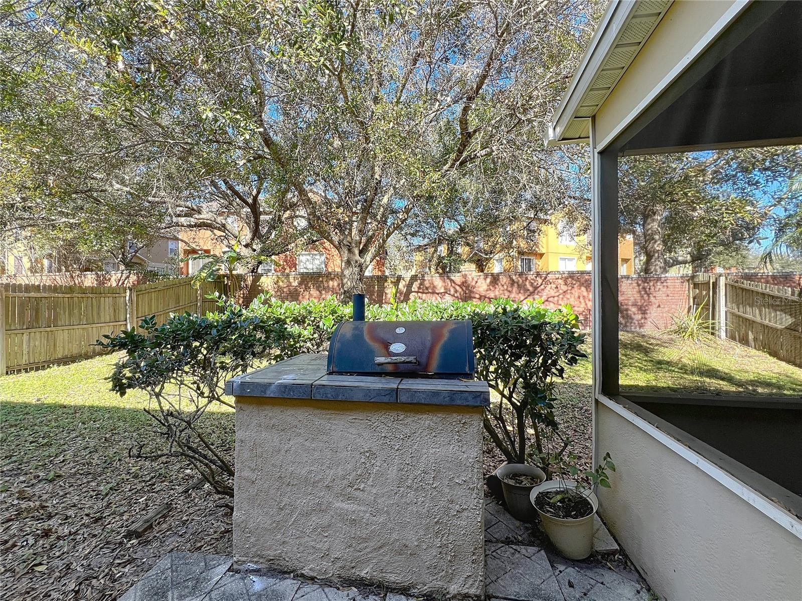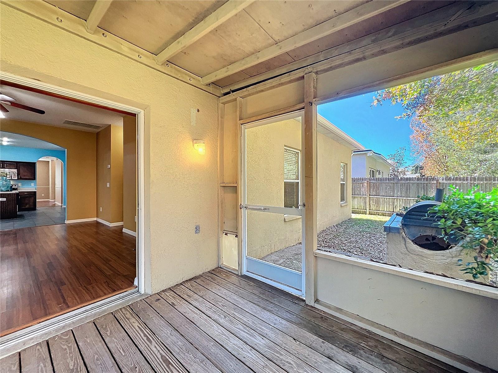 Come see this beautiful home! Four Bedrooms, two bathroom home in the gated community of Baker's Crossing! This home features beautiful laminate wood flooring and tile throughout! The spacious kitchen includes updated cabinetry, Stainless Steel appliances, a pantry, and an island! The master bedroom includes a walk in closet, dual vanities with travertine flooring! Enjoy the fenced-in backyard from your own covered patio! This house is perfect for entertaining friends and family with an outside built-in grill. The community features both a pool and playground, and conveniently located near 417, the Sun Rail Station, and Lake Mary Blvd - this gorgeous home will not last last!