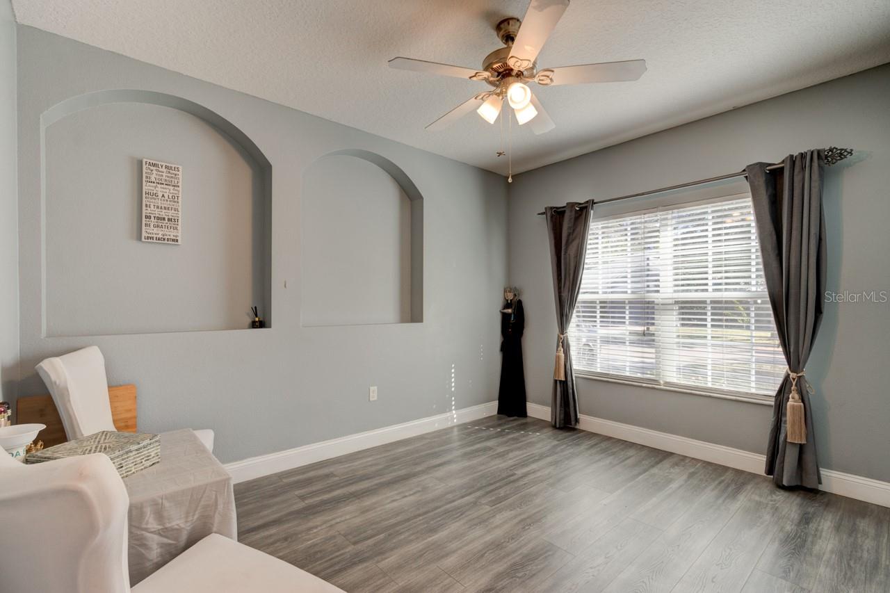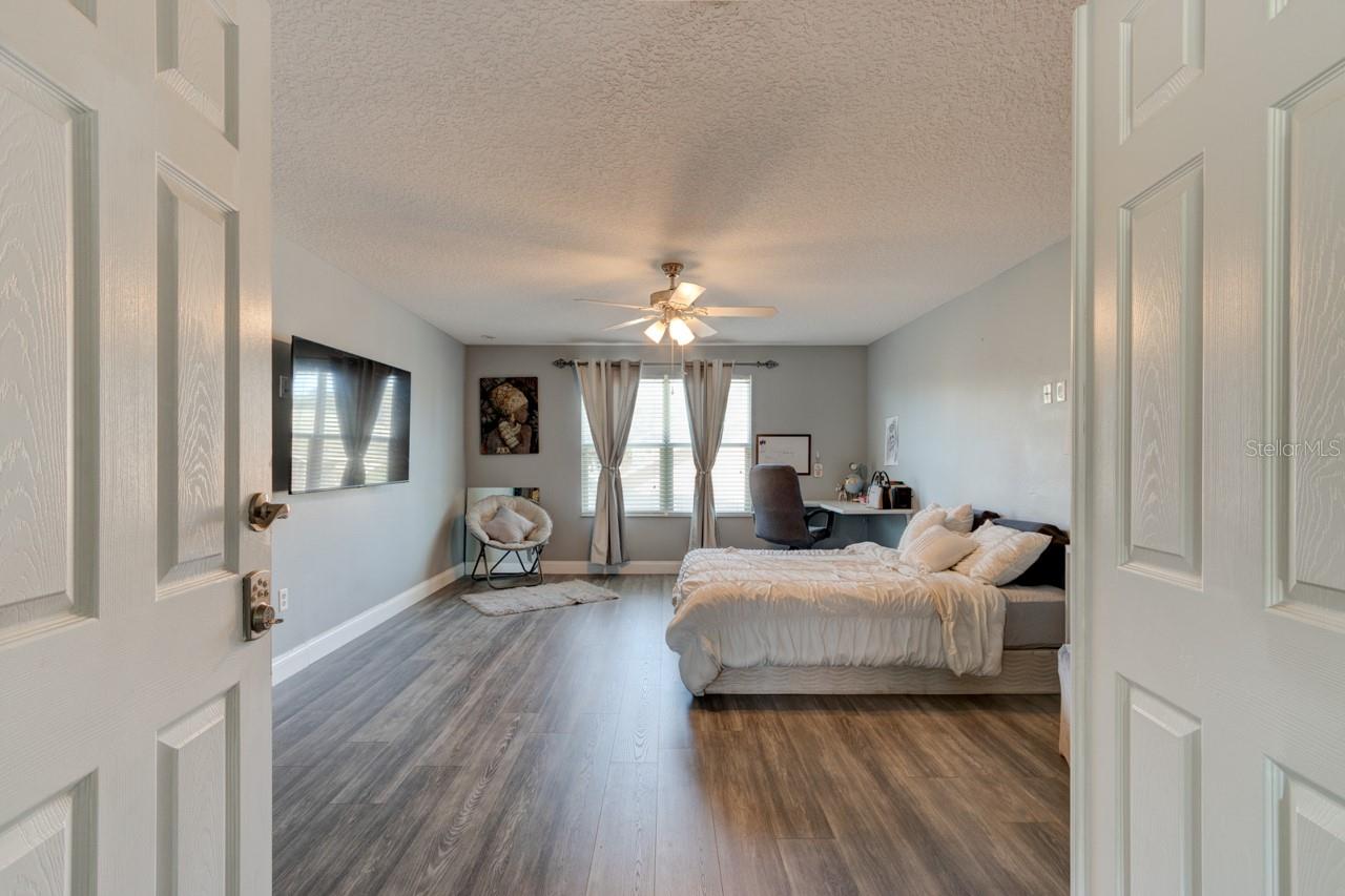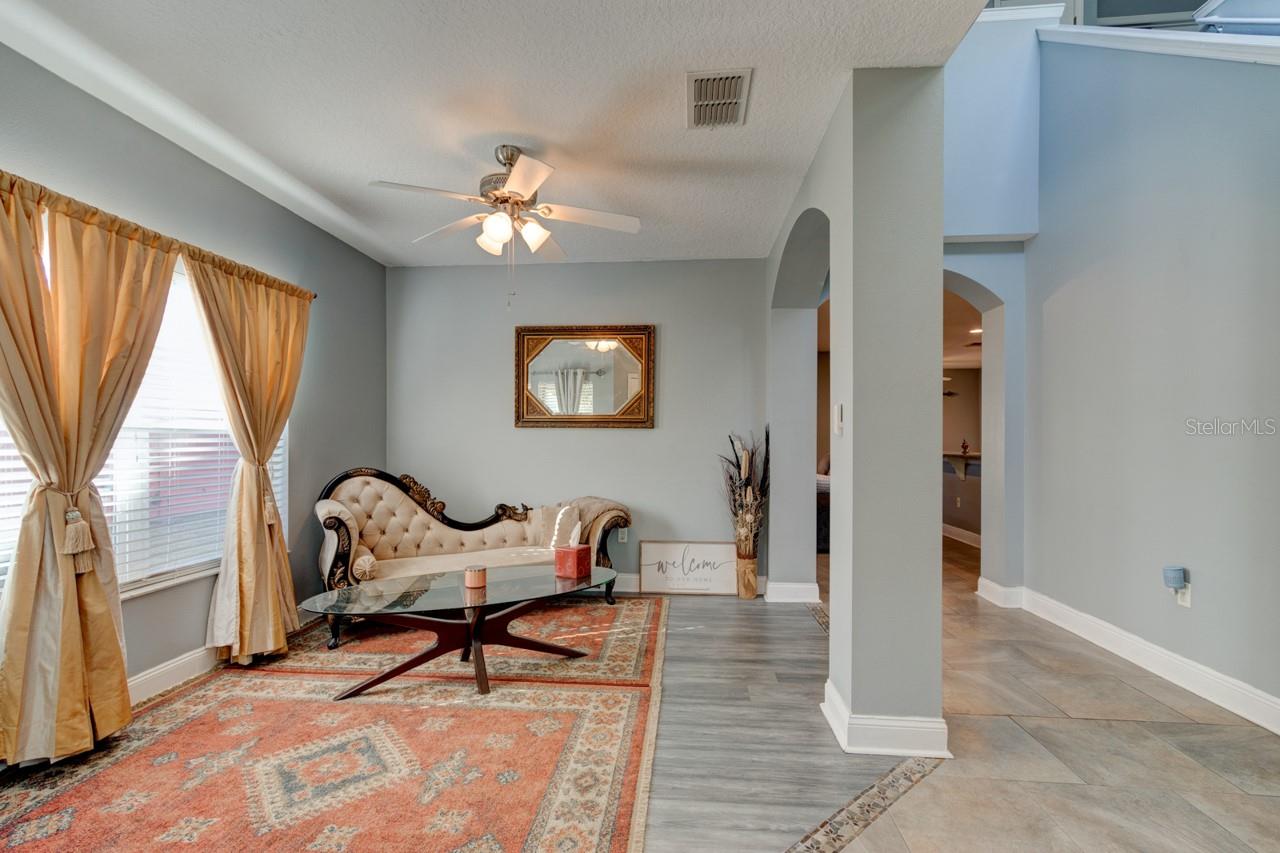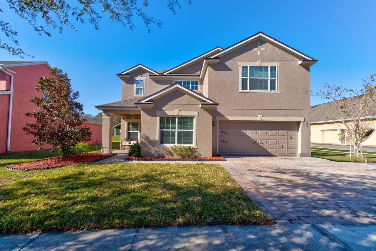 Welcome home to this spacious two-story, 6-bedroom, 4-bathroom home that offers a flexible and functional layout, perfect for modern living. The home features a formal living room and dining area, as well as a cozy family room, providing ample space for entertaining and everyday living. A den or study adds versatility, ideal for a home office or quiet retreat. The downstairs includes a room and bathroom, making it perfect for a separate suite with its own privacy, and could easily accommodate guests or extended family. The large screened-in patio, with beautiful paver flooring, extends your living space outdoors, providing a great spot for relaxation or entertaining. The kitchen includes stainless steel appliances and ample counter top space.Luxury vinyl flooring runs throughout the main areas, adding style and durability. Roof 2019 and double pane windows throughout the house. The master bedroom is a luxurious retreat, featuring double doors that lead into the spacious room. Located upstairs, it offers privacy and comfort, with ample space for a king-sized bed and additional furniture. The master suite includes a large walk-in closet and a well-appointed en-suite bathroom with dual vanities.The remaining four bedrooms and two bathrooms are also located upstairs, offering plenty of space for family members or guests. One of the bathrooms is a convenient Jack-and-Jill style, connecting two of the bedrooms, making it ideal for shared use. The other bathroom serves the remaining bedrooms, ensuring ample privacy and functionality for everyone. These upstairs rooms are well-sized and versatile, perfect for bedrooms, home offices, or hobby spaces, while the layout promotes easy access to the common areas of the home. All appliances and window treatments are included, offering a move-in ready experience. The garage has been converted into a media room but can be easily reconverted back into a garage if desired. This home is conveniently located in a sought after gated community of Sanford, Florida, with easy access to major roads like SR 417 and 17-92, making it a prime location for commuting and nearby amenities.