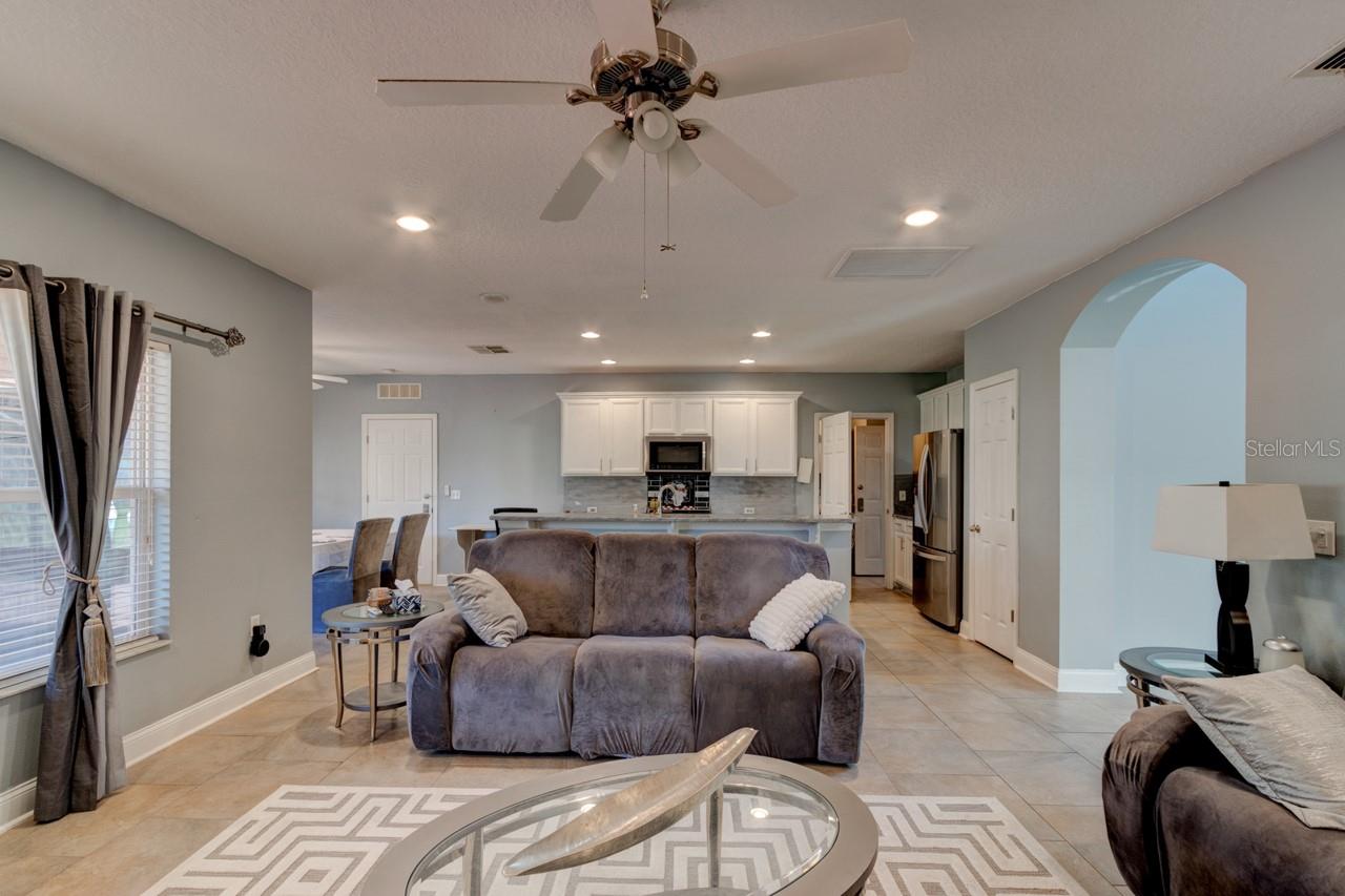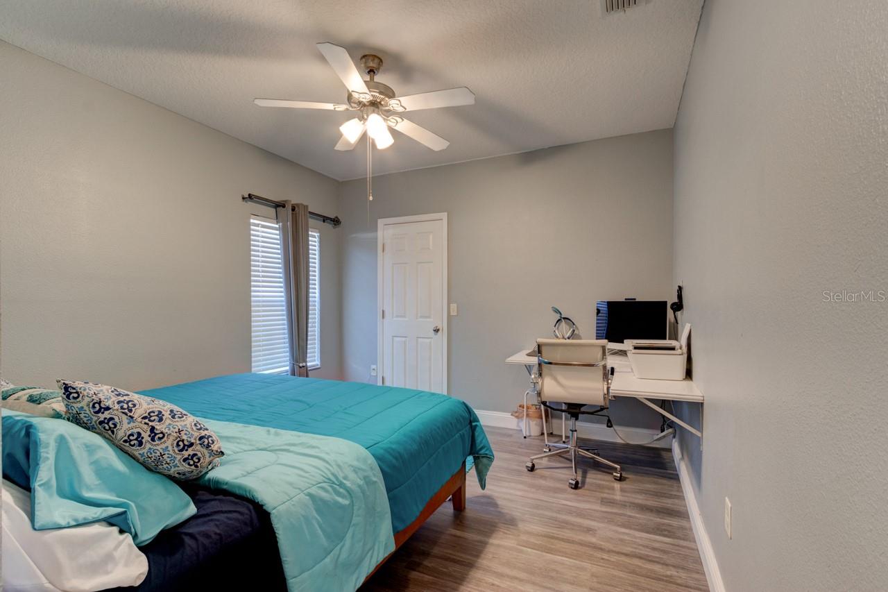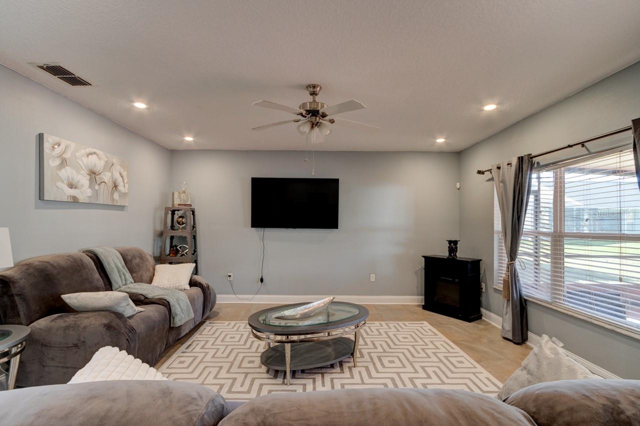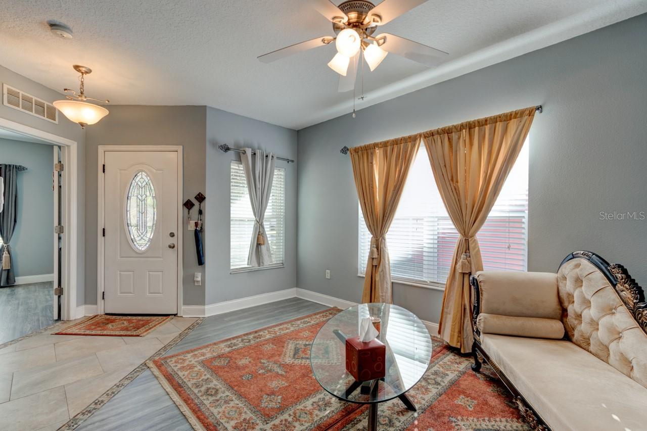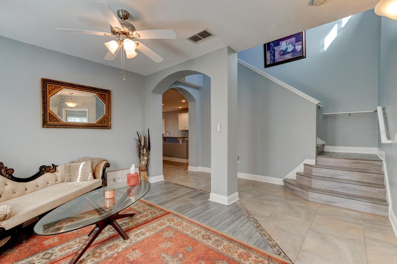 Welcome home to this spacious two-story, 6-bedroom, 4-bathroom home that offers a flexible and functional layout, perfect for modern living. The home features a formal living room and dining area, as well as a cozy family room, providing ample space for entertaining and everyday living. A den or study adds versatility, ideal for a home office or quiet retreat. The downstairs includes a room and bathroom, making it perfect for a separate suite with its own privacy, and could easily accommodate guests or extended family. The large screened-in patio, with beautiful paver flooring, extends your living space outdoors, providing a great spot for relaxation or entertaining. The kitchen includes stainless steel appliances and ample counter top space.Luxury vinyl flooring runs throughout the main areas, adding style and durability. Roof 2019 and double pane windows throughout the house. The master bedroom is a luxurious retreat, featuring double doors that lead into the spacious room. Located upstairs, it offers privacy and comfort, with ample space for a king-sized bed and additional furniture. The master suite includes a large walk-in closet and a well-appointed en-suite bathroom with dual vanities.The remaining four bedrooms and two bathrooms are also located upstairs, offering plenty of space for family members or guests. One of the bathrooms is a convenient Jack-and-Jill style, connecting two of the bedrooms, making it ideal for shared use. The other bathroom serves the remaining bedrooms, ensuring ample privacy and functionality for everyone. These upstairs rooms are well-sized and versatile, perfect for bedrooms, home offices, or hobby spaces, while the layout promotes easy access to the common areas of the home. All appliances and window treatments are included, offering a move-in ready experience. The garage has been converted into a media room but can be easily reconverted back into a garage if desired. This home is conveniently located in a sought after gated community of Sanford, Florida, with easy access to major roads like SR 417 and 17-92, making it a prime location for commuting and nearby amenities.