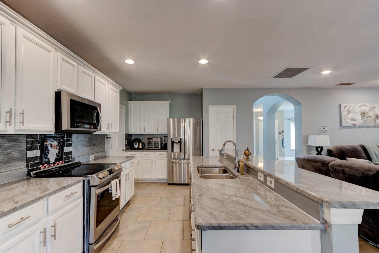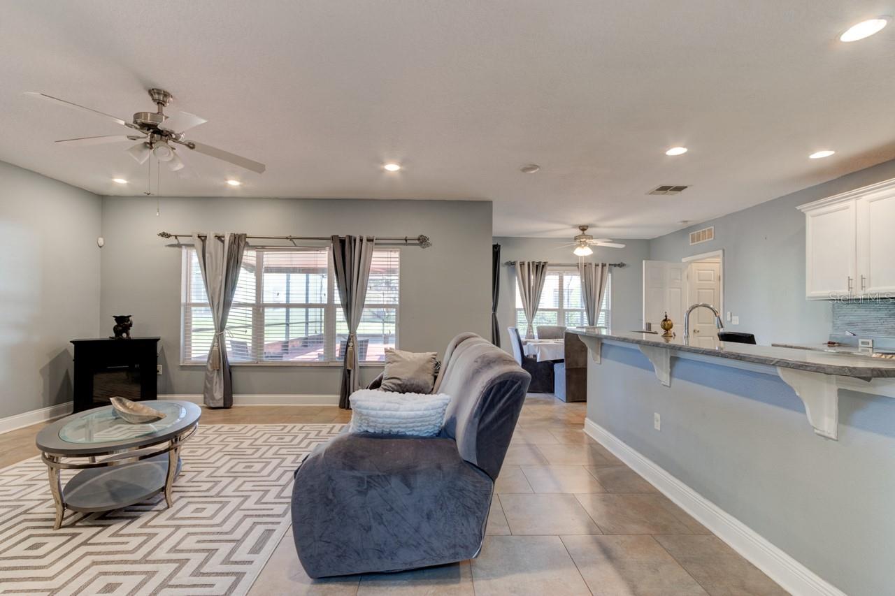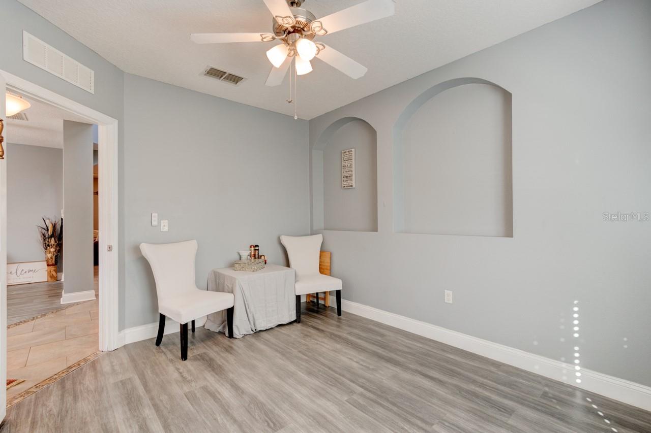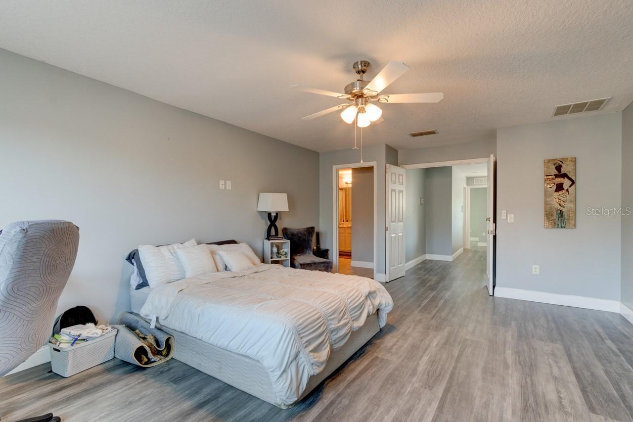Welcome home to this spacious two-story, 6-bedroom, 4-bathroom home that offers a flexible and functional layout, perfect for modern living. The home features a formal living room and dining area, as well as a cozy family room, providing ample space for entertaining and everyday living. A den or study adds versatility, ideal for a home office or quiet retreat. The downstairs includes a room and bathroom, making it perfect for a separate suite with its own privacy, and could easily accommodate guests or extended family. The large screened-in patio, with beautiful paver flooring, extends your living space outdoors, providing a great spot for relaxation or entertaining. The kitchen includes stainless steel appliances and ample counter top space.Luxury vinyl flooring runs throughout the main areas, adding style and durability. Roof 2019 and double pane windows throughout the house. The master bedroom is a luxurious retreat, featuring double doors that lead into the spacious room. Located upstairs, it offers privacy and comfort, with ample space for a king-sized bed and additional furniture. The master suite includes a large walk-in closet and a well-appointed en-suite bathroom with dual vanities.The remaining four bedrooms and two bathrooms are also located upstairs, offering plenty of space for family members or guests. One of the bathrooms is a convenient Jack-and-Jill style, connecting two of the bedrooms, making it ideal for shared use. The other bathroom serves the remaining bedrooms, ensuring ample privacy and functionality for everyone. These upstairs rooms are well-sized and versatile, perfect for bedrooms, home offices, or hobby spaces, while the layout promotes easy access to the common areas of the home. All appliances and window treatments are included, offering a move-in ready experience. The garage has been converted into a media room but can be easily reconverted back into a garage if desired. This home is conveniently located in a sought after gated community of Sanford, Florida, with easy access to major roads like SR 417 and 17-92, making it a prime location for commuting and nearby amenities.