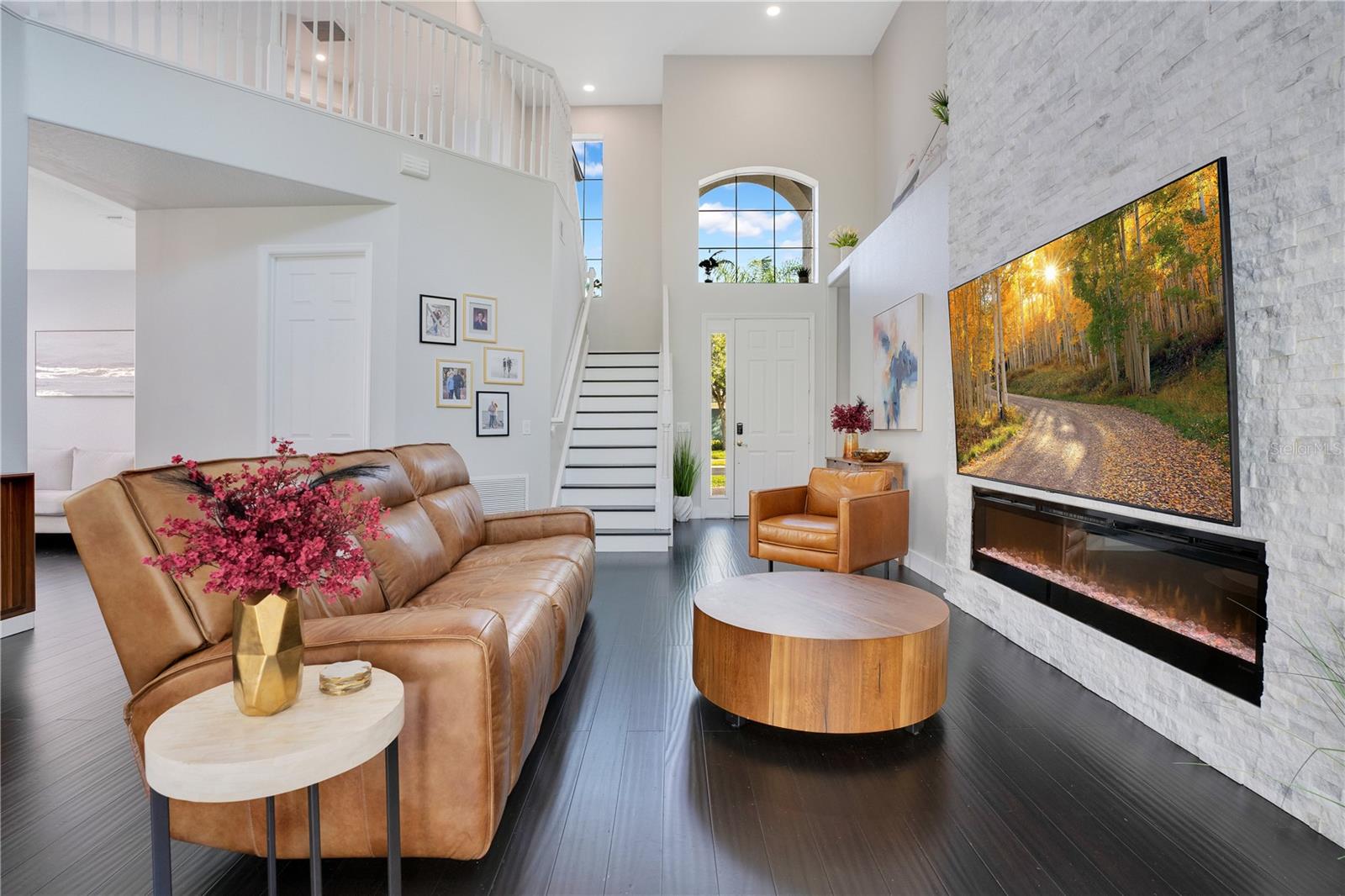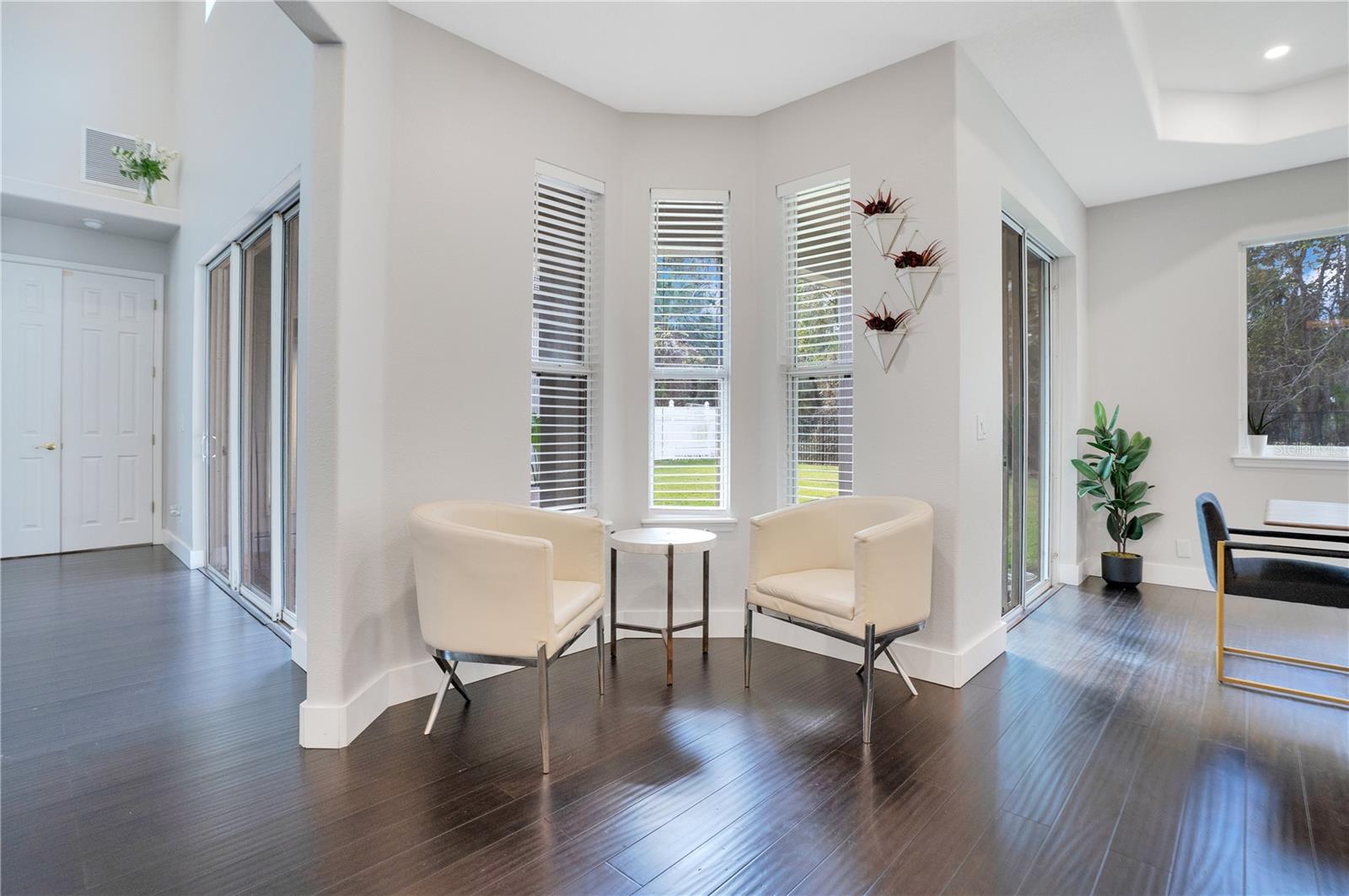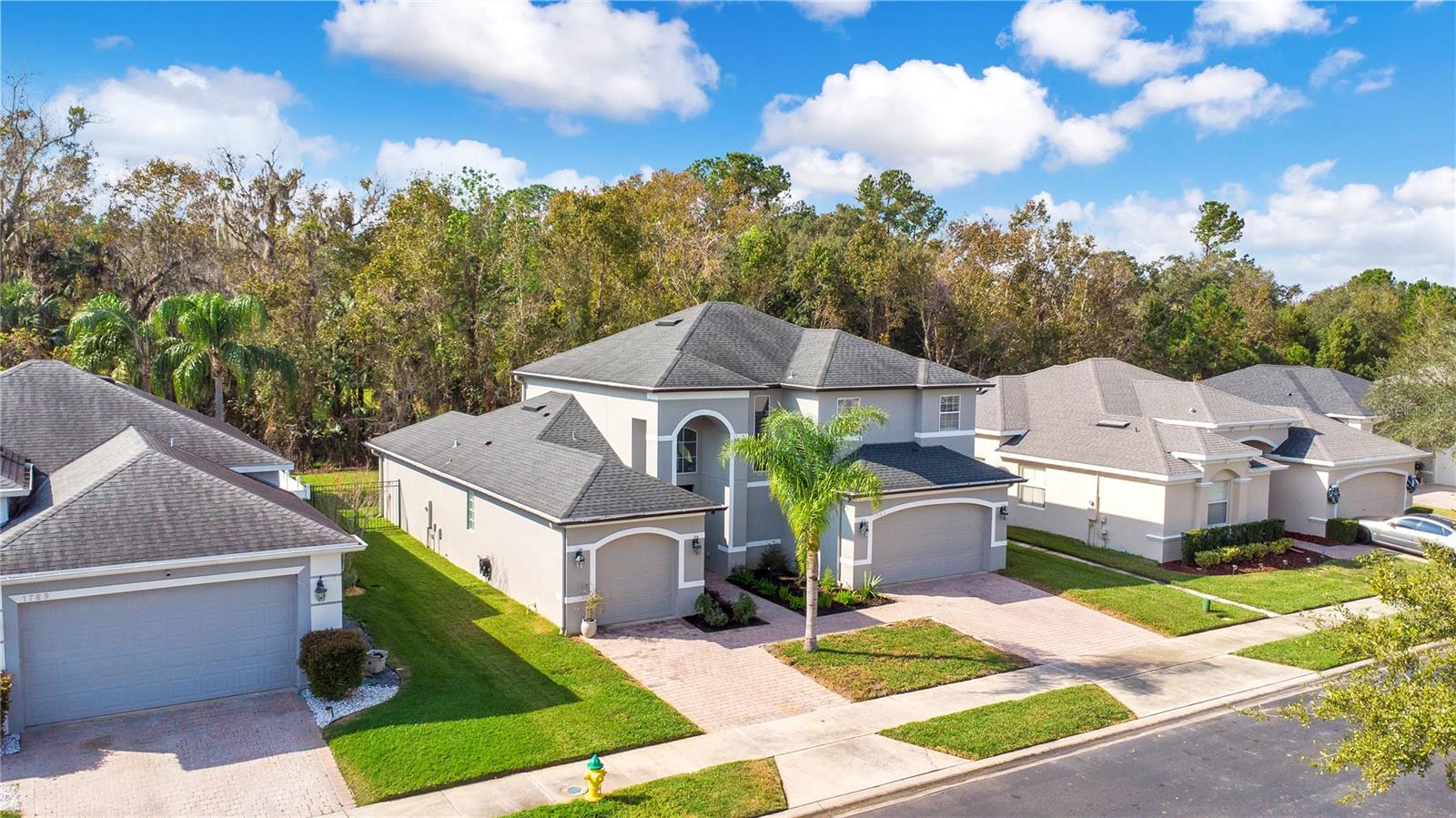 Located in the highly sought-after, gated community of The Retreat at Wekiva, this stunning 3-bedroom, 2.5-bathroom home offers a perfect blend of luxury and comfort. With a spacious loft and a dedicated office/den, this home is designed for modern living and entertaining. As you approach the home, you'll be greeted by a lushly landscaped exterior with a spacious 2-car garage and additional 1-car garage with dual paver stone driveways. Step into the backyard oasis, where you'll find a newly fenced, oversized yard with serene wooded views, offering unparalleled privacy as it backs up to a protected greenbelt and nature preserve. Inside, you'll find an open and airy layout, with soaring ceilings and elegant features throughout. The chef-inspired kitchen is a masterpiece, complete with pristine white quartz countertops, large-format porcelain tile, and a built-in wet bar with a 46-bottle wine rack and a mini beverage fridge—ideal for hosting family and friends. The Great Room showcases a striking white and grey marble granite stone fireplace that serves as a focal point, complemented by solid bamboo flooring that flows throughout the living areas, including the spacious master suite. Plush Berber carpeting is featured in the remaining bedrooms for added comfort. The luxurious master suite, located on the main floor, offers a peaceful retreat with high-end finishes and direct access to the outdoor living spaces—perfect for enjoying the tranquil surroundings. This smart home is equipped with LED recessed lighting and modern technology, ensuring ultimate convenience and ease of living. The freshly landscaped grounds enhance curb appeal, making a great first impression. Residents of The Retreat at Wekiva enjoy beautiful fountains, scenic ponds with fishing opportunities, and a welcoming, exclusive atmosphere. Don’t miss your chance to experience the lifestyle this home offers! Seller's inspection completed November 4, 2024.
