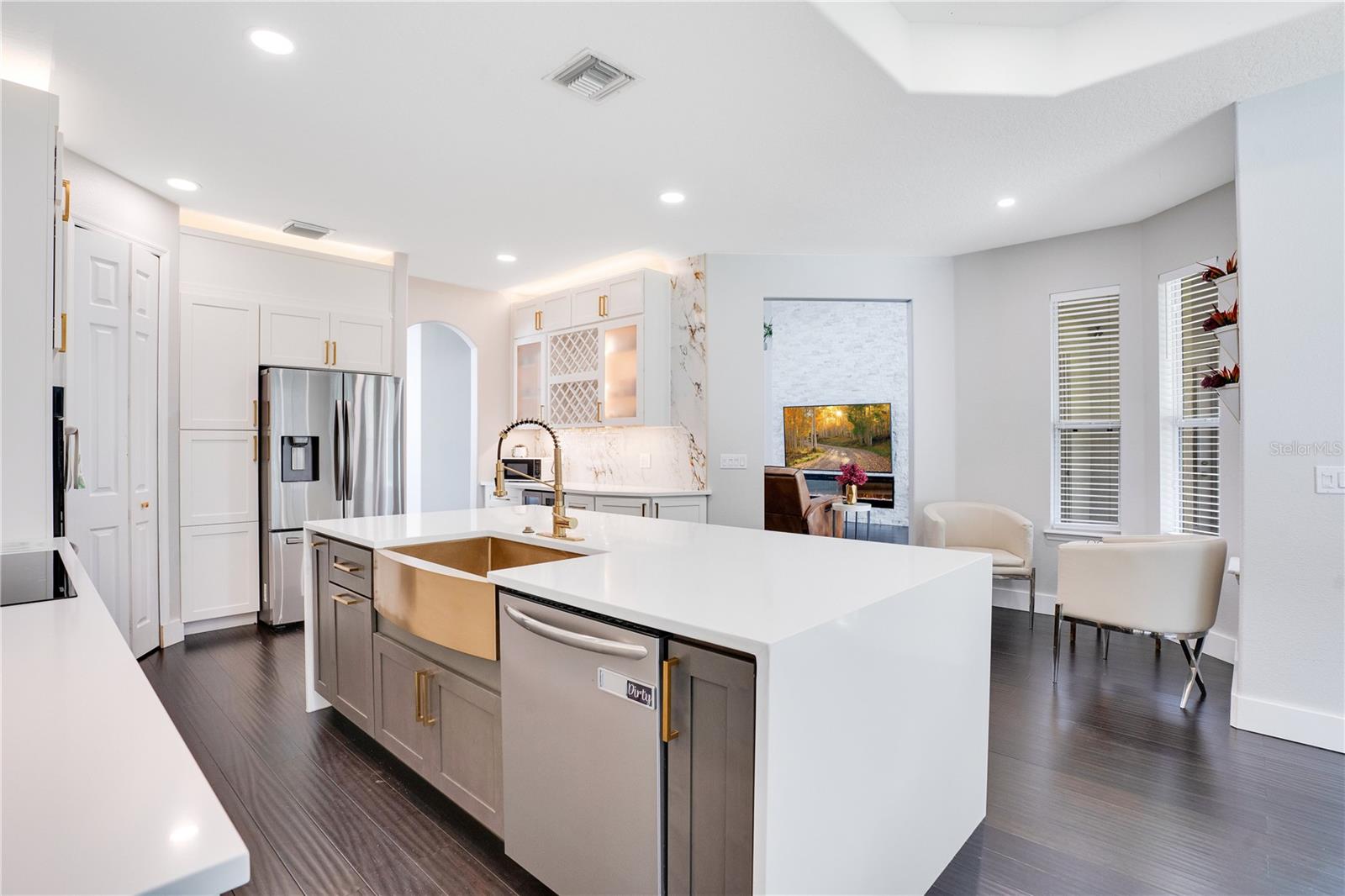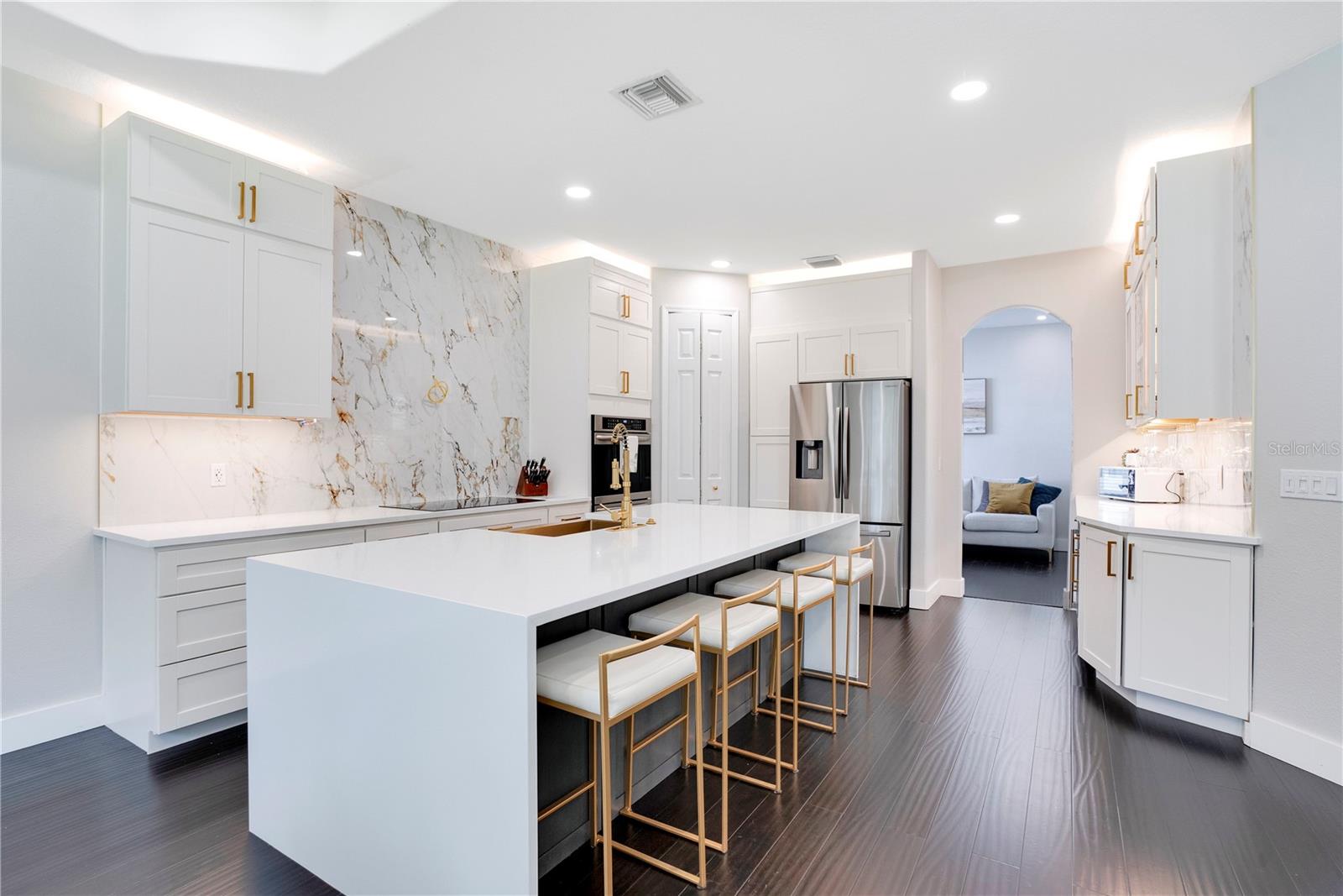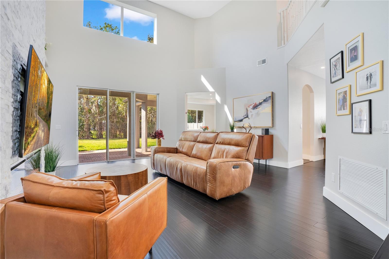 Located in the highly sought-after, gated community of The Retreat at Wekiva, this stunning 3-bedroom, 2.5-bathroom home offers a perfect blend of luxury and comfort. With a spacious loft and a dedicated office/den, this home is designed for modern living and entertaining. As you approach the home, you'll be greeted by a lushly landscaped exterior with a spacious 2-car garage and additional 1-car garage with dual paver stone driveways. Step into the backyard oasis, where you'll find a newly fenced, oversized yard with serene wooded views, offering unparalleled privacy as it backs up to a protected greenbelt and nature preserve. Inside, you'll find an open and airy layout, with soaring ceilings and elegant features throughout. The chef-inspired kitchen is a masterpiece, complete with pristine white quartz countertops, large-format porcelain tile, and a built-in wet bar with a 46-bottle wine rack and a mini beverage fridge—ideal for hosting family and friends. The Great Room showcases a striking white and grey marble granite stone fireplace that serves as a focal point, complemented by solid bamboo flooring that flows throughout the living areas, including the spacious master suite. Plush Berber carpeting is featured in the remaining bedrooms for added comfort. The luxurious master suite, located on the main floor, offers a peaceful retreat with high-end finishes and direct access to the outdoor living spaces—perfect for enjoying the tranquil surroundings. This smart home is equipped with LED recessed lighting and modern technology, ensuring ultimate convenience and ease of living. The freshly landscaped grounds enhance curb appeal, making a great first impression. Residents of The Retreat at Wekiva enjoy beautiful fountains, scenic ponds with fishing opportunities, and a welcoming, exclusive atmosphere. Don’t miss your chance to experience the lifestyle this home offers! Seller's inspection completed November 4, 2024.