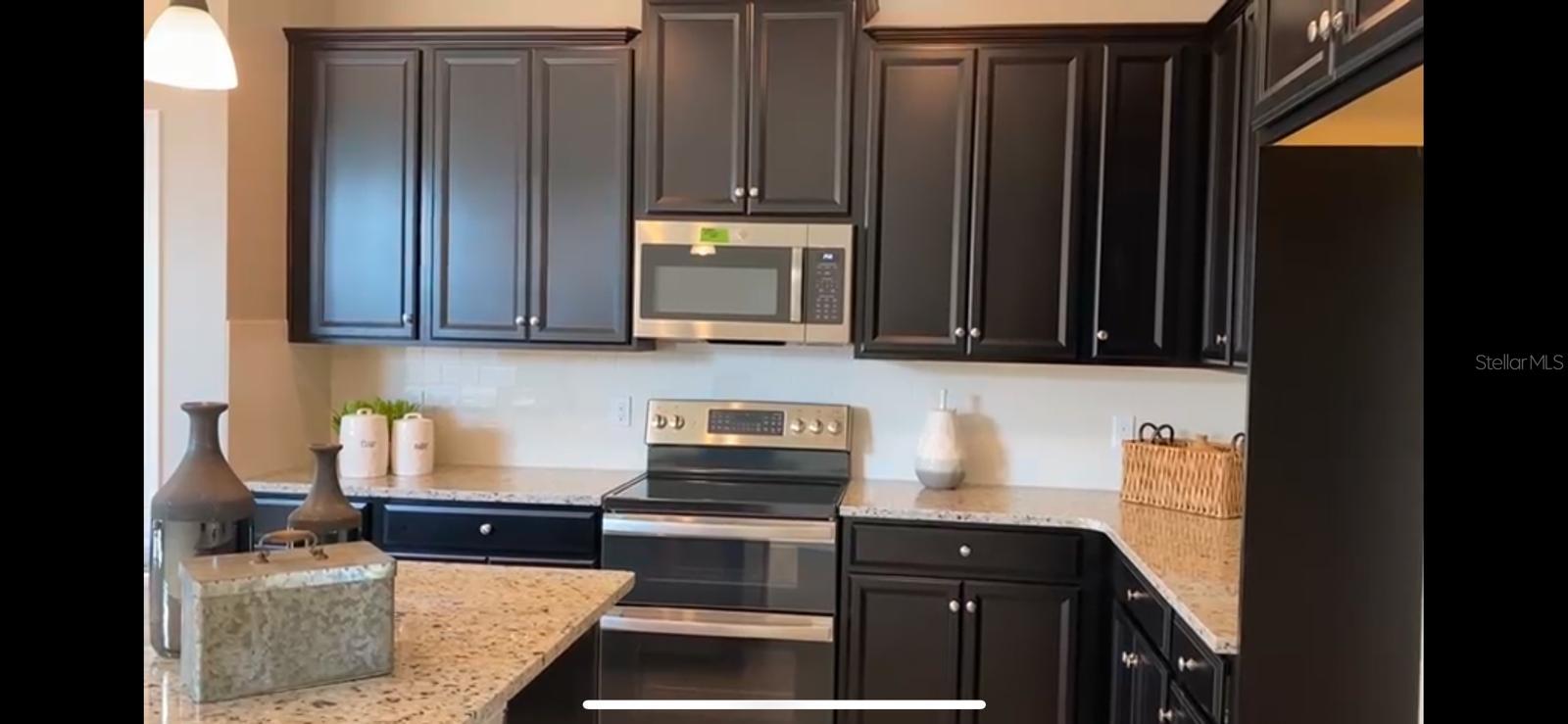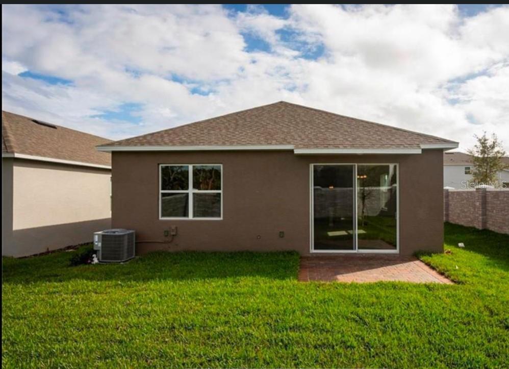 A beautiful single story home in a gated community. It is a cozy, single story home with 1,610 sqft of living space, including 3 bedrooms, 2 baths, and a 2-car garage. From the moment you drive up you will notice the attention to detail with stone accents, carriage style garage doors and pavers on the driveway. Once inside the home you have a split floor plan with 2 bedrooms, a bathroom, and the laundry area in the front of the home and the owner’s suite located in the back for maximum privacy. The owners’ suite features a tray ceiling and walk-in closet. The en-suite bath boasts a large walk-in shower with upgraded wall tile, a vanity with double sinks and a granite countertops. The great room and L- shaped kitchen combo are a welcoming spot for family gathering. The large kitchen island features a sink and eat- in area. With ample 42" cherry slate cabinets, with added crown molding, granite countertops and GE stainless steel appliances. The great room has an oversized sliding glass door that leads out unto the lanai and backyard, where the entertaining fun can continue. This home is 100% Energy Star certified and includes R-38 ceiling insulation, Radiant Roof Barrier, Low-E double pane windows and Energy Start appliances. Save money on the monthly cost of home ownership and enjoy peace of mind knowing it is backed by our industry leading 15-year Transferable Structural Warranty.