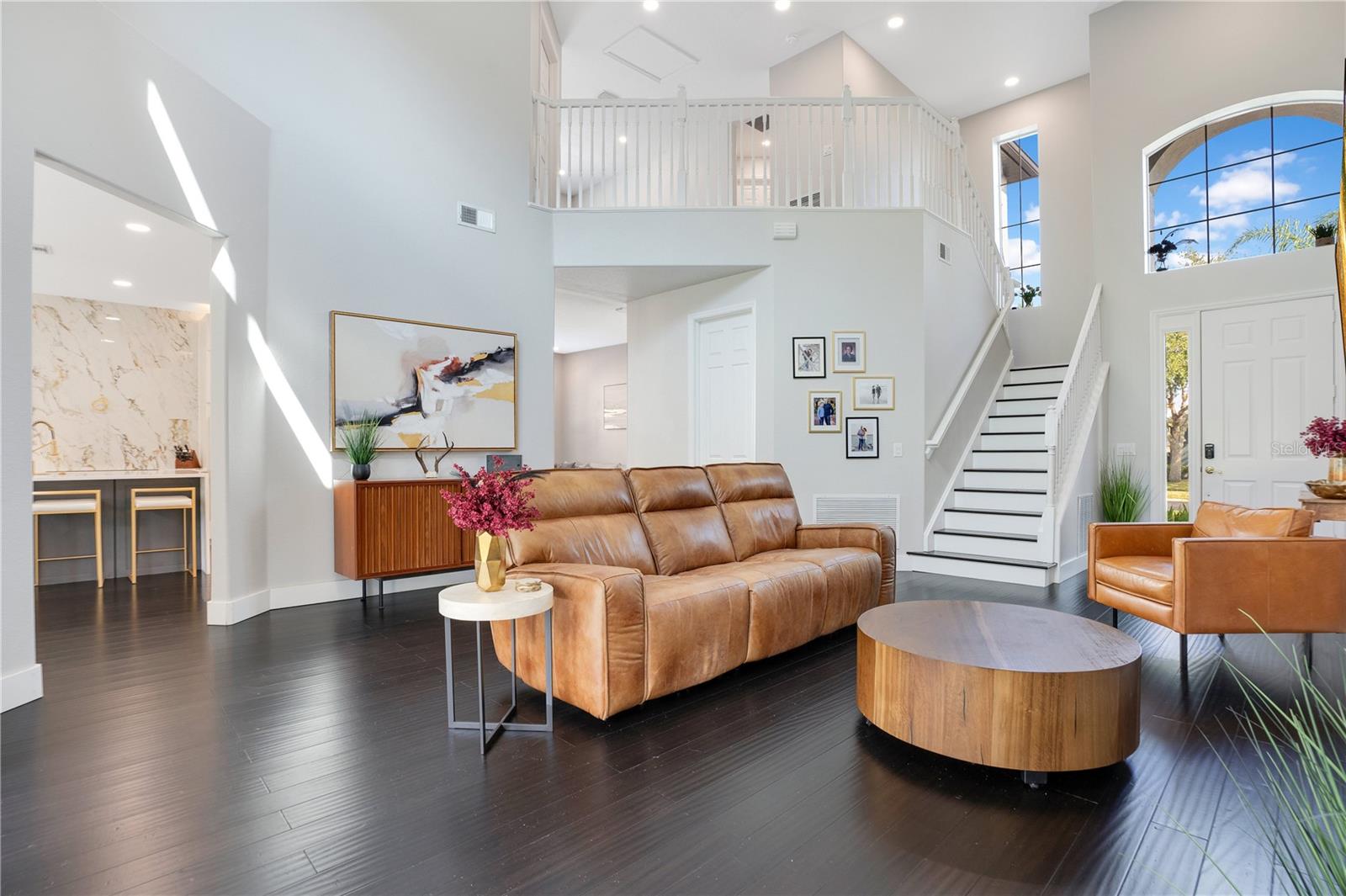 Located in the highly sought-after, gated community of The Retreat at Wekiva, this stunning 3-bedroom, 2.5-bathroom home offers a perfect blend of luxury and comfort. With a spacious loft and a dedicated office/den, this home is designed for modern living and entertaining. As you approach the home, you'll be greeted by a lushly landscaped exterior with a spacious 2-car garage and additional 1-car insulated garage space utilized as multi-purpose room with brand new portable AC/Dehumidifier unit and separate front storage area for lawn equipment. Both driveways display beautiful stone pavers. Step into the backyard oasis, where you'll find a newly fenced, oversized yard with serene wooded views, offering unparalleled privacy as it backs up to a protected greenbelt and nature preserve. Inside, you'll find an open and airy layout, with soaring ceilings and elegant features throughout. The chef-inspired kitchen is a masterpiece, complete with pristine white quartz countertops, large-format porcelain tile, and a built-in wet bar with a 46-bottle wine rack and a mini beverage fridge—ideal for hosting family and friends. The Great Room showcases a striking white and grey marble granite stone fireplace that serves as a focal point, complemented by solid bamboo flooring that flows throughout the living areas, including the spacious master suite. Plush Berber carpeting is featured in the remaining bedrooms for added comfort. The luxurious master suite, located on the main floor, offers a peaceful retreat with high-end finishes and direct access to the outdoor living spaces—perfect for enjoying the tranquil surroundings. This smart home is equipped with LED recessed lighting and modern technology, ensuring ultimate convenience and ease of living. The freshly landscaped grounds enhance curb appeal, making a great first impression. Residents of The Retreat at Wekiva enjoy beautiful fountains, scenic ponds with fishing opportunities, and a welcoming, exclusive atmosphere. Don’t miss your chance to experience the lifestyle this home offers! Seller's inspection completed November 4, 2024.