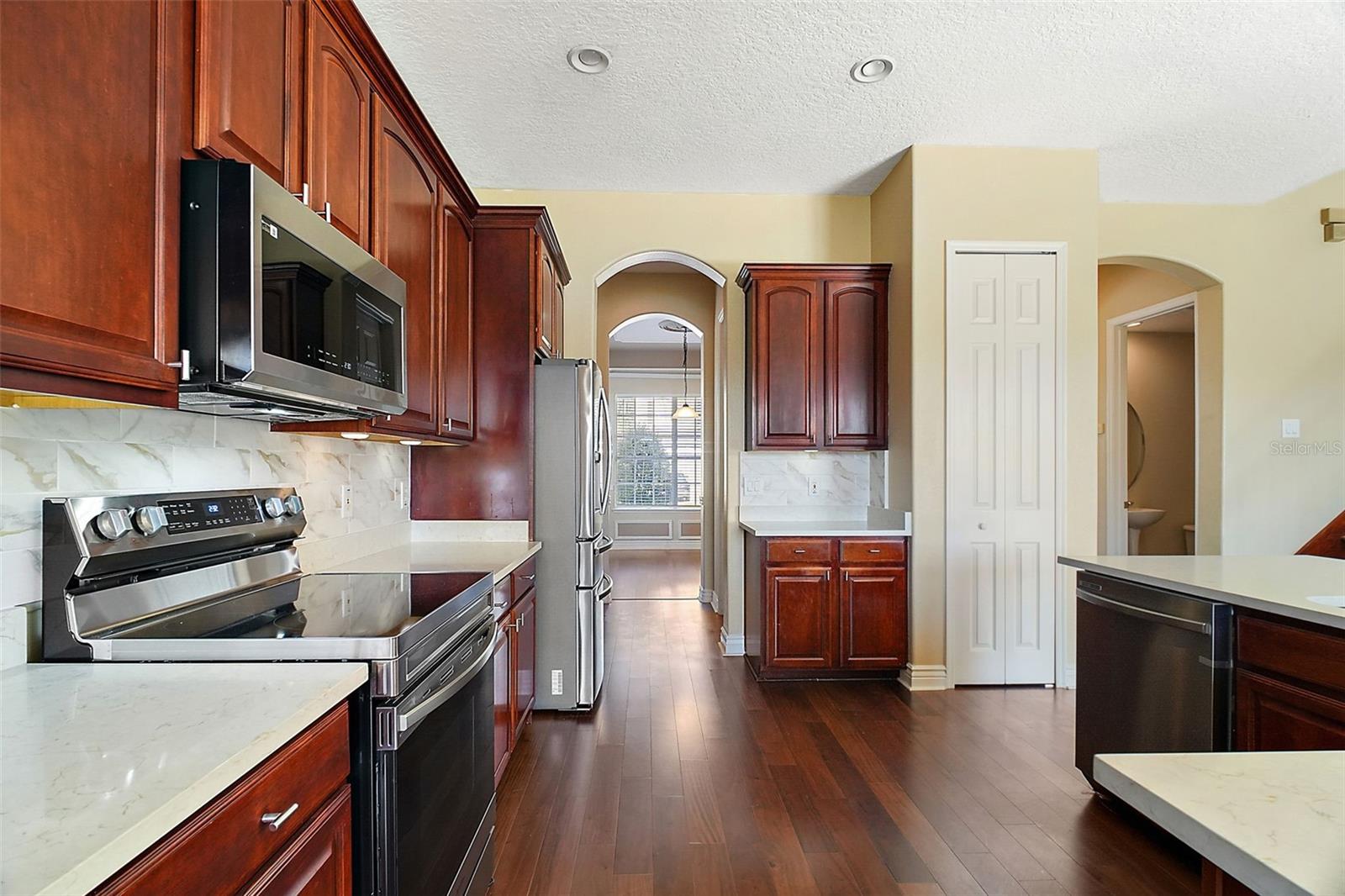 Welcome to this beautifully Renovated two story Home in The Preserve at Astor Farms – Water View & Gated Community ,offering 2,739 sq. ft. of elegant living space in the highly sought-after gated community of The Preserve at Astor Farms. With 5 bedrooms, 3 bathrooms, and a spacious office room, this home seamlessly blends modern upgrades with timeless comfort. Attractive features of the home are: High ceilings and abundant natural light throughout. No carpet throughout the home – stylish and easy to maintain. Updated kitchen with QUARTZ countertops and newer stainless steel appliances. Grand Chandelier in a foyer as you enter the home. Spacious master suite on the second floor with a breathtaking water view. Master bathroom with dual sinks, granite countertops, separate tub, and shower. Spacious Office Room with Barn door and closet can be used as another bedroom/ playroom ..you have multiple options ... Downstairs has a full bath Four additional bedrooms on the second floor, Secondary bathroom upstairs has granite countertop and tub. Ceiling Fans in All Rooms. Tranquil backyard with a serene pond view – perfect for relaxation. 2-car garage with a long brick paver driveway for additional Parking or just to Play. Nestled in a quiet, private community, this home is just minutes from top-rated schools, shopping, dining, and major highways.