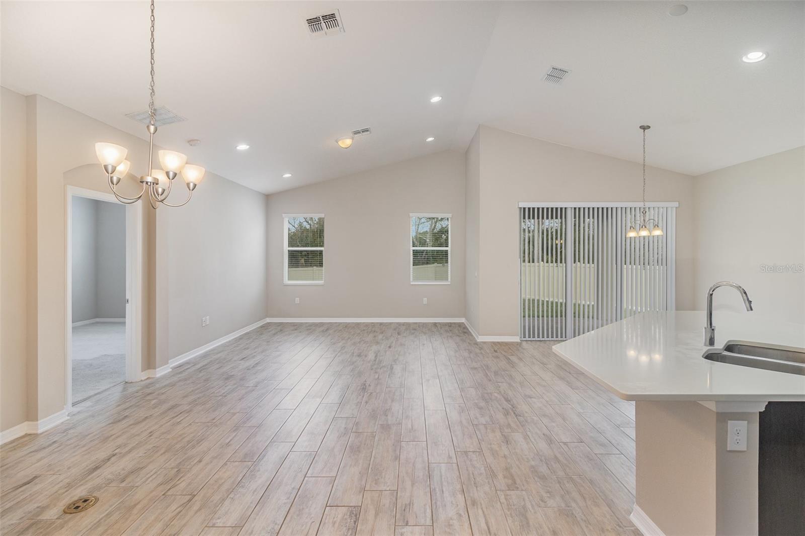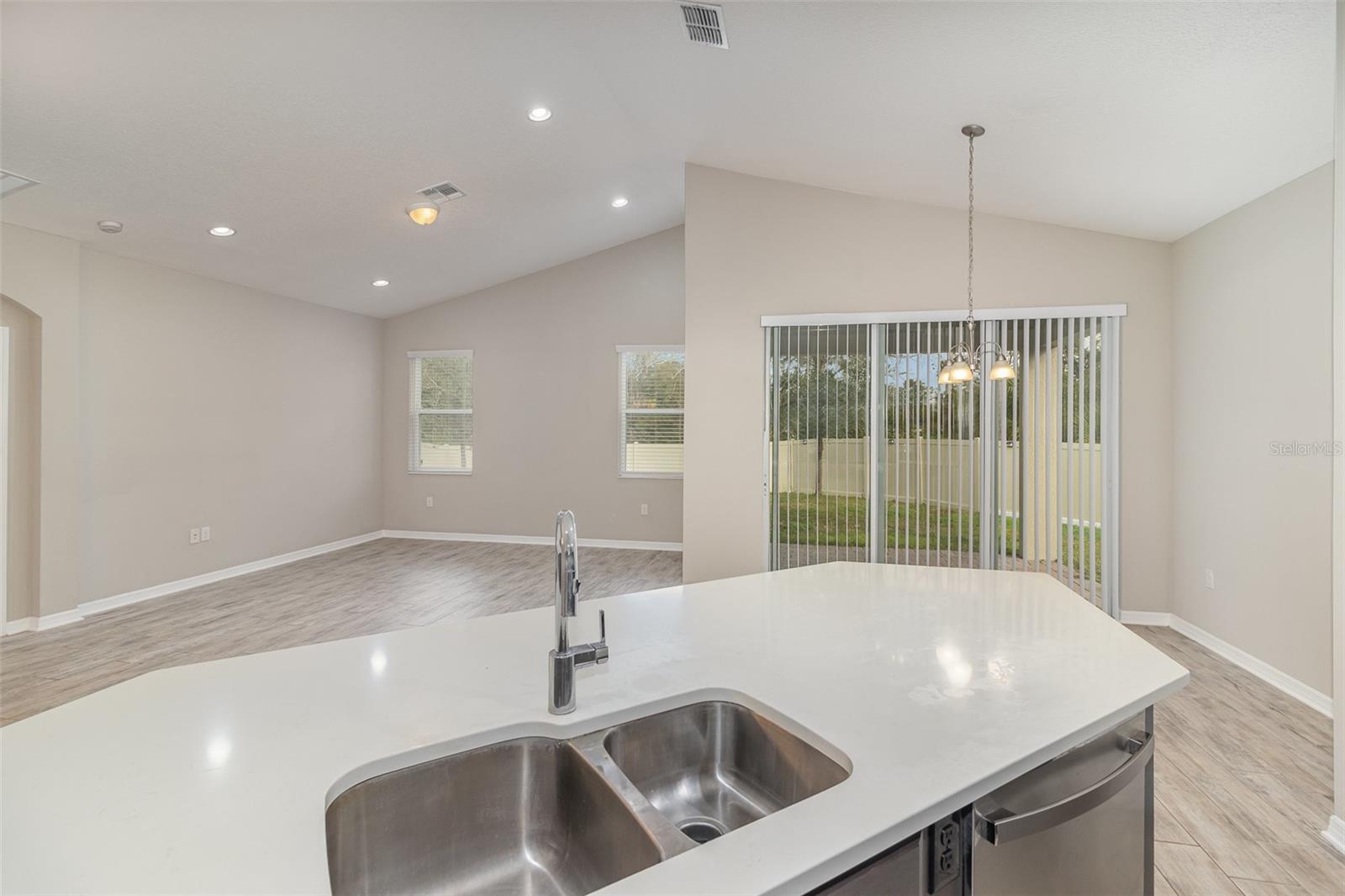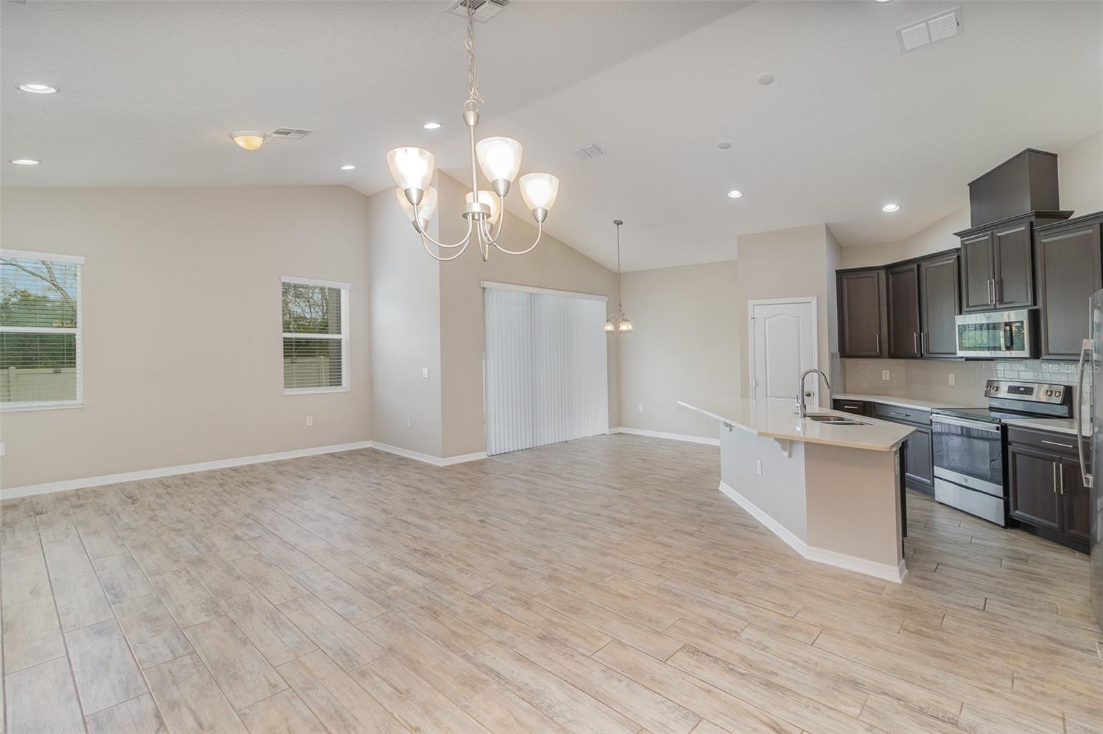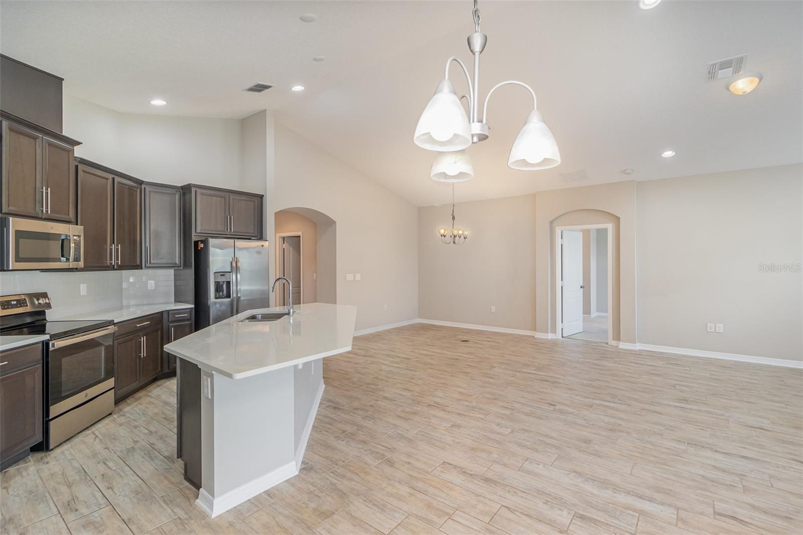 This lovely 3-bedroom, 2-bath home with a 2-car garage masterfully combines style and comfort within the serene, gated community of Cadence Park. Guests and family will revel in the privacy of the thoughtfully designed floor plan, featuring two welcoming bedrooms and a full bath at the front, while the master suite offers a tranquil retreat at the back. The elegant high ceilings in the main living areas creating a sense of openness, The open concept kitchen is the true centerpiece, 42 inch slate cherry wood cabinets, crown molding, modern hardware, quartz counter tops, beautiful backsplash, and the kitchen island with an under-mount sink. Complete with stainless steel appliances and a spacious pantry.