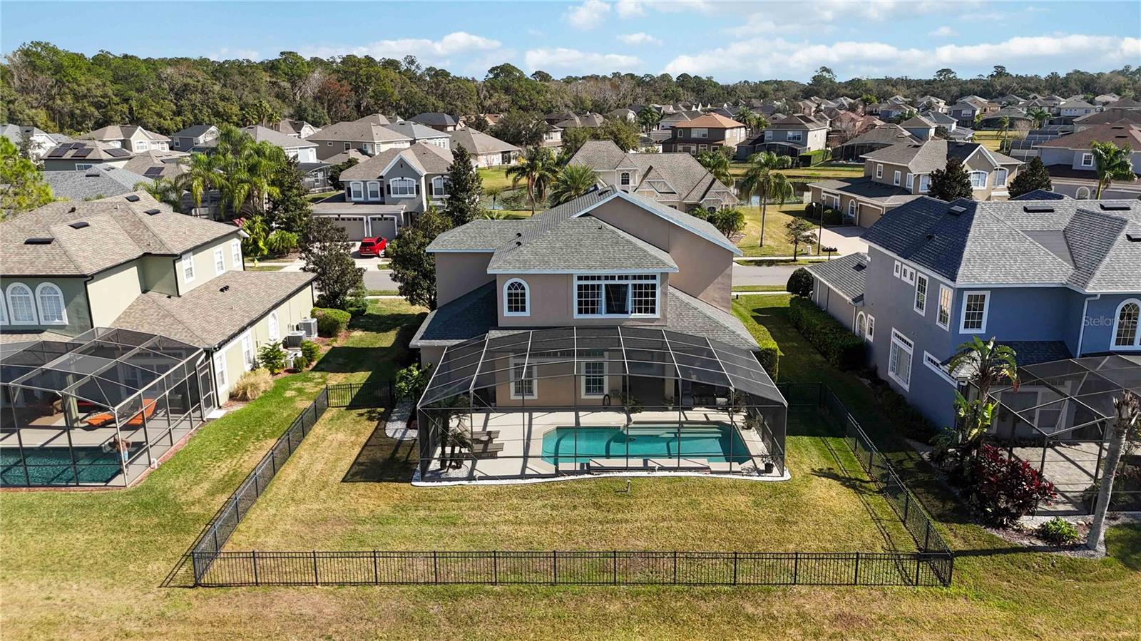 WELCOME HOME to this exquisite WATERVIEW POOL estate in the desirable GATED community of The Preserve at Astor Farms! From the moment you arrive, the impeccable curb appeal and spacious THREE CAR garage set the tone for the luxury that awaits inside. With a NEW ROOF (2022), this move-in-ready masterpiece offers both elegance and peace of mind. Step through the doors into a bright and airy sanctuary, where soaring ceilings and expansive windows bathe the home in natural light, perfectly complementing the open-concept design. The gourmet kitchen flows seamlessly into the living and dining areas, making it an entertainer’s dream. Outside, your private backyard OASIS awaits—a screened-in retreat with lush landscaping, a FENCED yard, and breathtaking waterfront views. As the sun begins to set, experience the magic of vibrant hues painting the sky, reflecting off the water while you unwind by your sparkling pool. This is Florida living at its finest. Follow the gorgeous upscale laminate flooring to the elegant wrought iron spindle staircase, leading to a versatile loft space—perfect for a home office, playroom, or media lounge. The lavish upstairs primary suite is a true sanctuary, where you can wake up to awe-inspiring sunrises and end your day with stunning sunset views over the water. The suite also features a huge walk-in closet and a spa-inspired bath with dual vanities, a luxurious soaking tub, and a walk-in shower. Two additional bedrooms and a Jack and Jill style full bath complete the second floor. Additional upgrades include a NEWER HVAC system and POOL PUMP (2021). Nestled within a peaceful nature preserve, this home offers the perfect balance of seclusion and convenience. You’ll feel worlds away from the city, yet you’re just minutes from I-4, 417, and the expanding 429, as well as the Lake Mary business district, top-rated schools, premier shopping, dining, entertainment, and Historic Downtown Sanford. Don’t miss the opportunity to own this extraordinary retreat—schedule your private tour today!