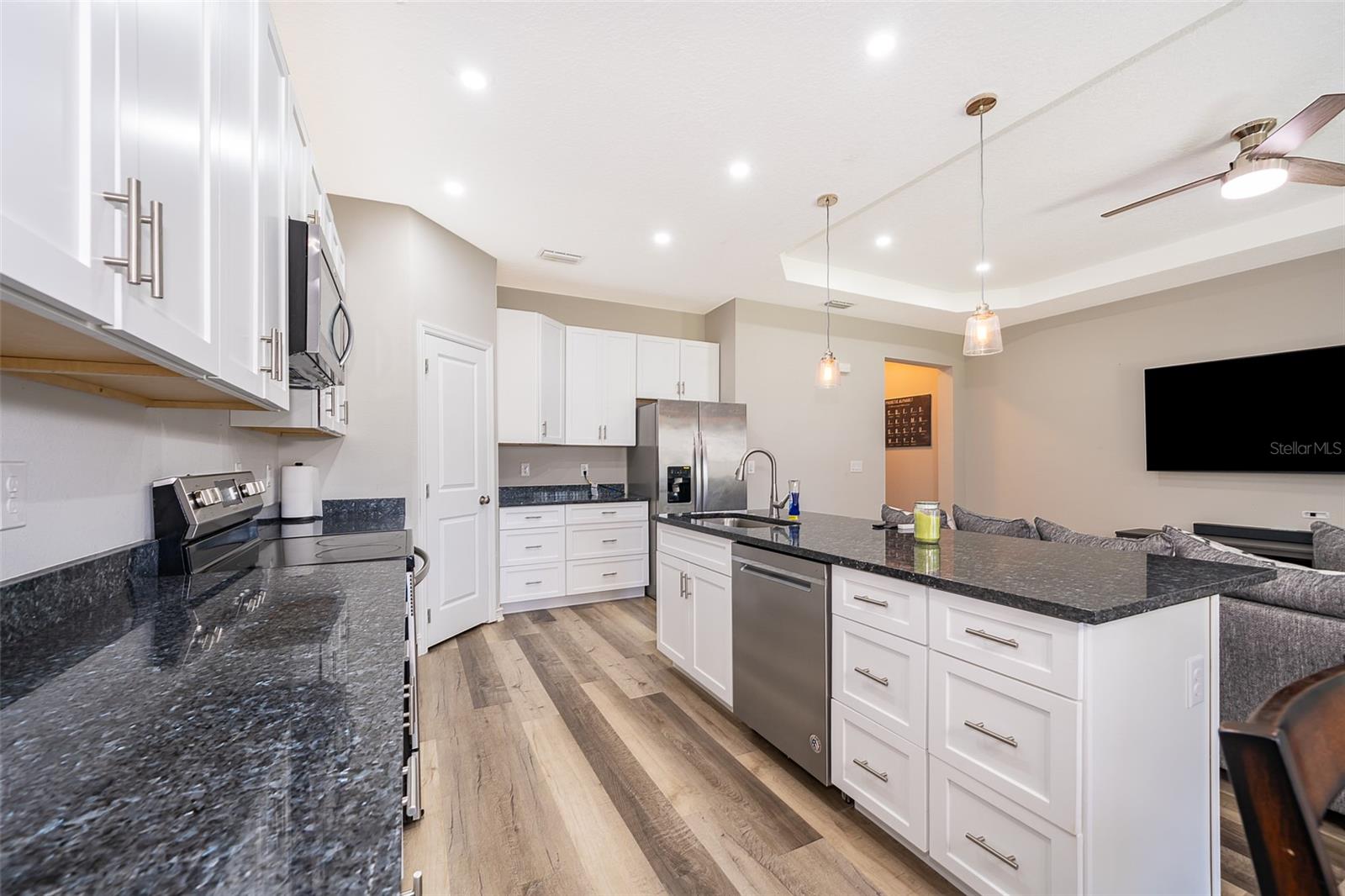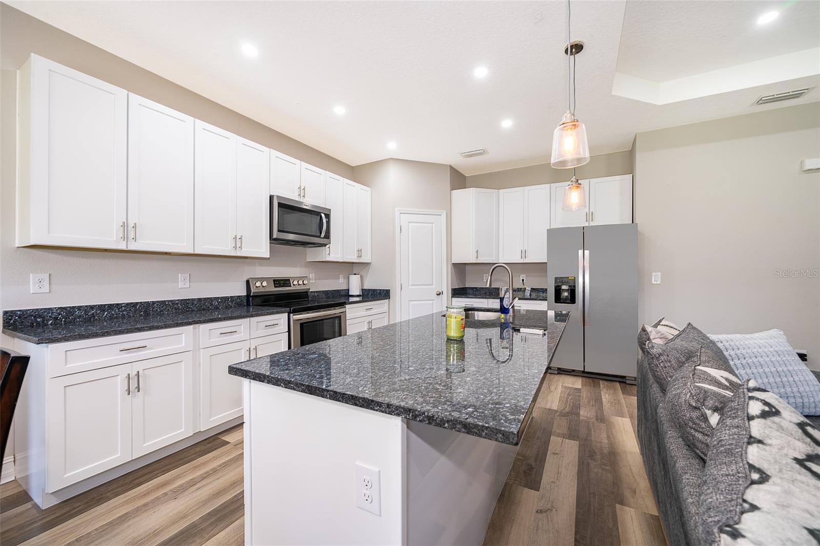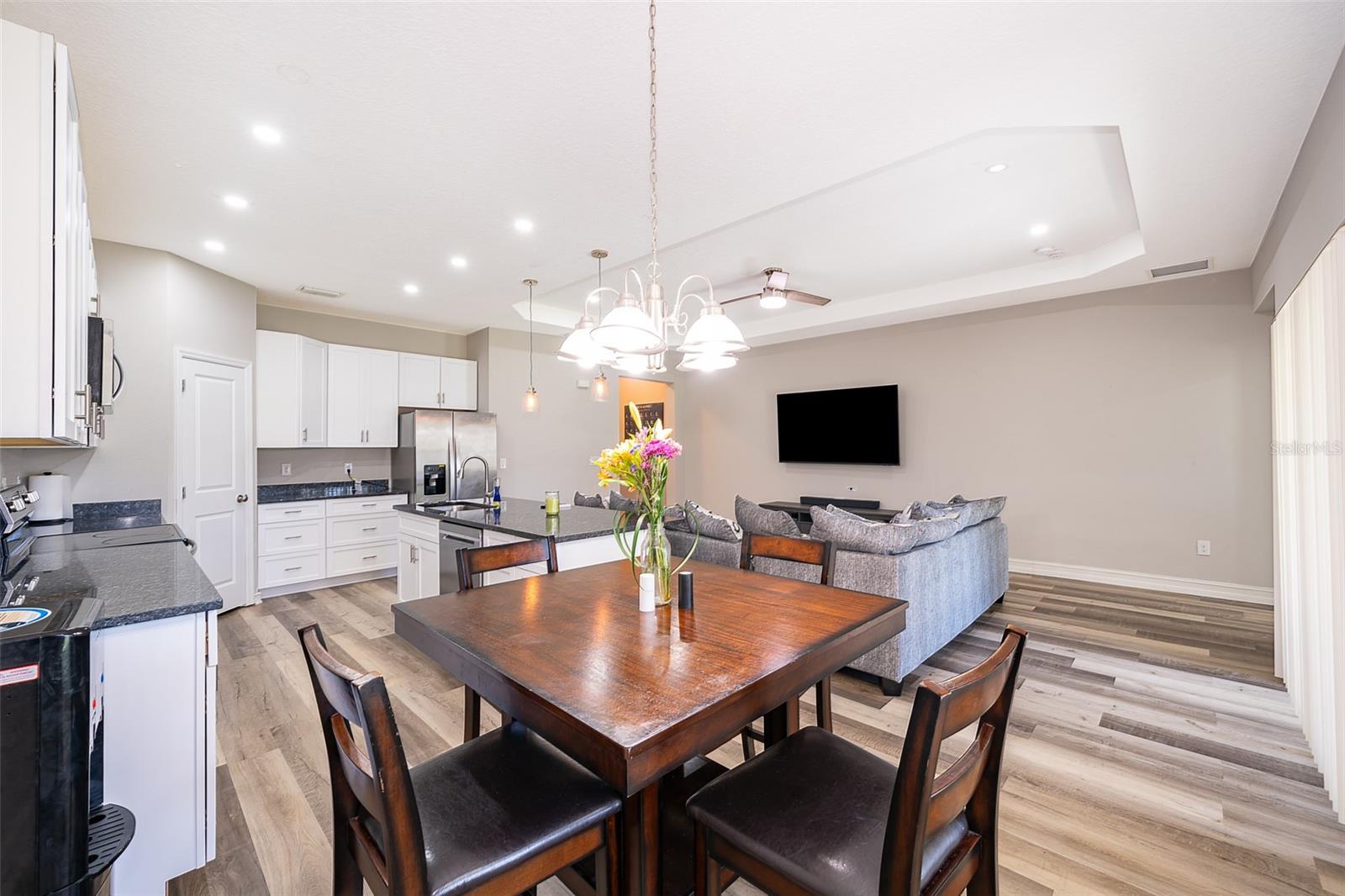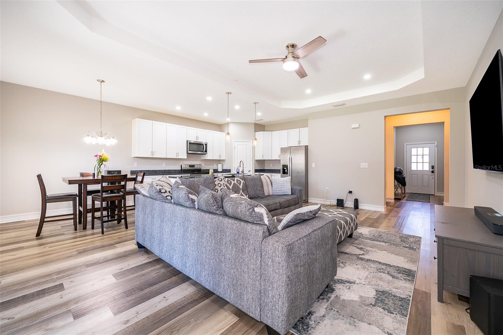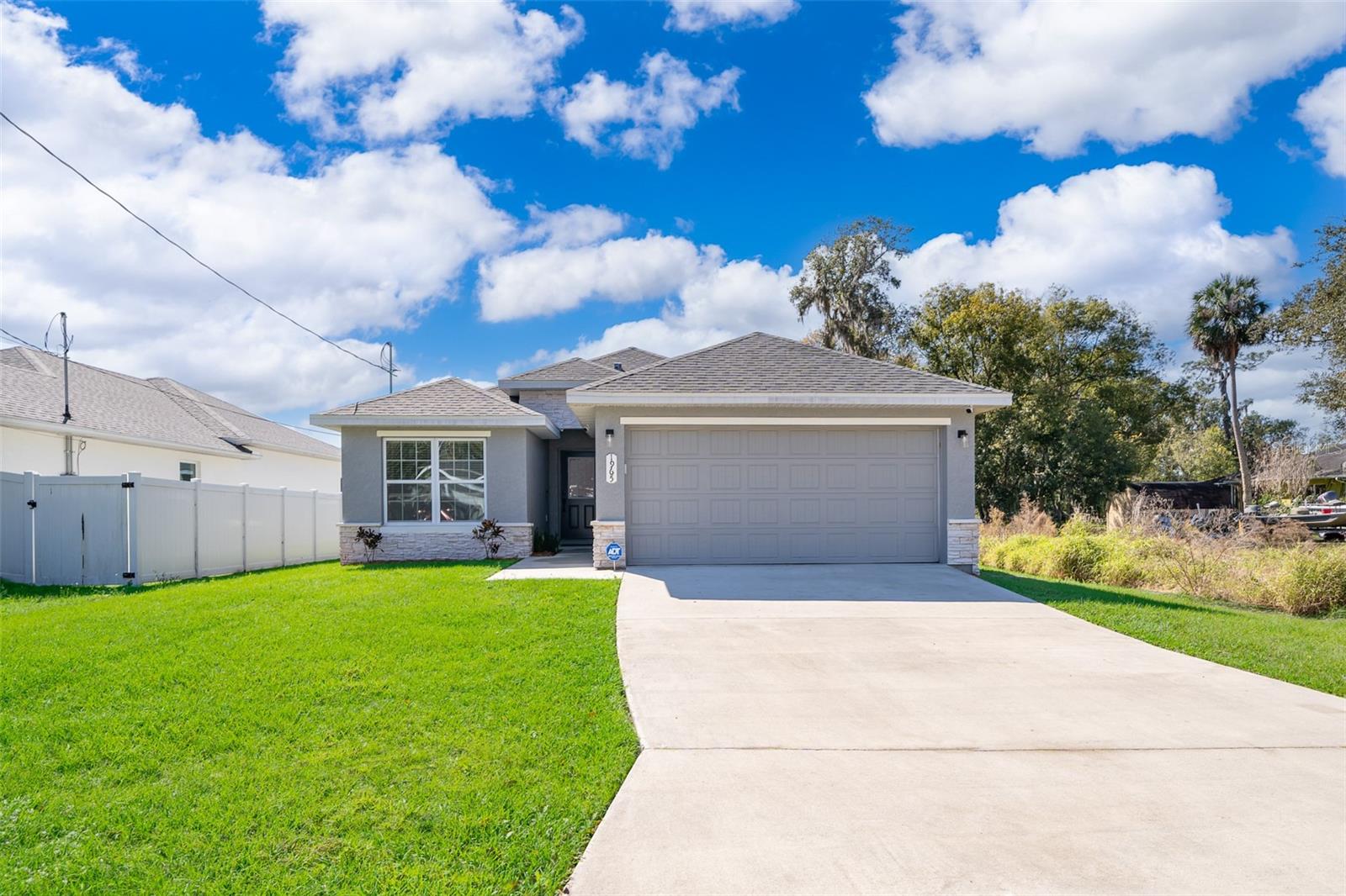 Why wait to build? This beautiful 3-year-old home, in a growing community, is move-in ready and perfect for first-time buyers or those looking for a great starter home. This home features 4 bedrooms, 2 bathrooms, and a split floor plan. The layout offers privacy and comfort for all. With no carpet and a sleek wood-look flooring throughout, it’s low-maintenance and stylish. The bright kitchen boasts light cabinetry, granite countertops, and stainless steel appliances, opening to a cozy living space with tray ceilings. The primary suite includes a luxurious walk-in shower. There’s also a dedicated laundry room for added convenience. With ample space for a home office or remote work setup, this home is ideal for today’s lifestyle. Relax on the covered back porch or enjoy the nearby park, basketball court, and pavilion. Complete with a 2-car garage, this home is ready for its next owners! The location is close to historic Sanford, Lake Monroe, I-4, SR46, restaurants, coffee shops, retail stores and much more.