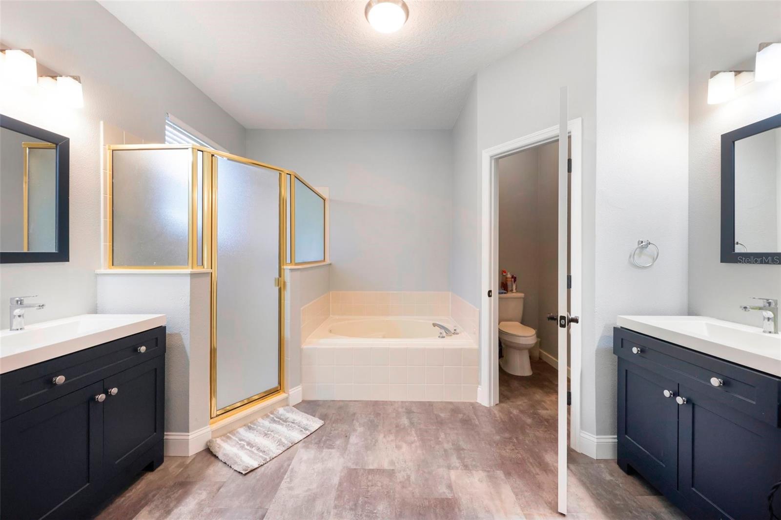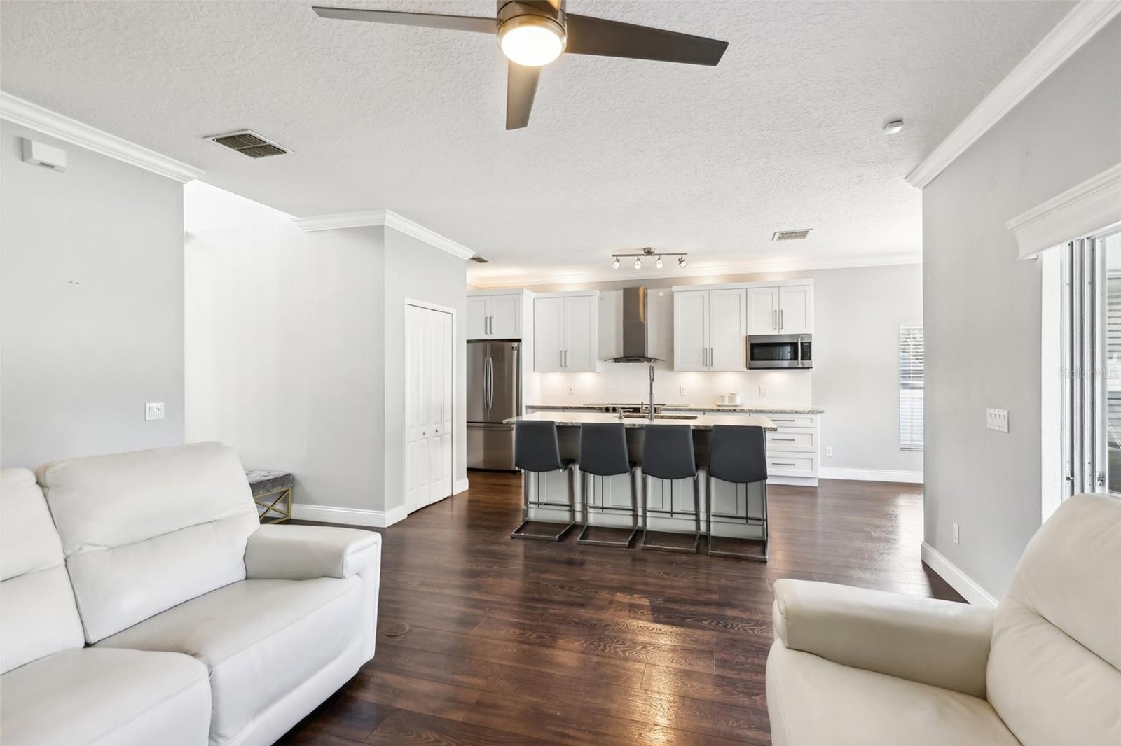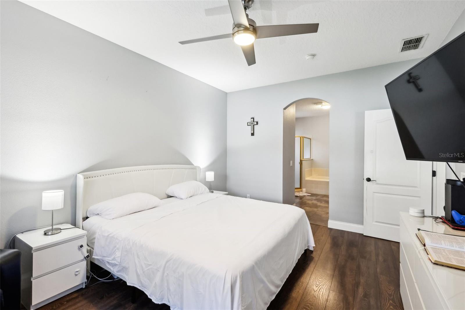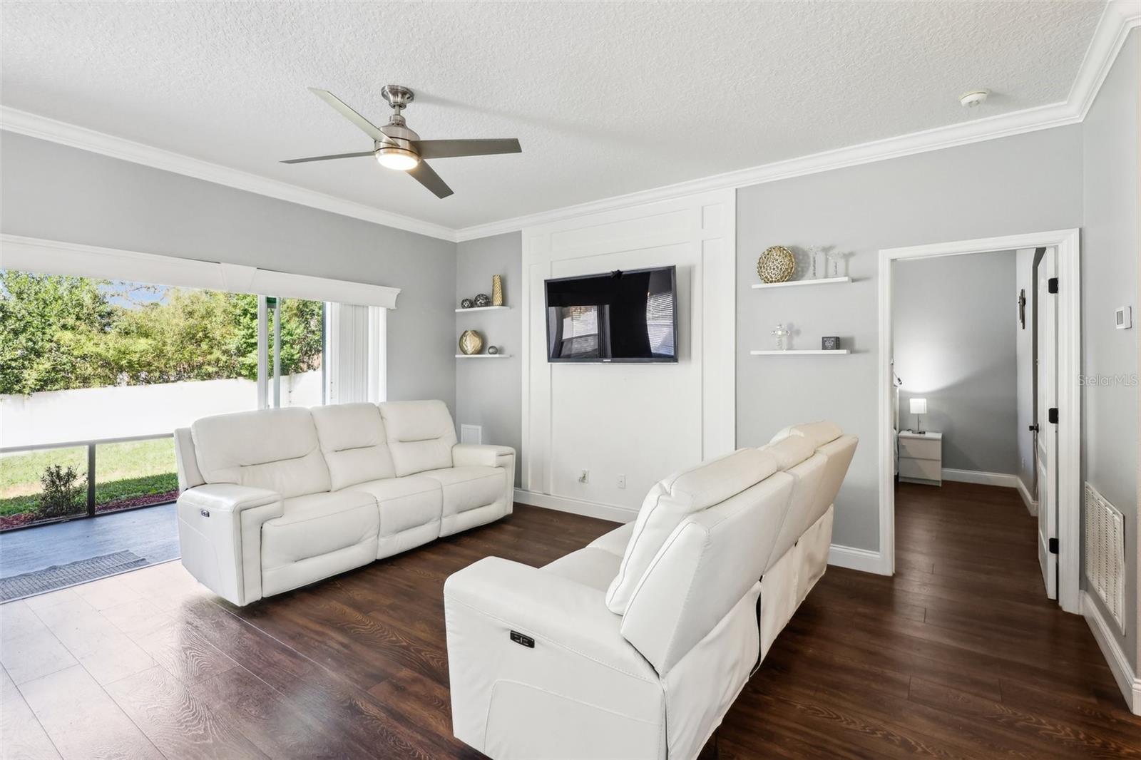Walking distance from Bentley Elementary and Mike Kirby park as well as close proximity to SR 417 and 1-4 make this house in a gated community a great place to call home. Calabria Cove, is a. beautifully updated 5 BEDROOM 3.5 BATHROOM home offers the perfect blend of style, warmth, and modern living. Step through the grand double doors and into a space where soaring ceilings, crown molding, and an abundance of natural light create an inviting atmosphere that feels like home from the moment you arrive. The thoughtfully designed layout offers flexibility to suit your lifestyle. The formal dining room is a versatile space—whether you envision it as a home office, a second downstairs bedroom, or a cozy flex area, the choice is yours. Just down the hall, an additional large bedroom with a chic barn door provides even more options for a guest suite, creative studio, or media room. At the heart of the home, renovated chef’s kitchen is a true showstopper—boasting brand-new cabinets, sleek countertops, a spacious island, stainless steel appliances, and a charming breakfast nook that’s perfect for casual dining or morning coffee. The main-level primary suite is a private retreat, featuring a spa-like ensuite with dual vanities, a soaking tub, and a separate shower for the ultimate in comfort. Upstairs, a spacious second family room offers a perfect hangout or study space, complete with a built-in niche ideal for a home office or homework station. Three additional generously sized bedrooms and a full bath complete the upper level, making it easy to accommodate family and guests alike. This home has been thoughtfully refreshed throughout—new light fixtures, fans, and bathroom vanities (all replaced within the last two years), updated laminate flooring, custom wood steps on the staircase, and fresh exterior paint that gives the home a crisp, modern look. The roof is only three years old, and all toilets have been updated, ensuring peace of mind for years to come. Outside, enjoy the screened lanai and fully fenced backyard—your own private retreat with no rear neighbors. Whether it’s quiet mornings, afternoon gatherings, or laid-back weekends, this outdoor space was designed for relaxation. With only 37 homes, Calabria Cove offers a rare boutique community vibe, all while keeping you close to top-rated schools, shopping, dining, and major highways for an easy commute. Don’t miss your chance to experience the lifestyle this home offers—schedule your private tour